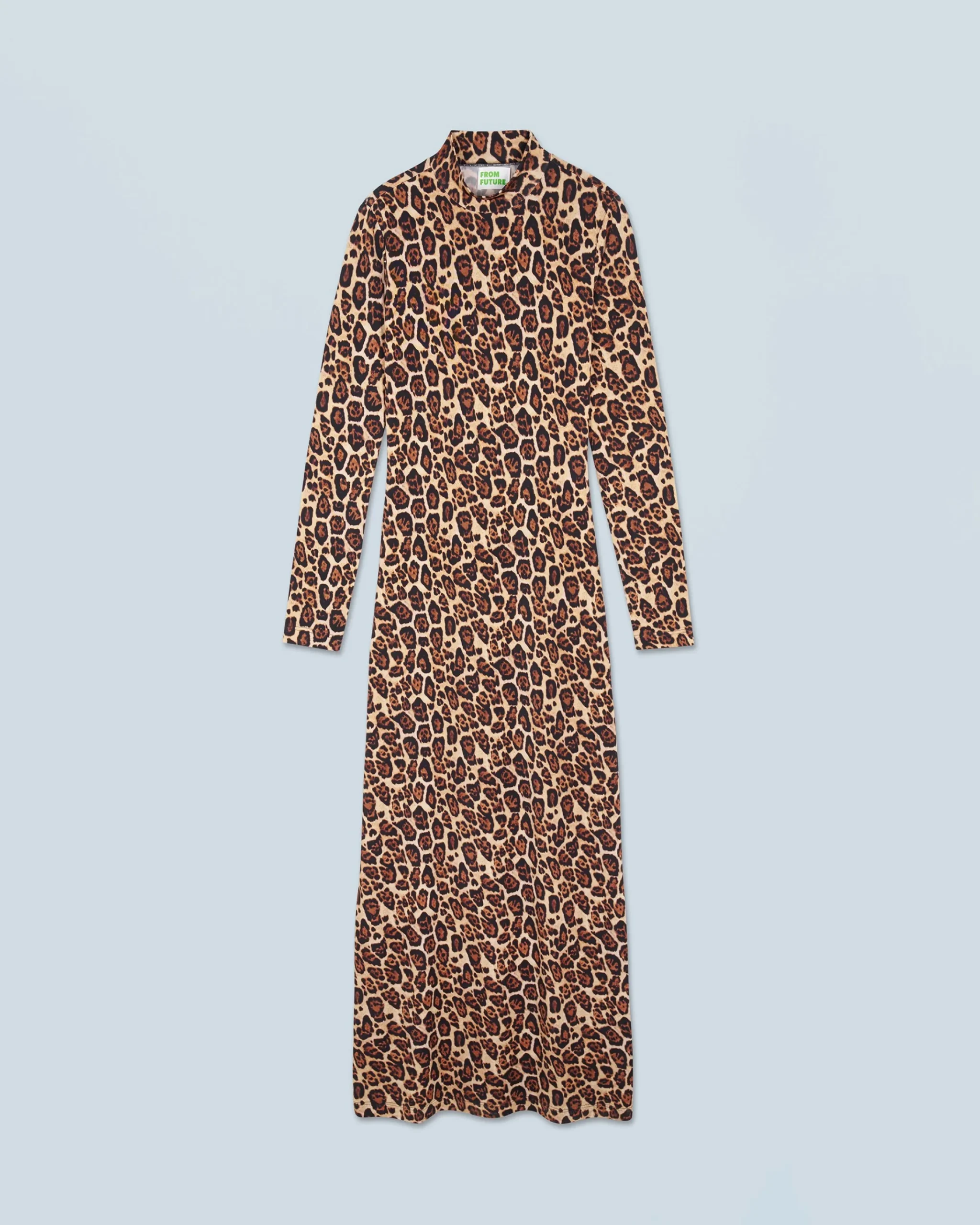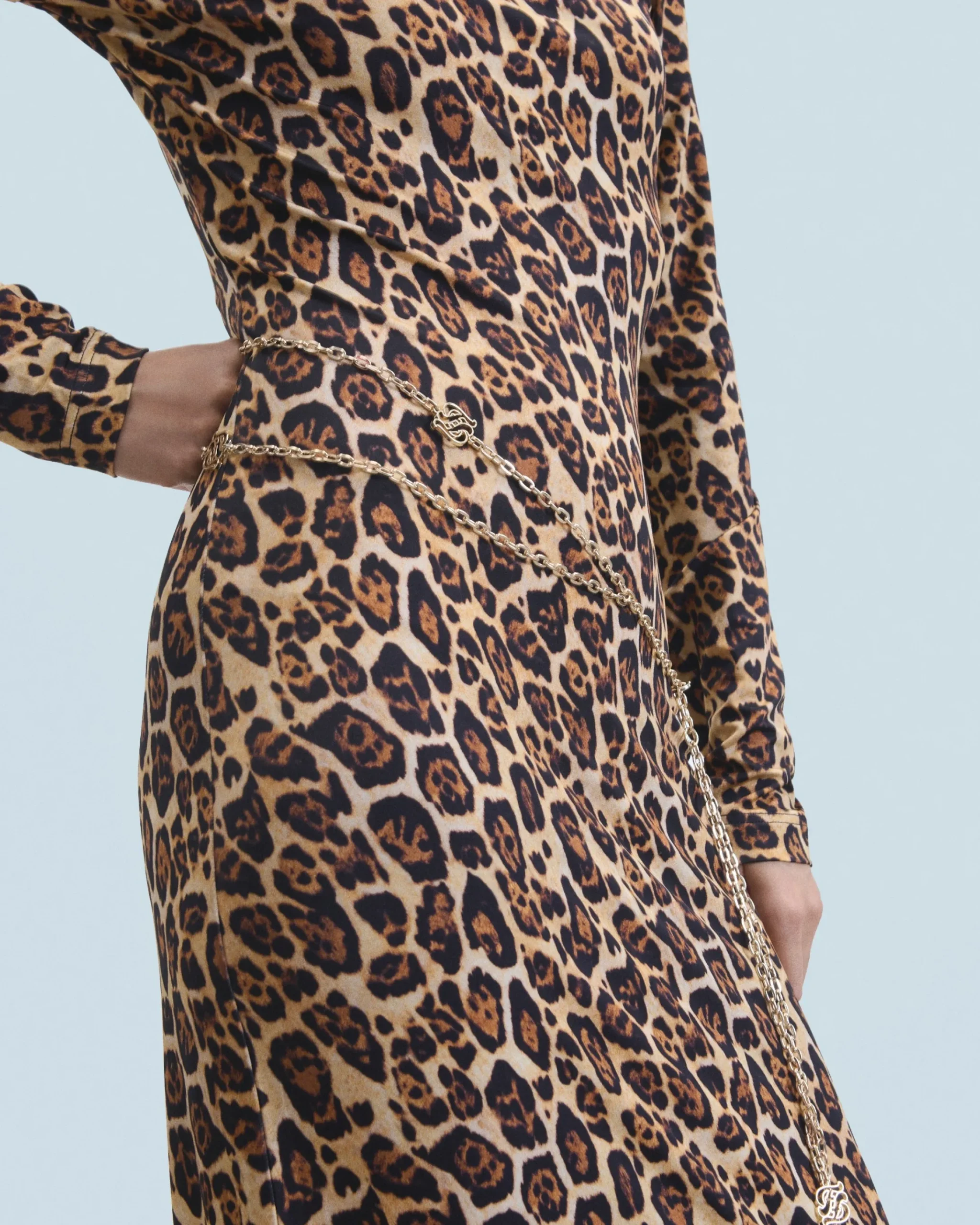 La silhouette è slanciata e i volumi sono rivisitati con questo abito impreziosito da una stampa leopardata. Caratterizzato da scollo tondo e maniche lunghe, seduce con una gonna svasata con delicato spacco. Da indossare come una seconda pelle, adornala con un paio di décolleté per un outfit sofisticato o sneakers per un look casual.