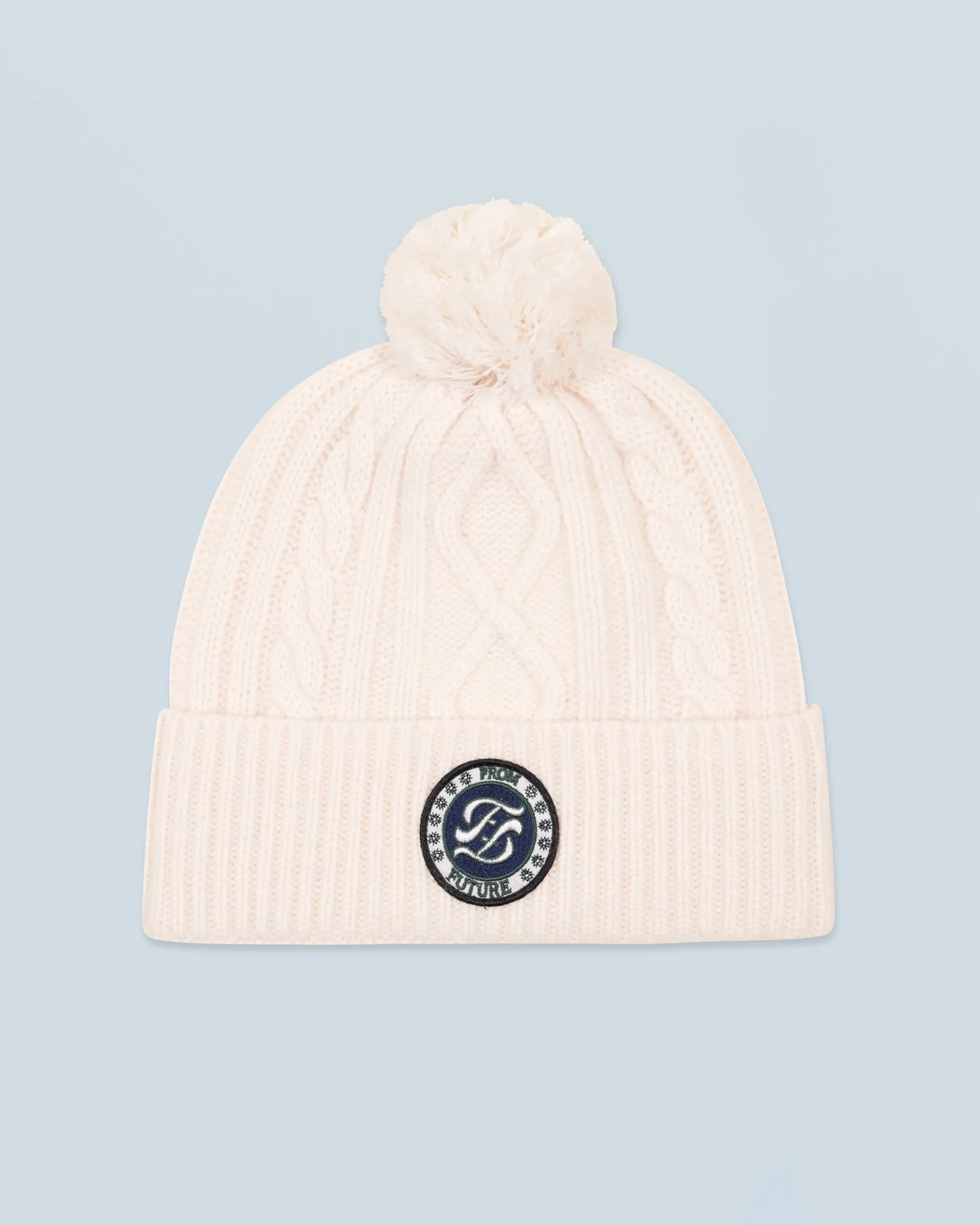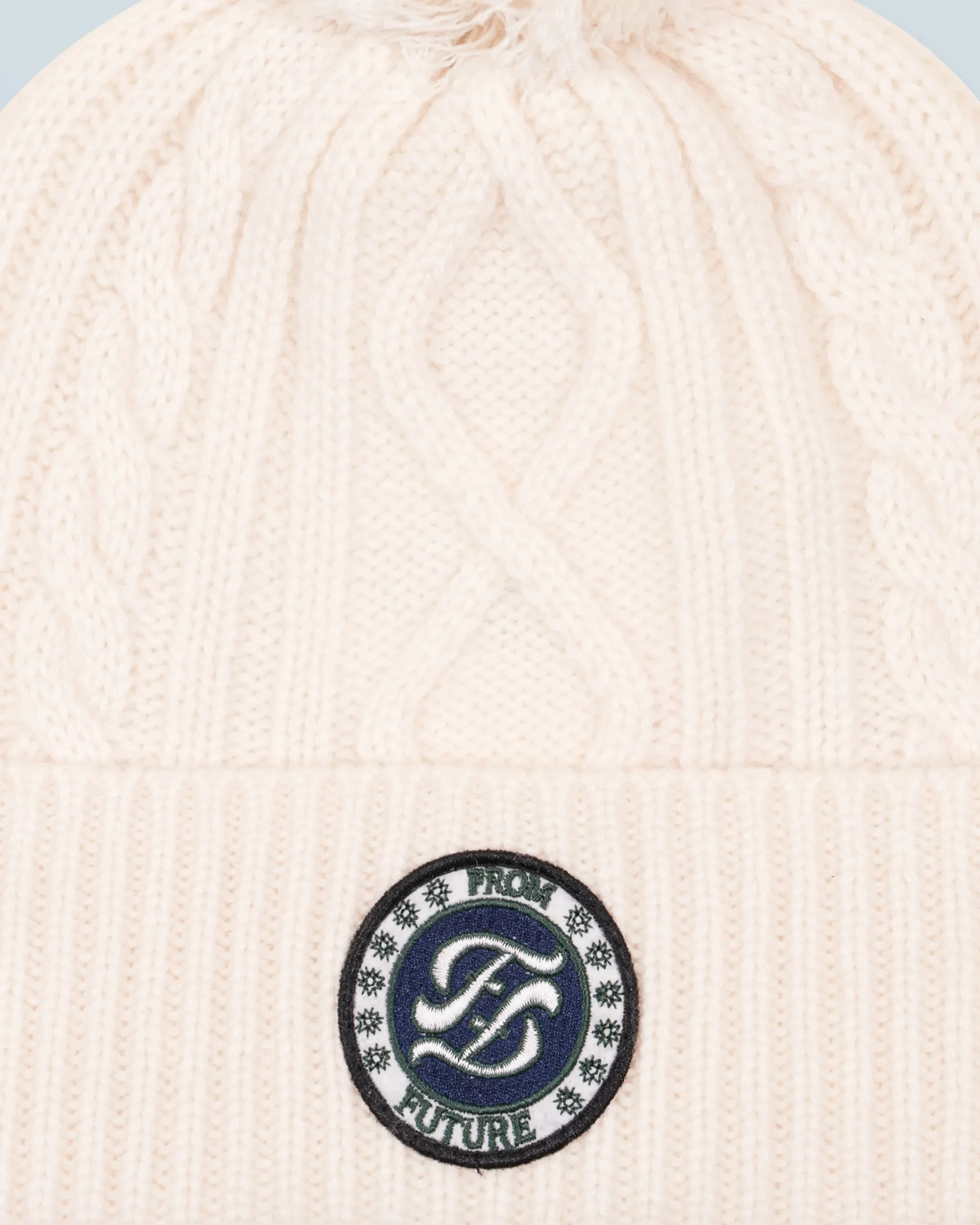 Realizzato in cashmere 10 fili infinitamente morbido, questo berretto a coste oversize completa il tuo look con un dettaglio iconico. Vivacizzato da un pompon e intrecci, presenta uno stemma ricamato From Future applicato sul risvolto.