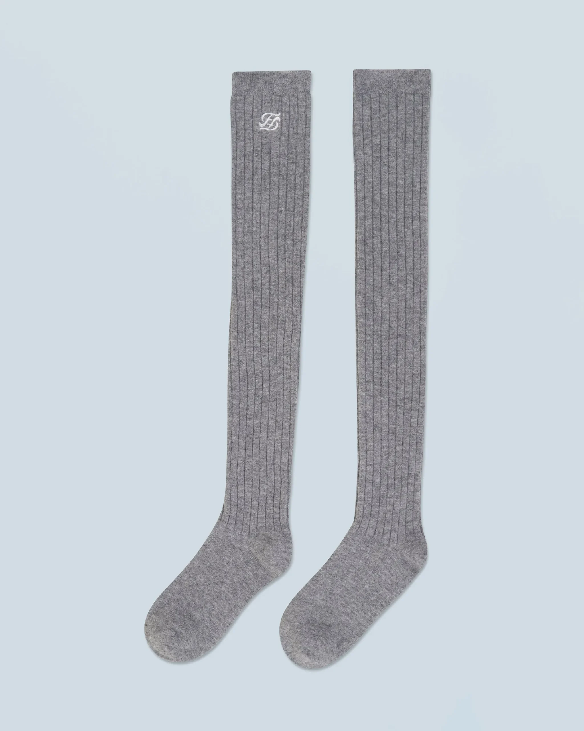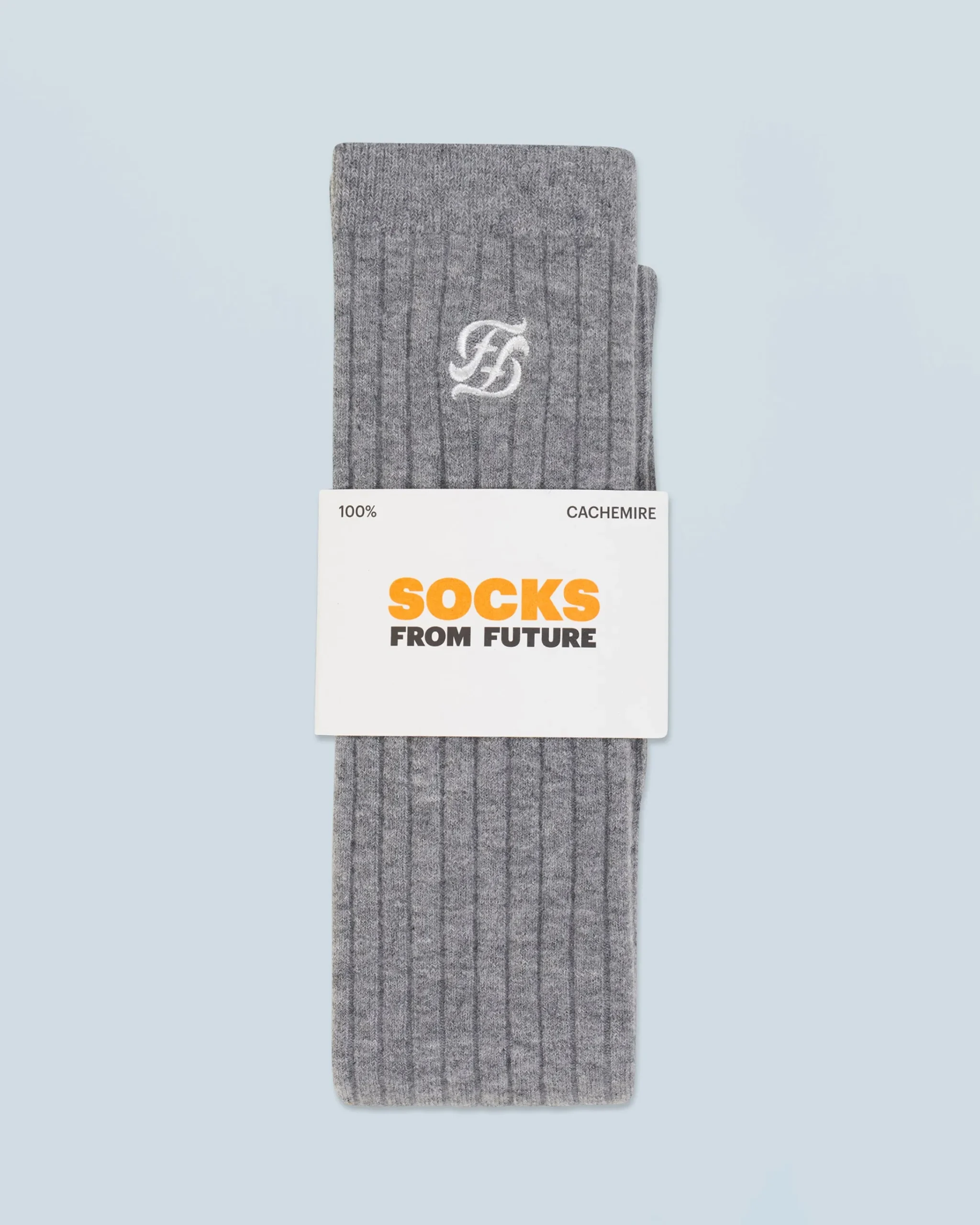 Confectionné en cachemire, ces chaussettes hautes et côtelées révèlent une broderie signature sur le haut. Accessoires indispensables du vestiaire From Future, elles complèteront vos silhouettes casual avec style et audace.- Chaussettes hautes en cachemire certifié GCS®- Broderie “FF”- Côtelées- Ajustées aux chevilles – Coupe regular- Le Good Cashmere Standard® (GCS) est une norme indépendante pour un cachemire plus durable et plus responsable. Il vise à améliorer le bien-être des chèvres cachemire, les conditions de travail des éleveurs ainsi qu’à protéger l’environnement.