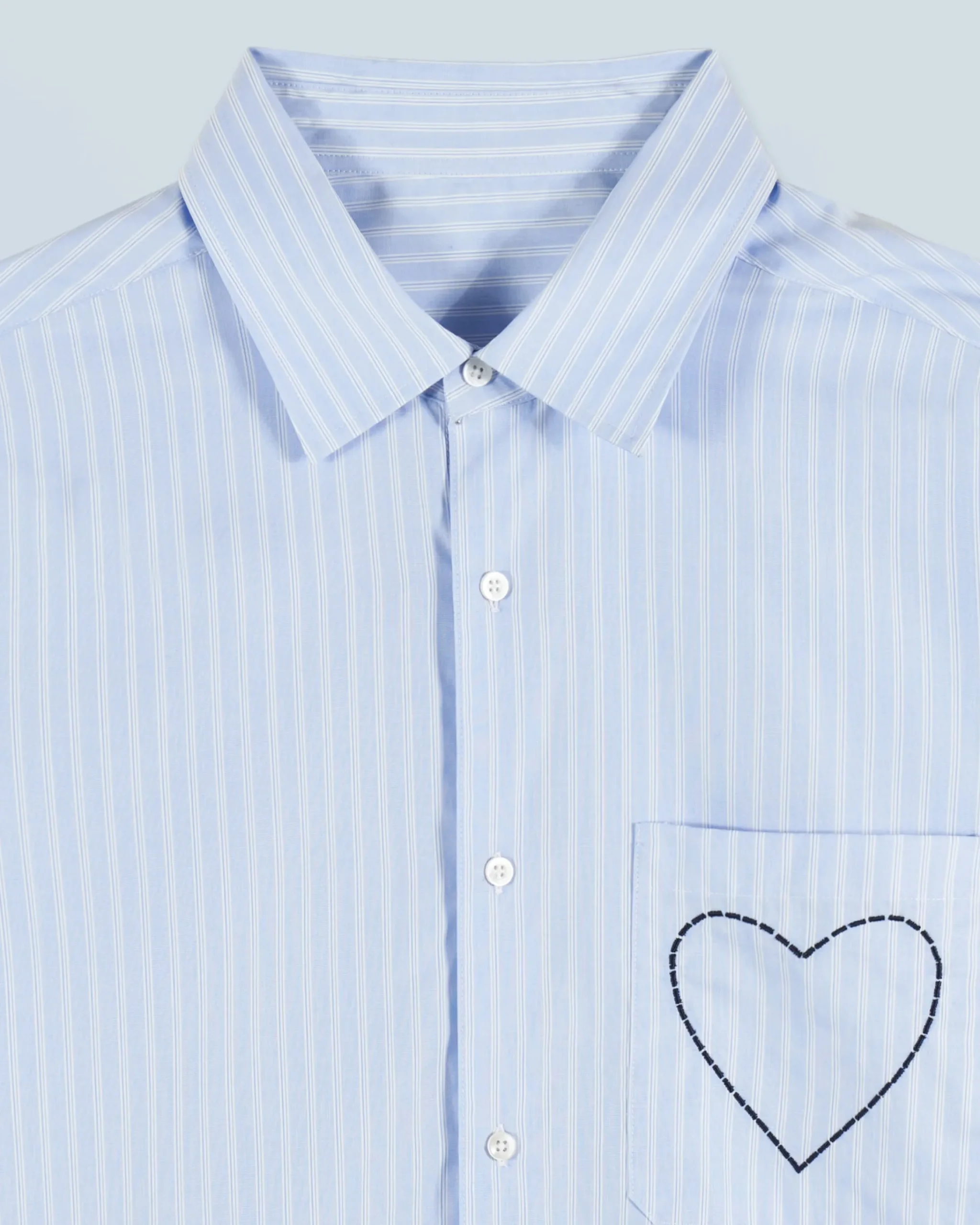 Vivacizzata da un gioco di righe, questa camicia oversize in cotone presenta un cuore delicatamente ricamato sul taschino. Con un collo a camicia e maniche lunghe, presenta una chiusura e polsini con bottoni per un look chic e strutturato.