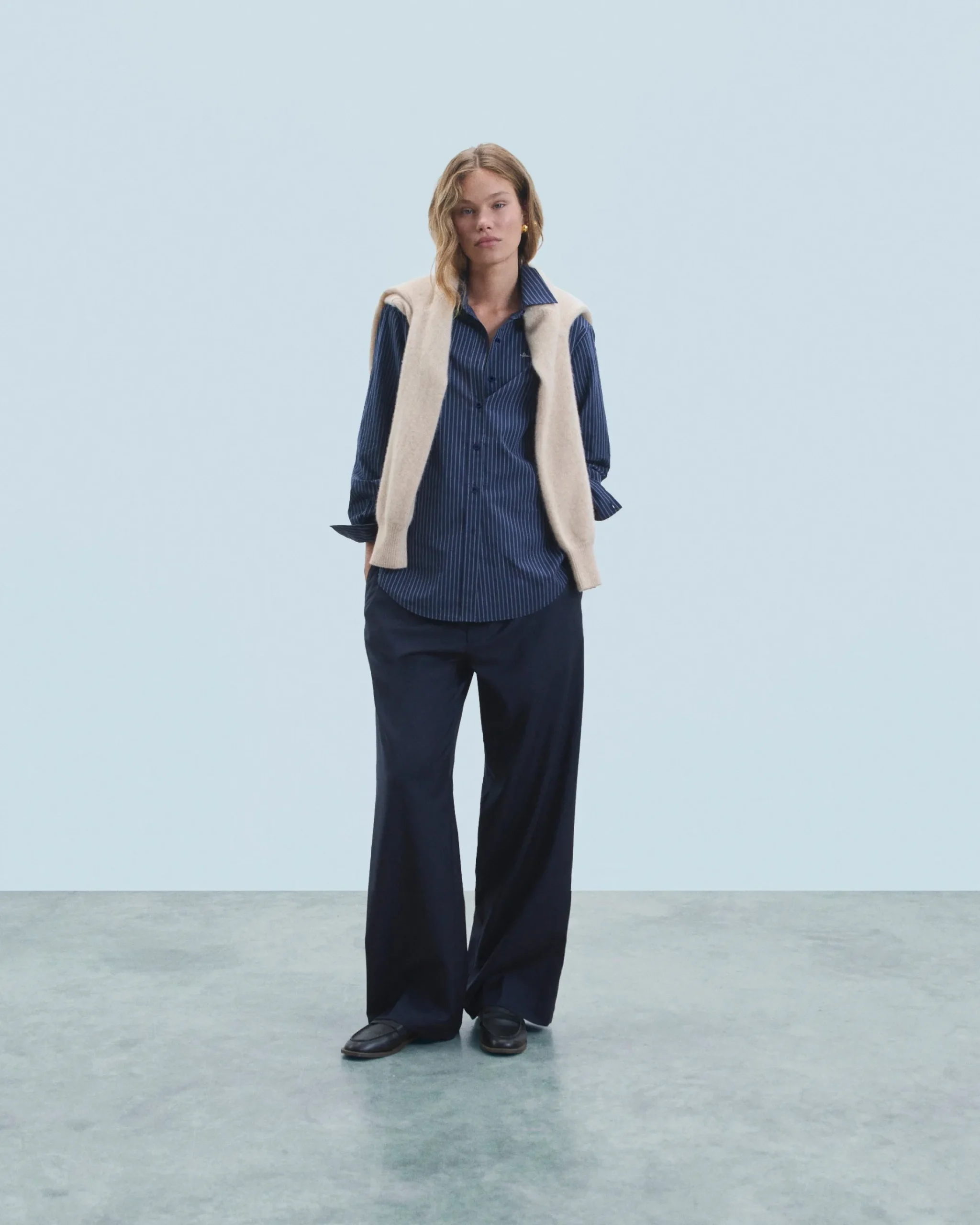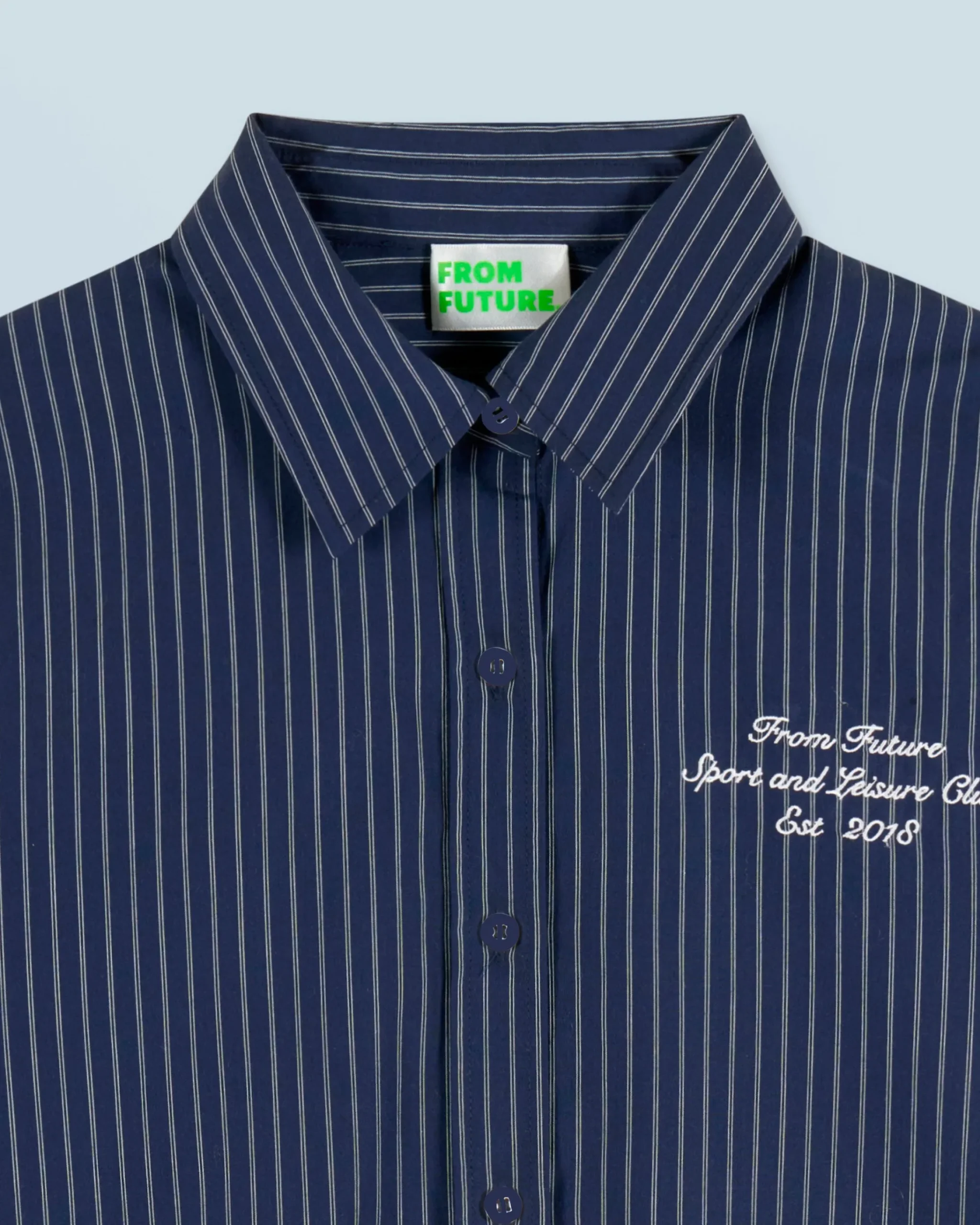 Gioca sulle righe con questa camicia in popeline rigato decorata dal ricamo “From Future Sport Leisure Club” sul petto. Dotato di colletto e maniche lunghe, rivela una chiusura e polsini con bottoni. Incarna l’eleganza casual, abbinalo a una t-shirt ampia e pantaloni dritti.
