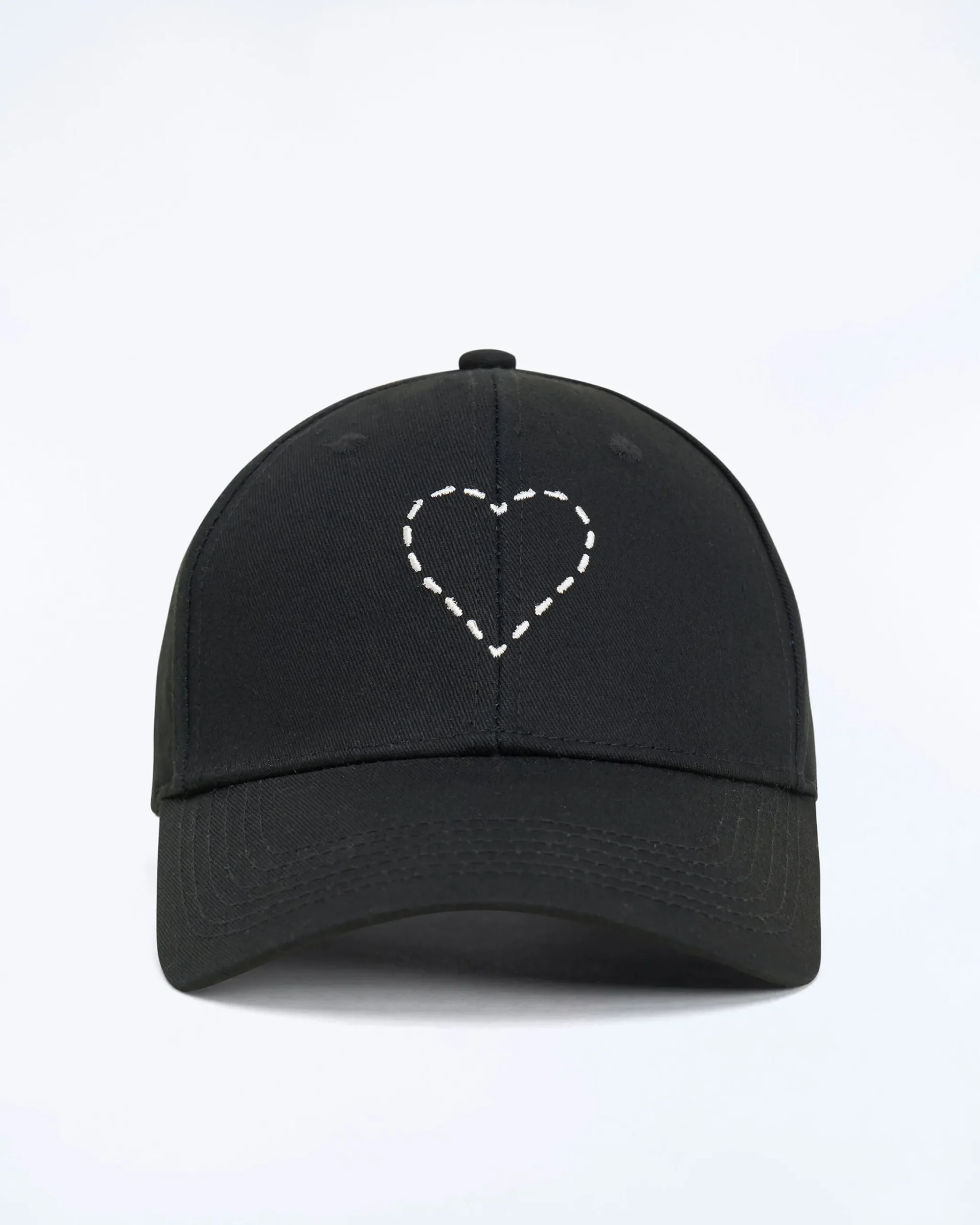 Vivacizzato da un cuore a contrasto ricamato sul davanti, questo cappellino in cotone, con cinturino con fibbia regolabile, dona un tocco di luminosità al tuo look futurista. Elegante e casual allo stesso tempo, completerà il tuo outfit di stagione con eleganza e stile.