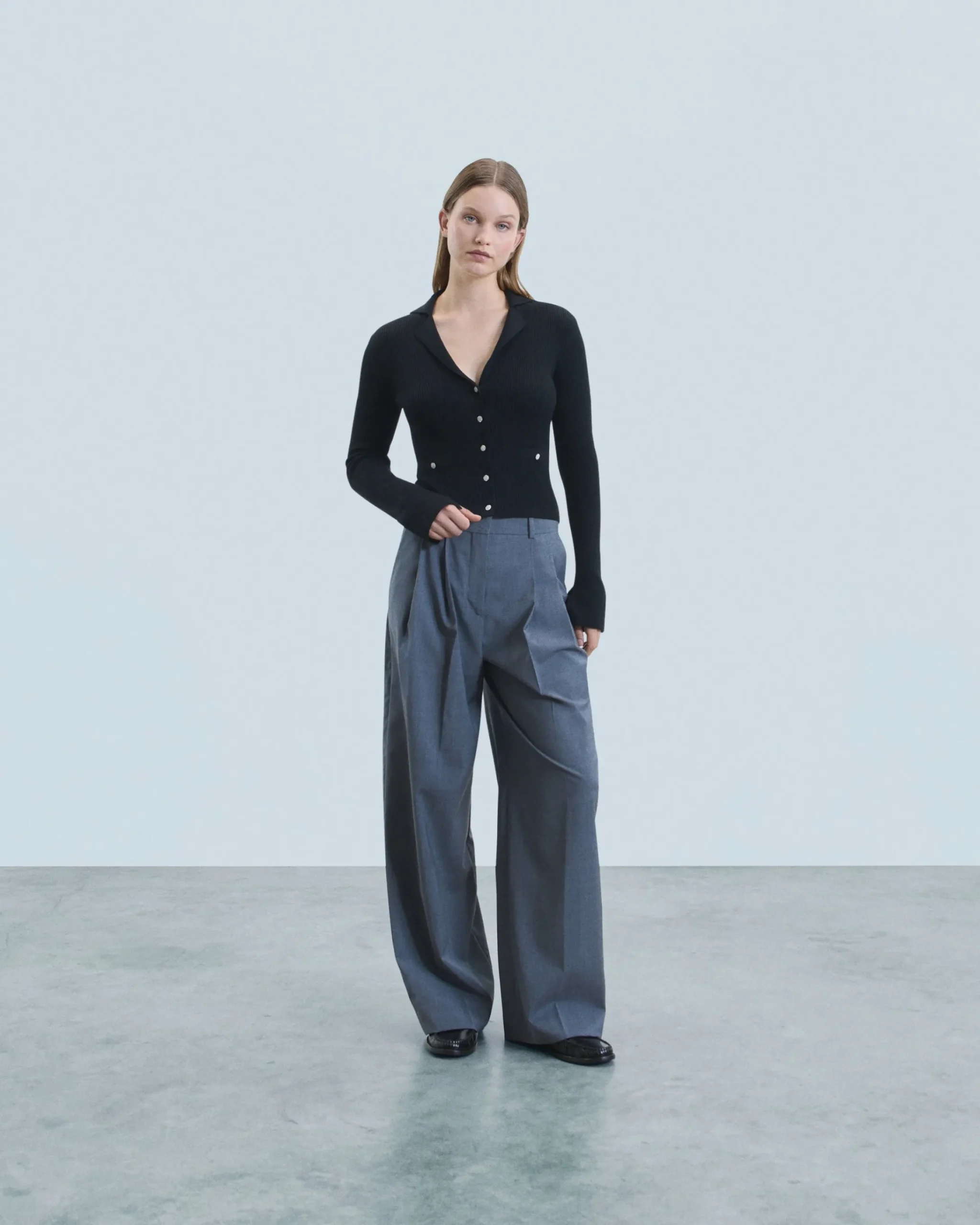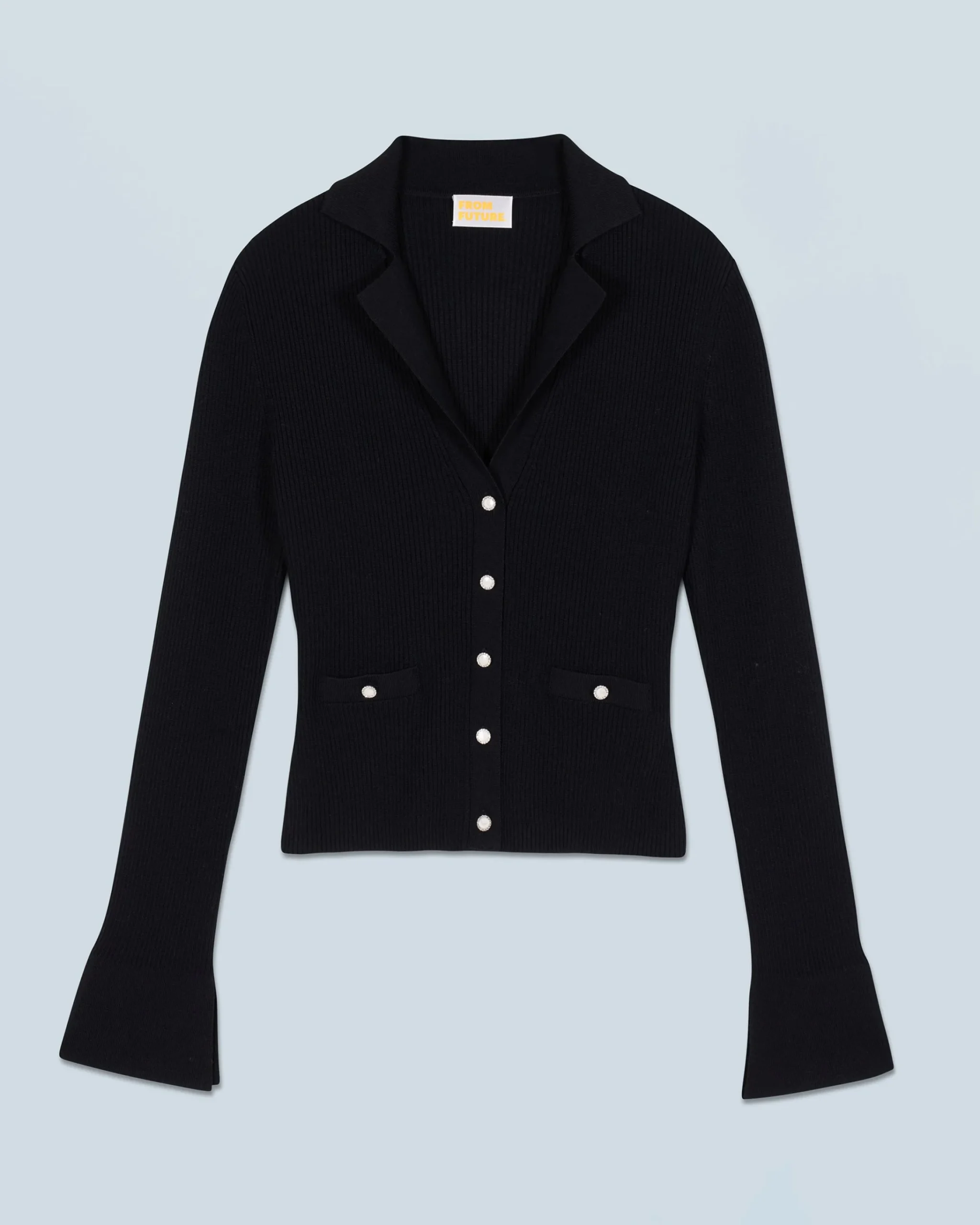 Realizzato in 100% lana merino certificata RWS (Responsible Wool Standard), questo cardigan corto e slim si ispira allo stile sartoriale per dare struttura al tuo look stagionale. Con maniche lunghe e polsini svasati con spacco, presenta un’elegante chiusura impreziosita da bottoni fantasia e tasche finte.
