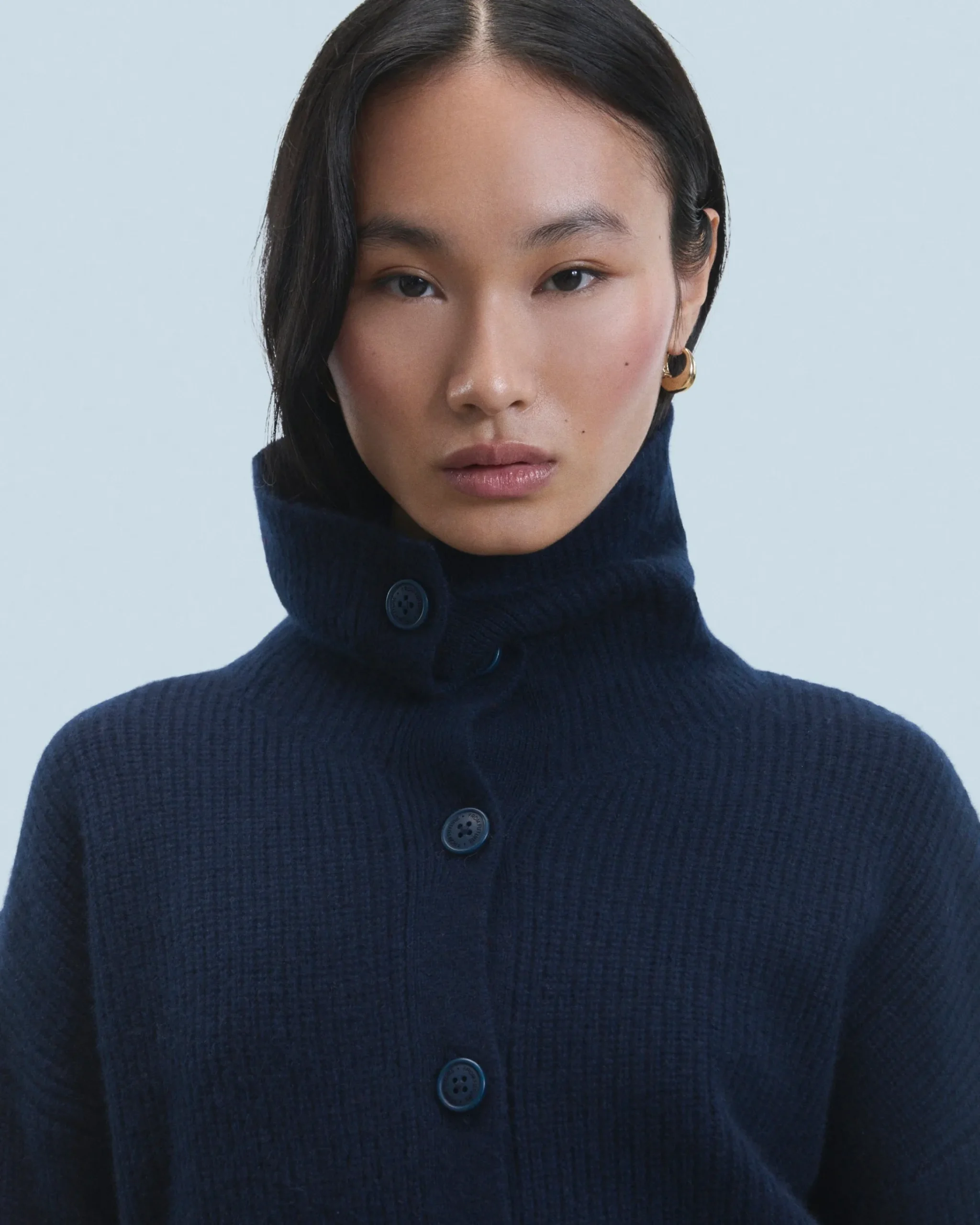Questo cardigan in cashmere, con maniche lunghe e bordi a coste, ti avvolgerà di morbidezza in questa stagione. La chiusura con bottoni consente di regolare il colletto in base al proprio umore: aperto per un look casual o alto per uno stile più deciso.