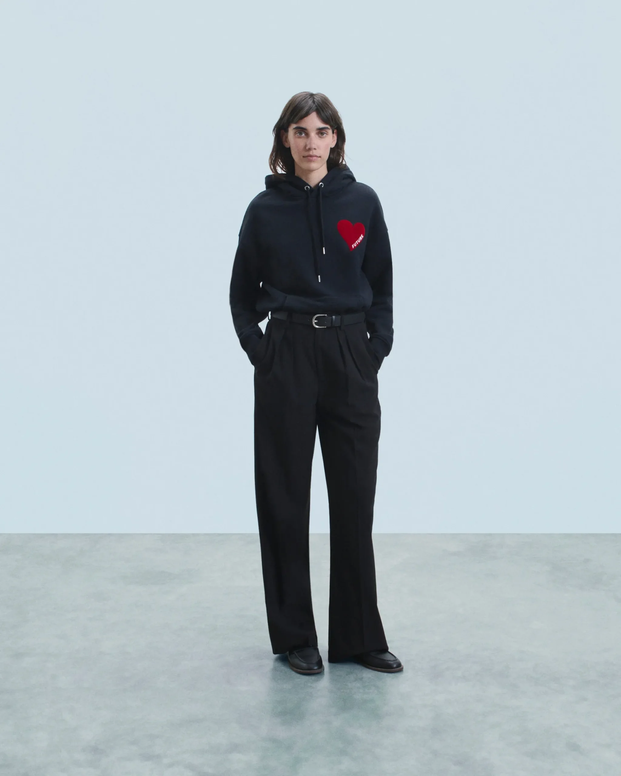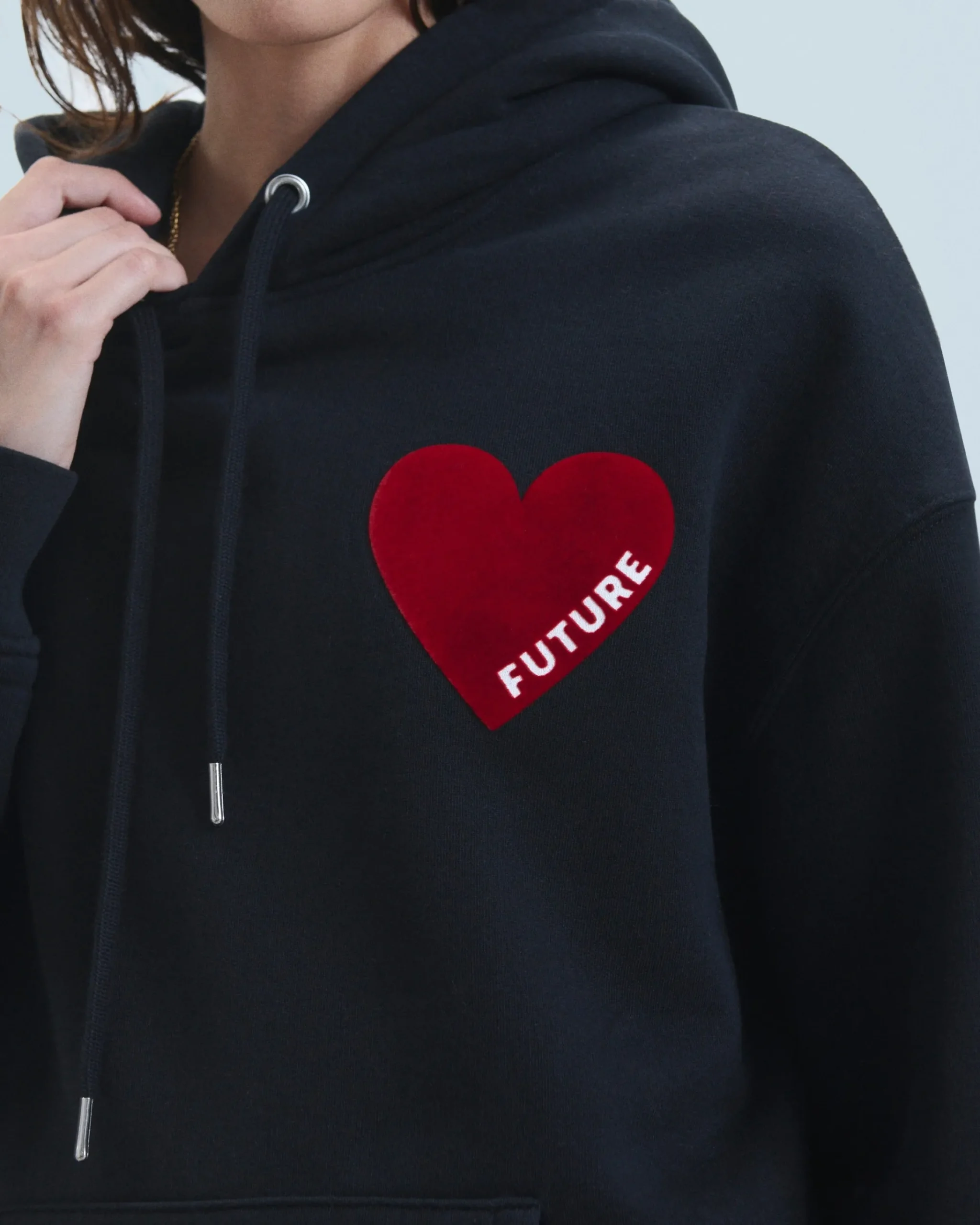 Muni d’une capuche à cordons, d’une poche avant et de manches longues, ce sweatshirt hoodie ovesize en coton dévoile un cœur brodé “FUTURE” sur la poitrine.