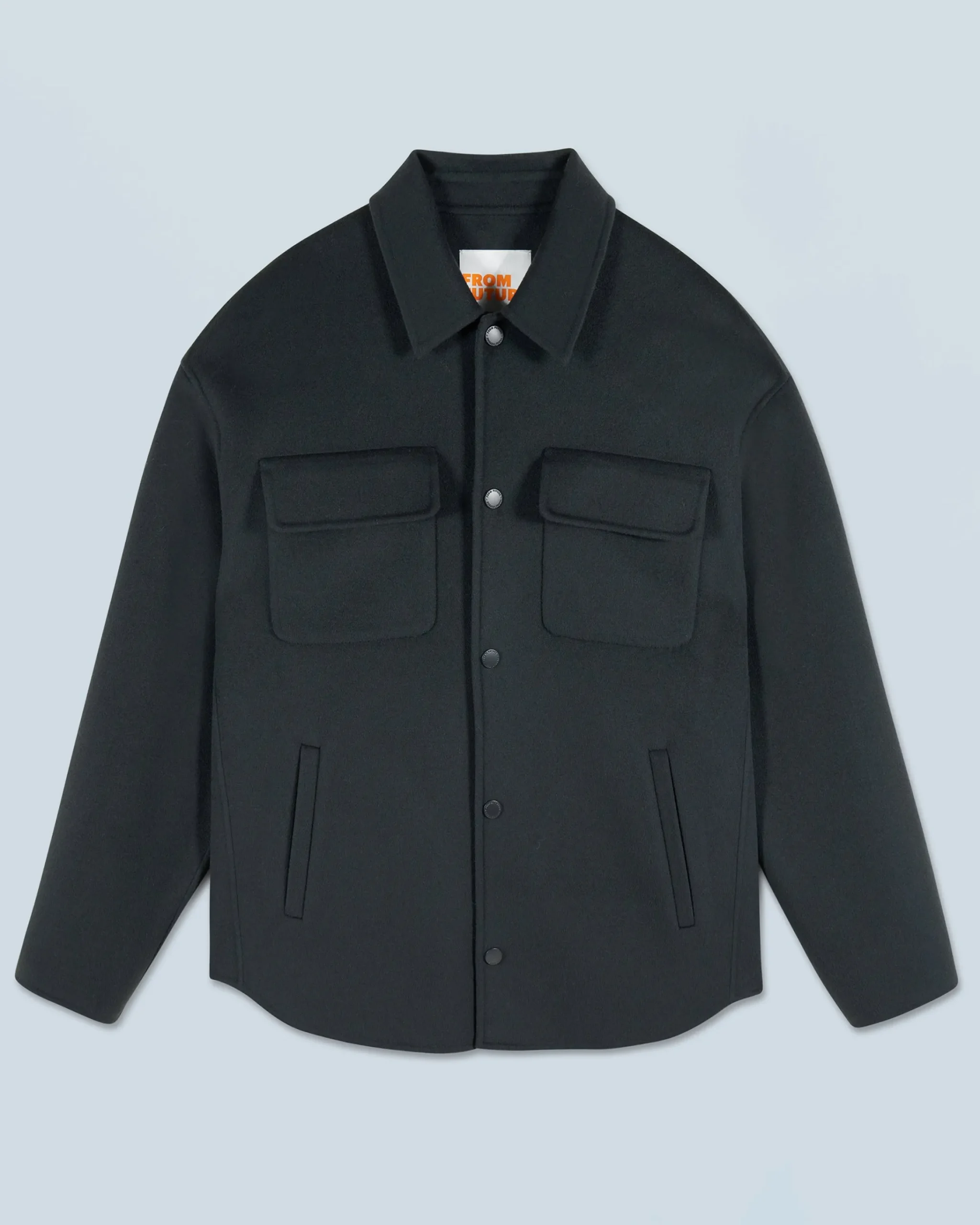 Con il suo taglio impeccabile e le sue linee decise, questa overshirt in lana double face riscalderà il tuo look con un tocco morbido. Caratterizzata da un colletto a camicia e una chiusura con bottoni a pressione, presenta due tasche con patta applicate sul petto e due tasche laterali applicate. Un pezzo essenziale per la stagione, che si abbina sia agli outfit casual che a quelli più sofisticati.