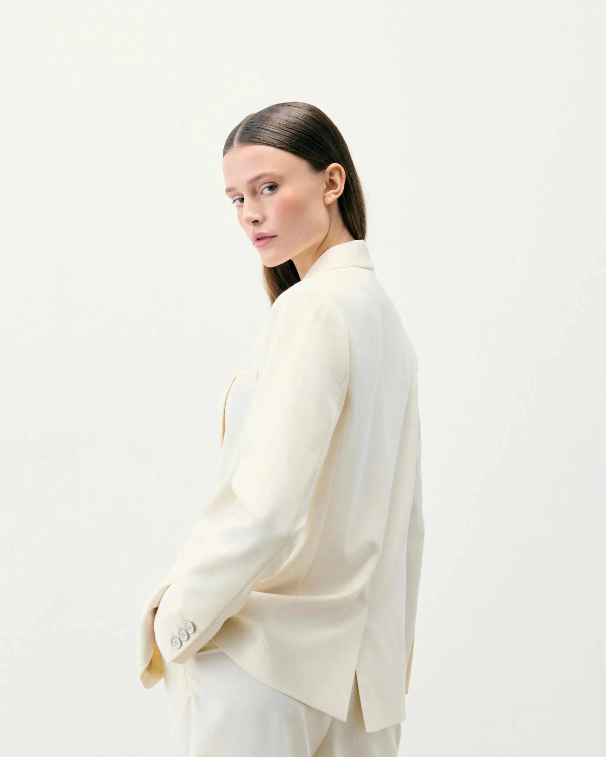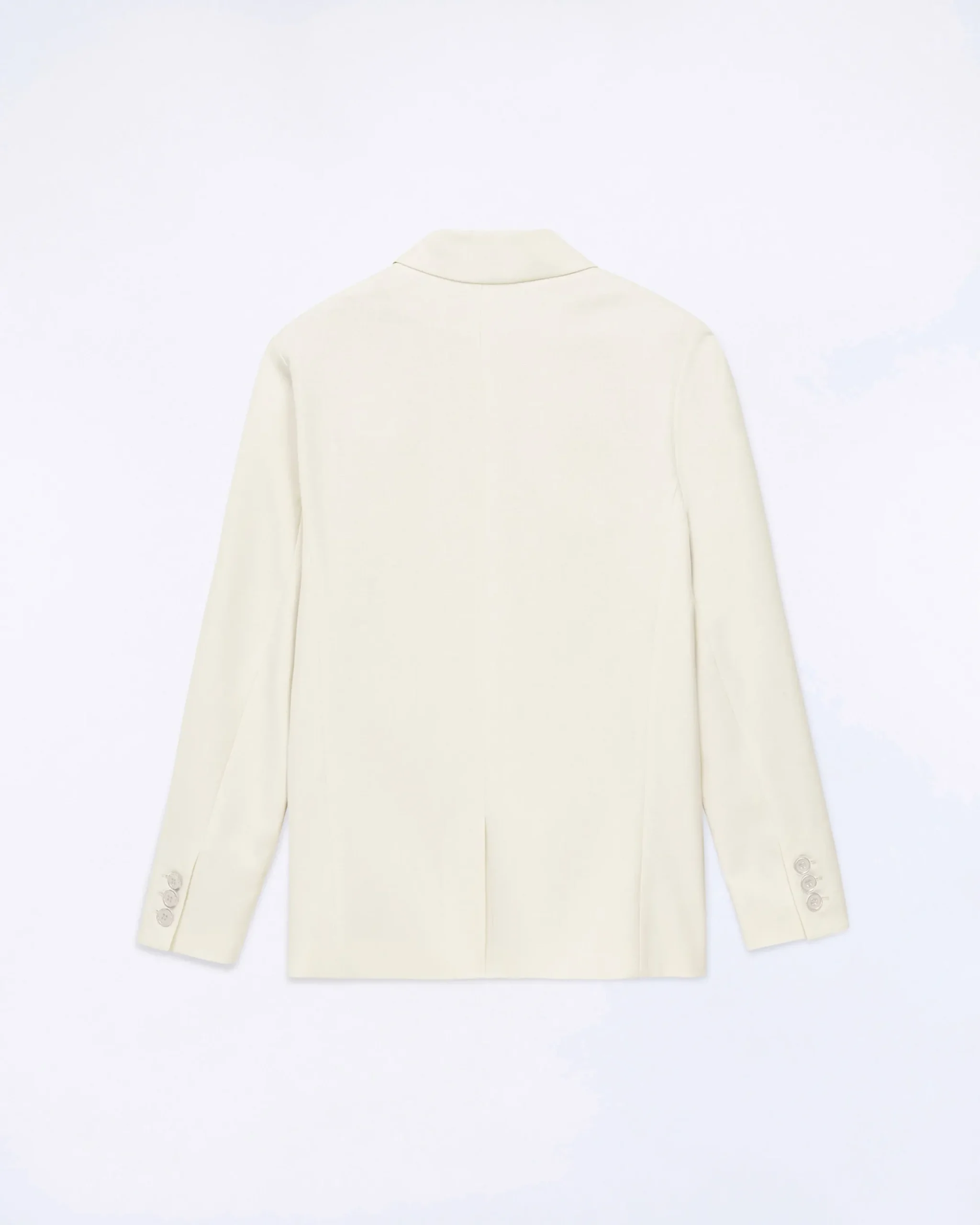 Un’eleganza senza tempo e linee futuriste per questa giacca blazer che si impone come un vero must del guardaroba femminile. Con un collo con revers, maniche lunghe e una chiusura a doppiopetto, presenta dettagli plissettati, una tasca a filetto sul petto e due tasche con patta. Decisamente chic, accompagnerà i tuoi outfit sia di giorno che di sera.