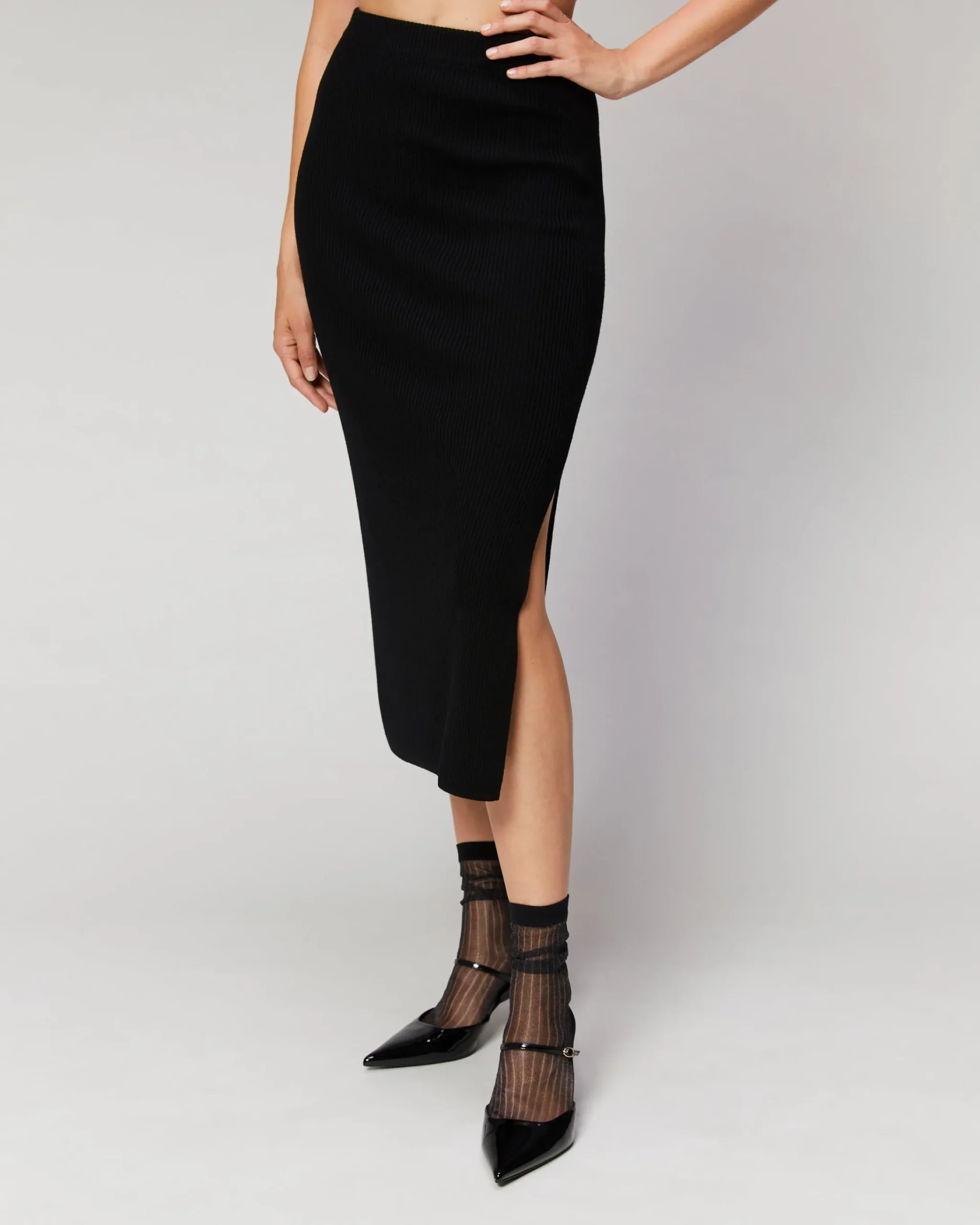 Il futuro si annuncia audace! Confezionata in morbida lana merino, a coste e ariosa, questa gonna midi presenta un taglio slim e si indossa come una seconda pelle. Unendo comfort ed eleganza, è caratterizzata da una vita elasticizzata e uno spacco sul fondo. Completa il tuo look abbinandola a un top in maglia, un paio di décolleté e un set di gioielli!