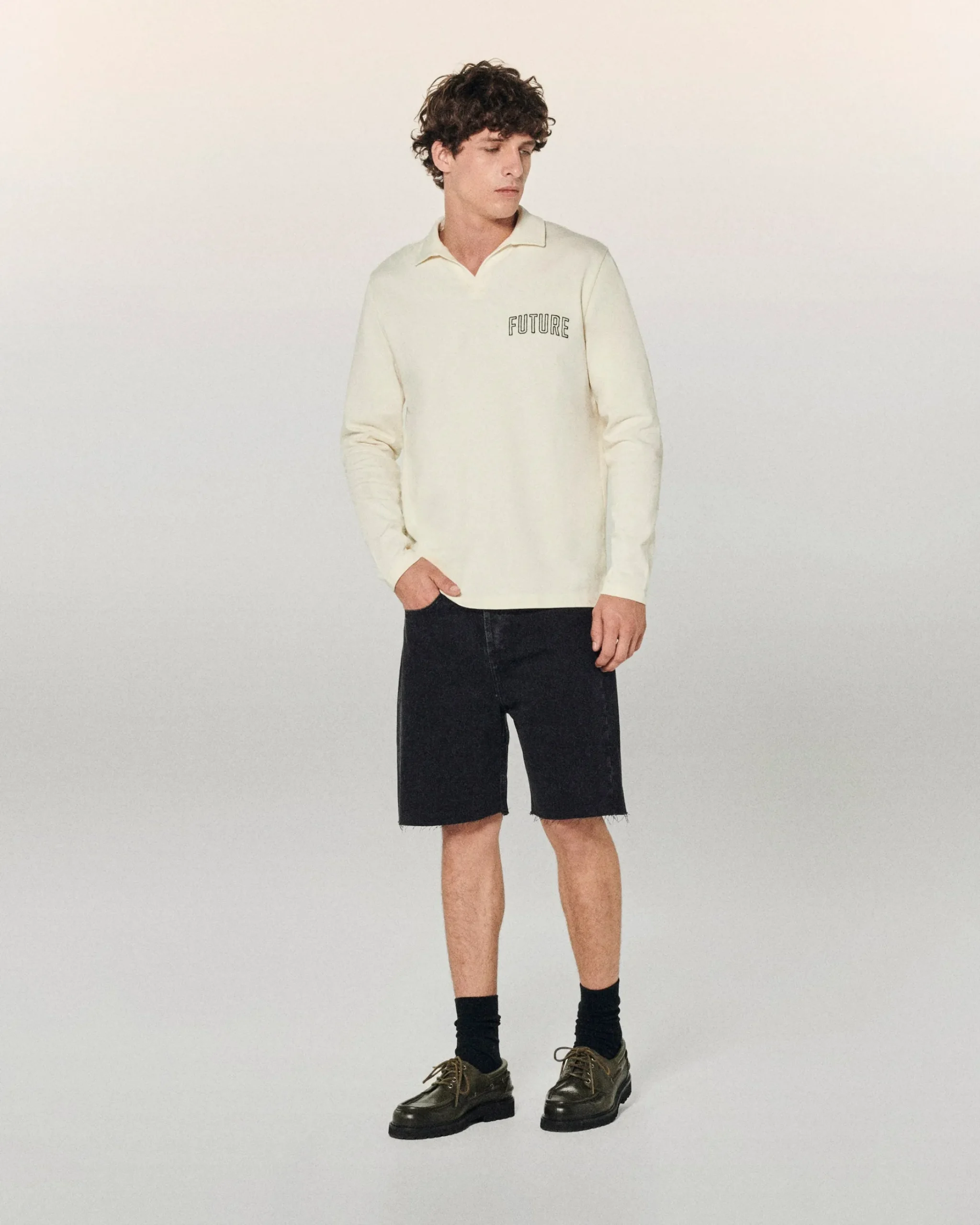 Incontra Jack, Shorts United Denim. Adattamento regolare. Dettagli: ricami da future semi-nascondigli e jacron firmati sul retro. Fondo delle gambe con bordi liberi.