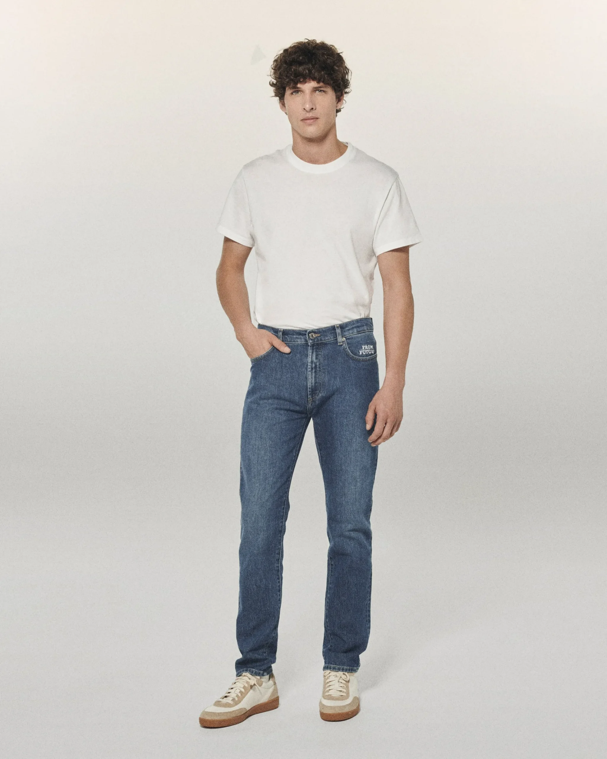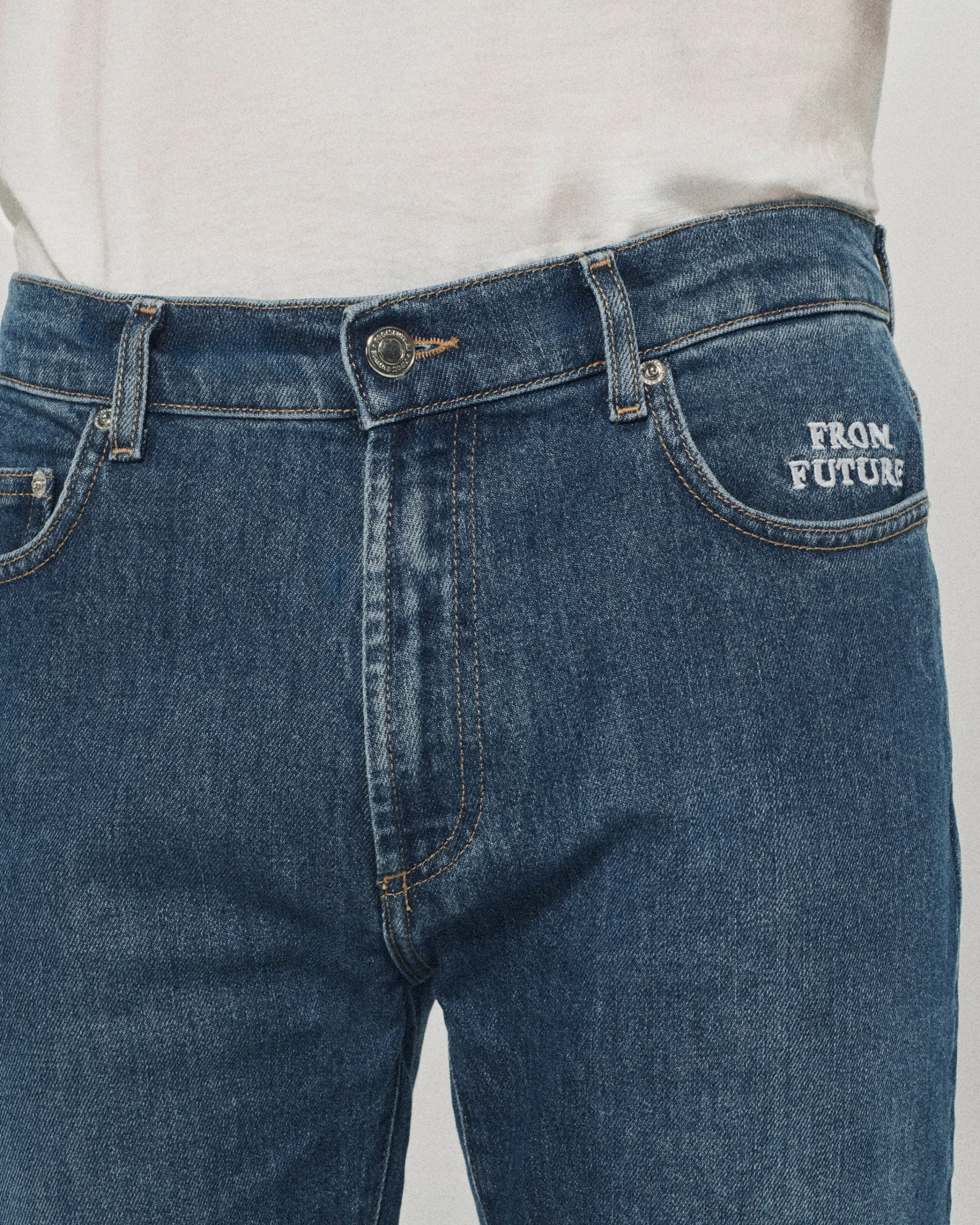 Tutto su Jacob: Jean Slim Fit. Future ricami semi-allenati nella tasca sinistra. Jacron colorato sul retro. Chiusura per bottoni con una parte anteriore sul davanti.