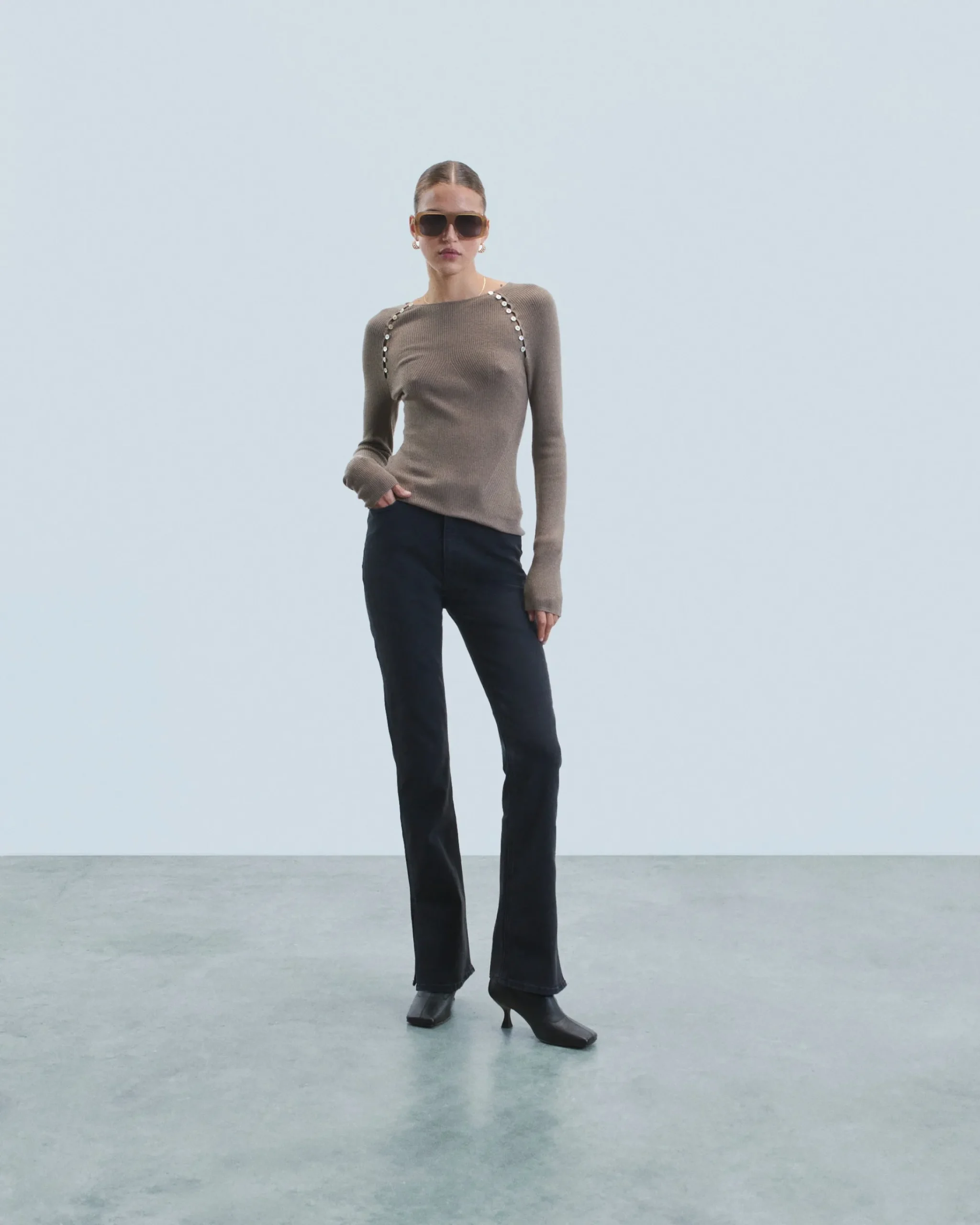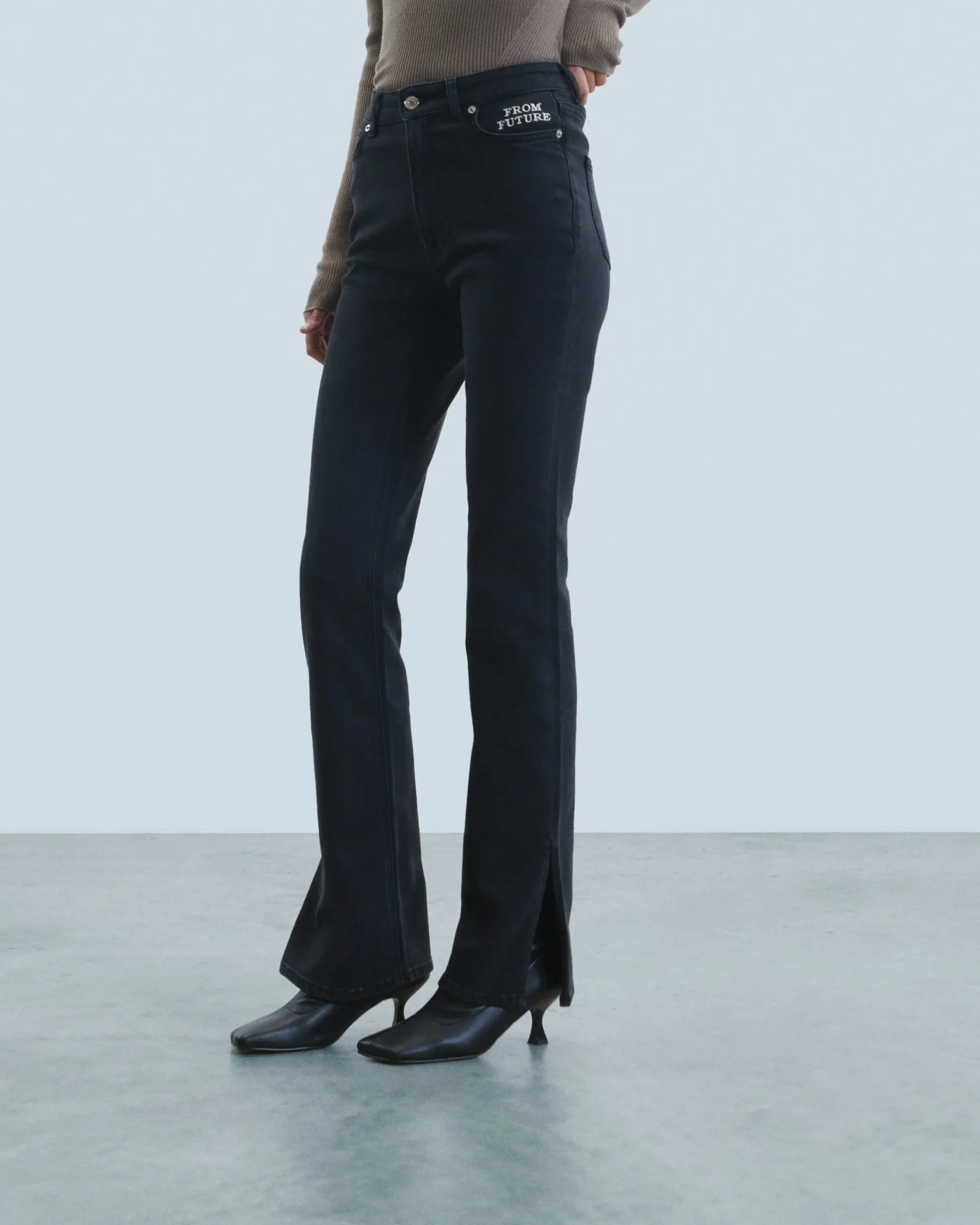Incontra Joe: l’elegante bootcut con dettagli nel ricamo semi-fresco “From Future” sulla tasca sinistra.5 tasche, vita alta, chiusura di bottoni di metallo, fondo di gambe con bordi liberi con fessure sul lato. Una buona base che indosserai tutto l’anno.