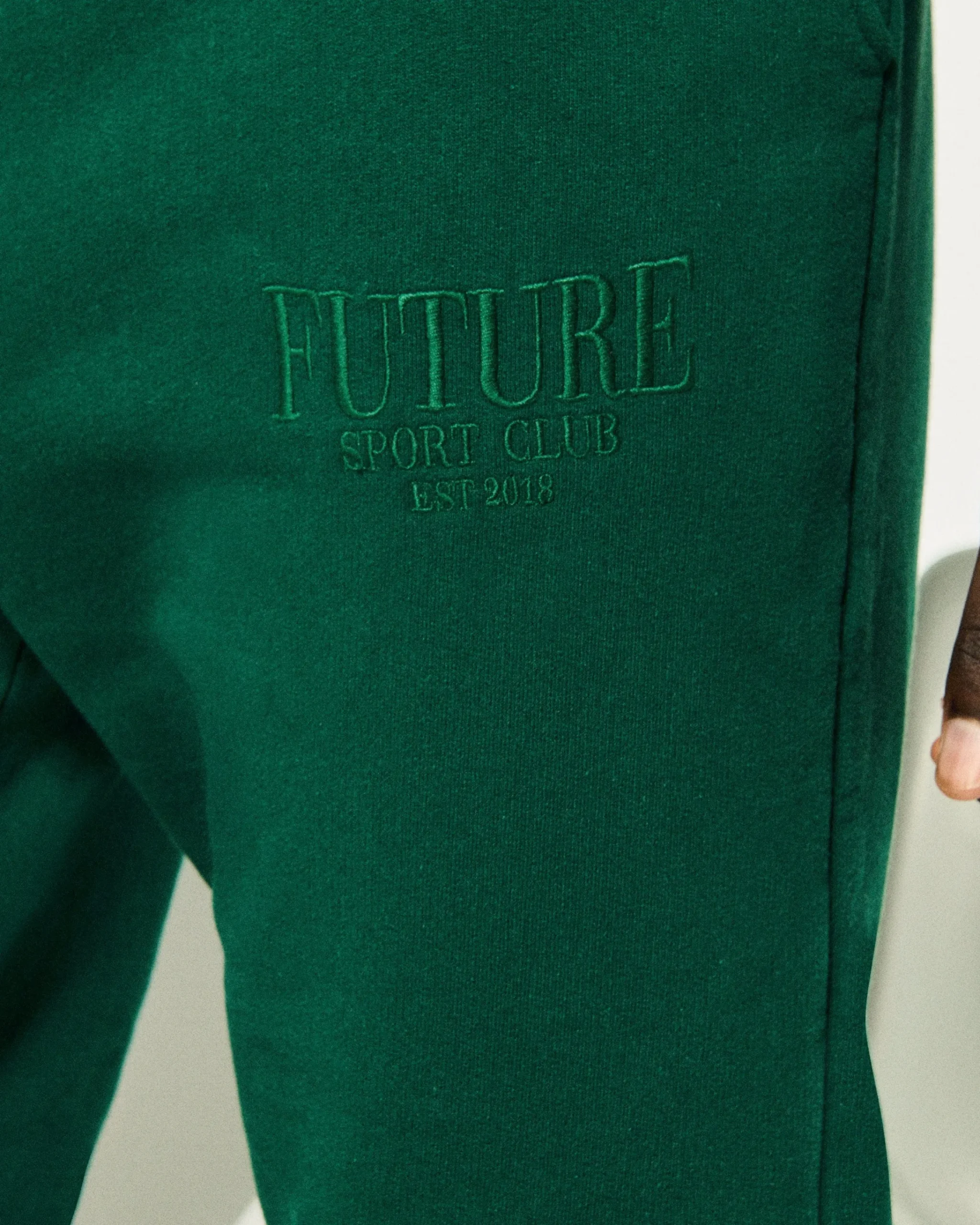 Il ricamo Future tono su tono sul davanti di questi joggers in cotone ti invita a entrare nel Club! Stretti sulle caviglie, presentano due tasche e una vita elasticizzata con cordoncini da stringere per un look slim. Completa il tuo outfit casual con una t-shirt dritta e una felpa oversize!