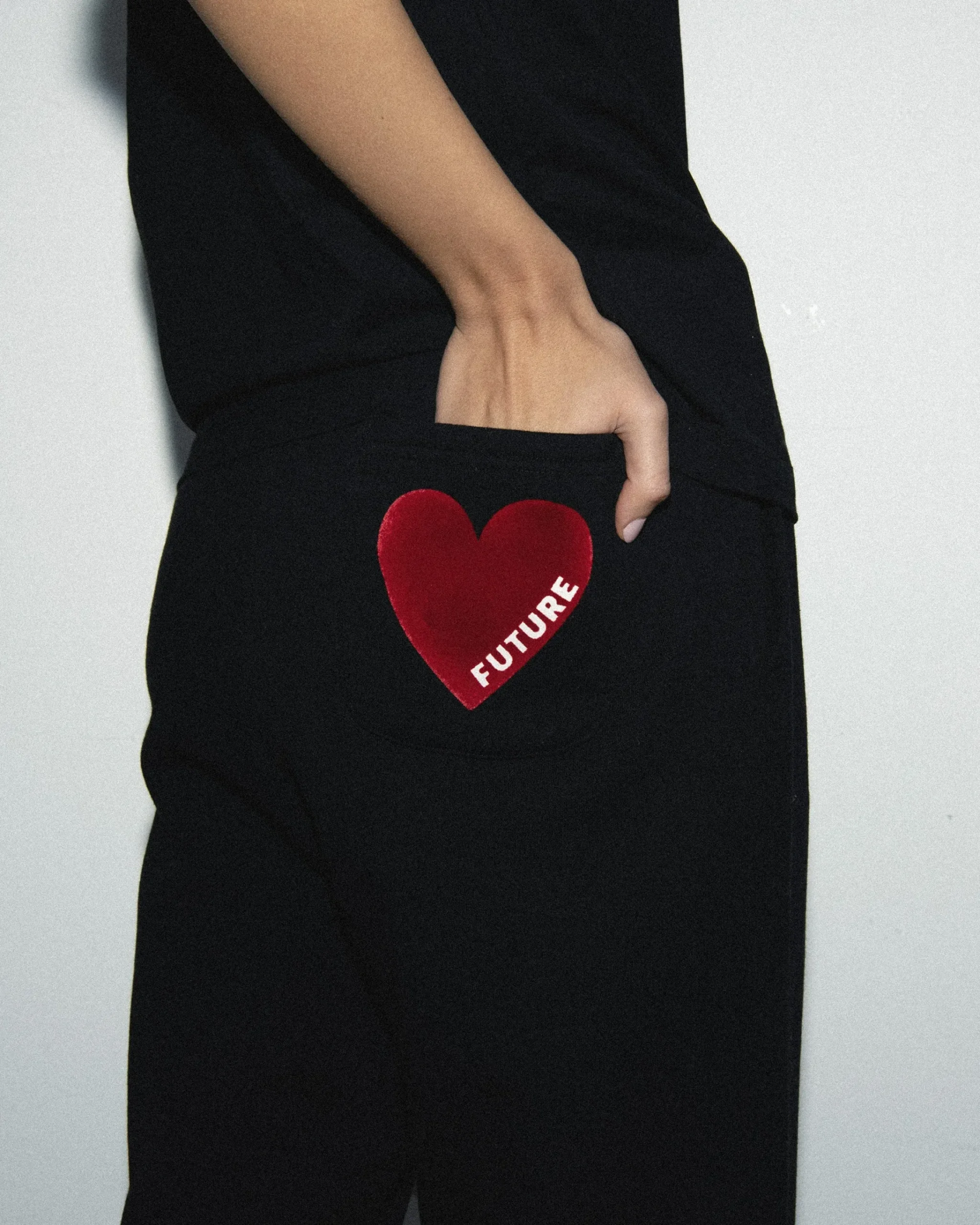 Un cuore floccato FUTURE è il protagonista di questi joggers a gamba dritta in tessuto felpato con vita elasticizzata. Entra nel Club con questo must-have del guardaroba FROM FUTURE!