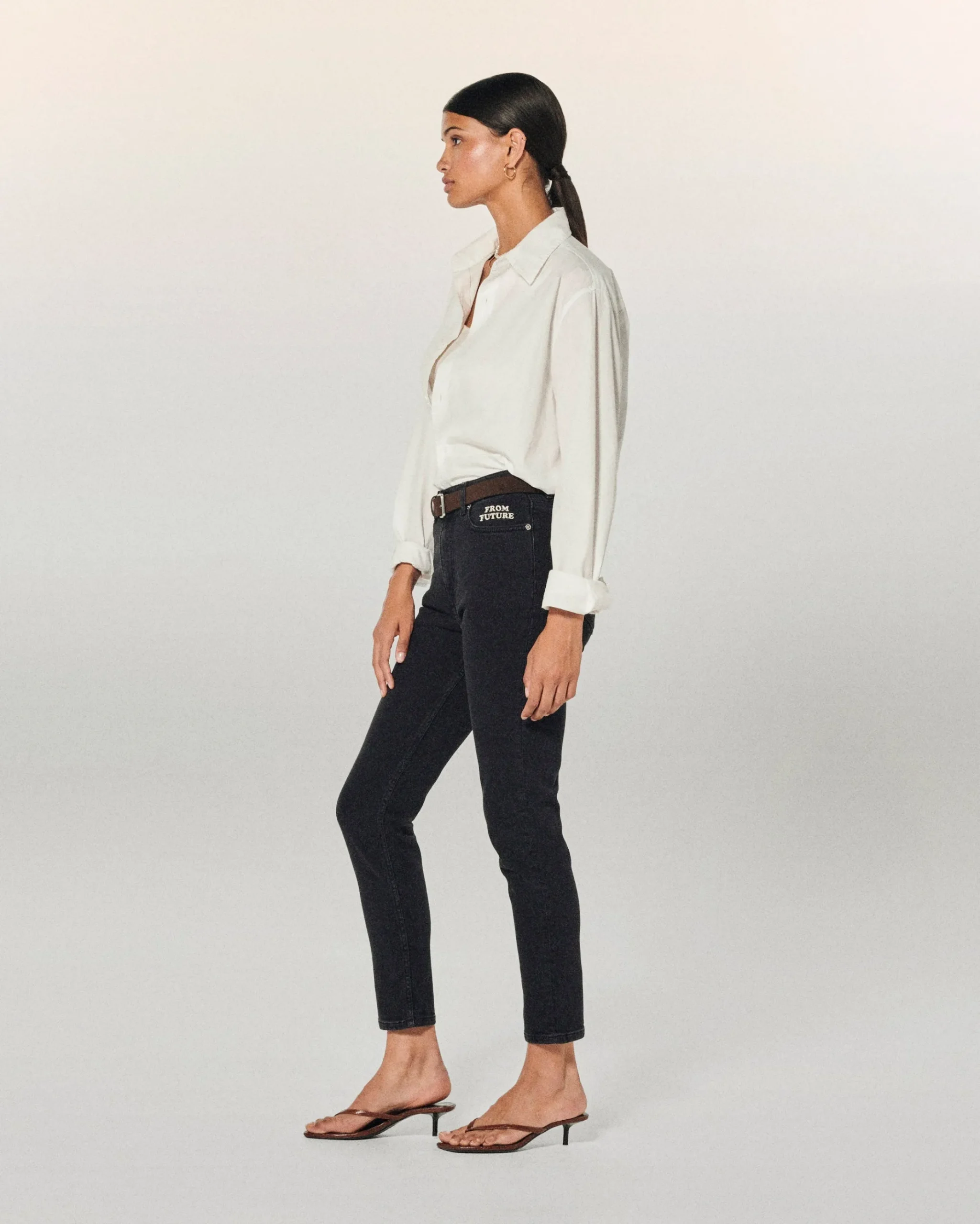 Incontra Johnny: il nostro Jean Slim Made with “From Future” ricami semi-nascosti sulla tasca sinistra. Lunghezza ideale ideale per staccare la silhouette, di dimensioni mezze. Lunghezza 7/8 °.