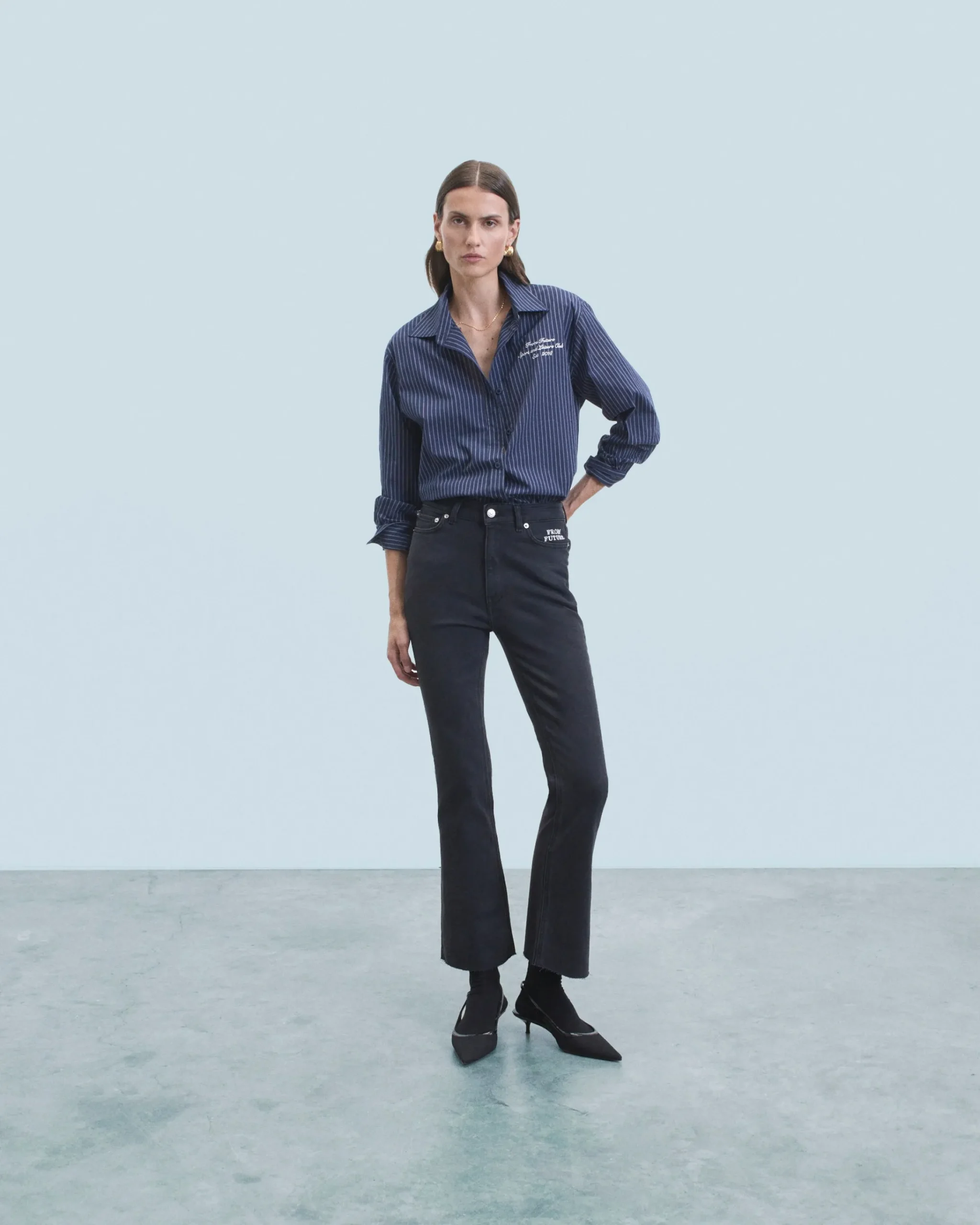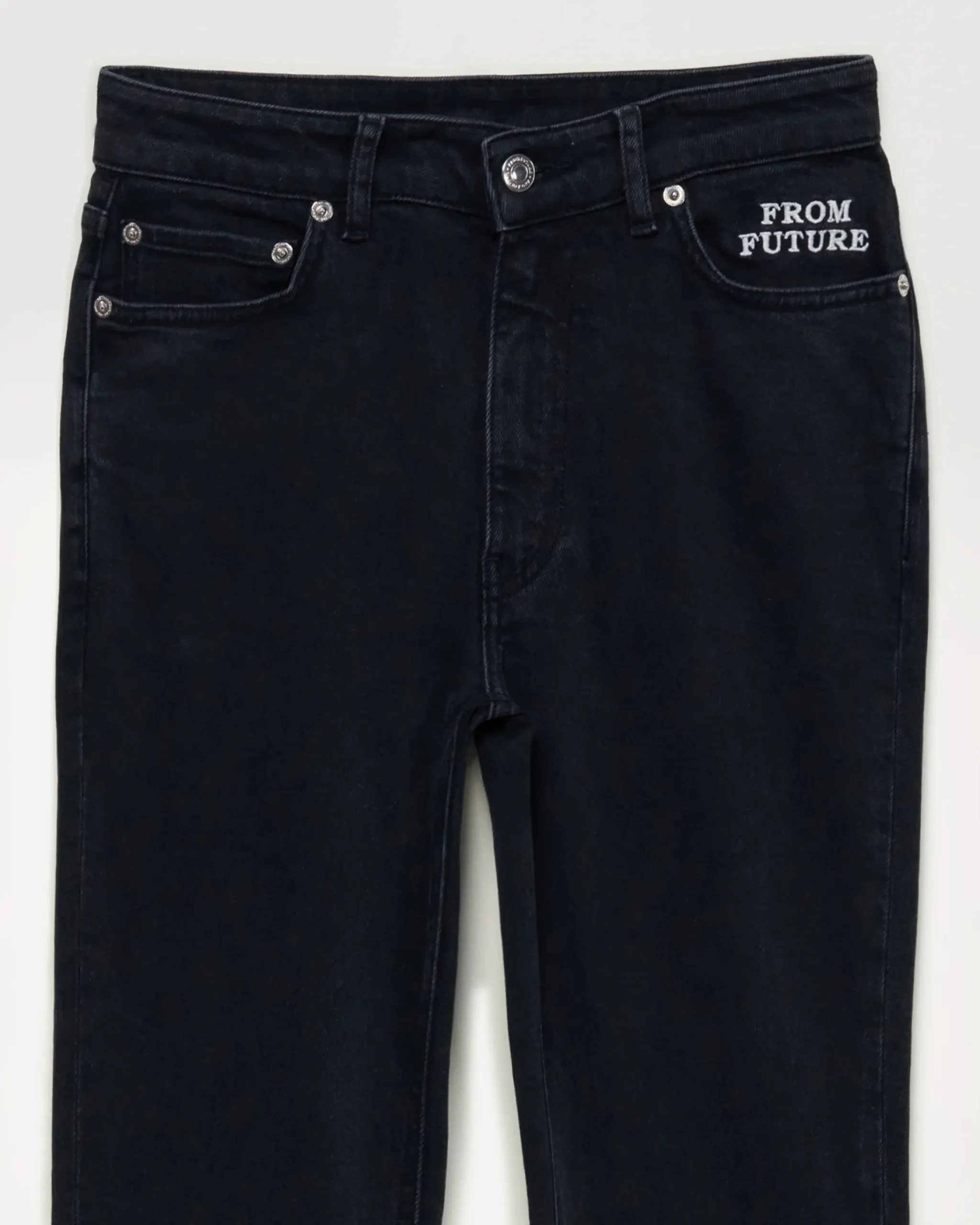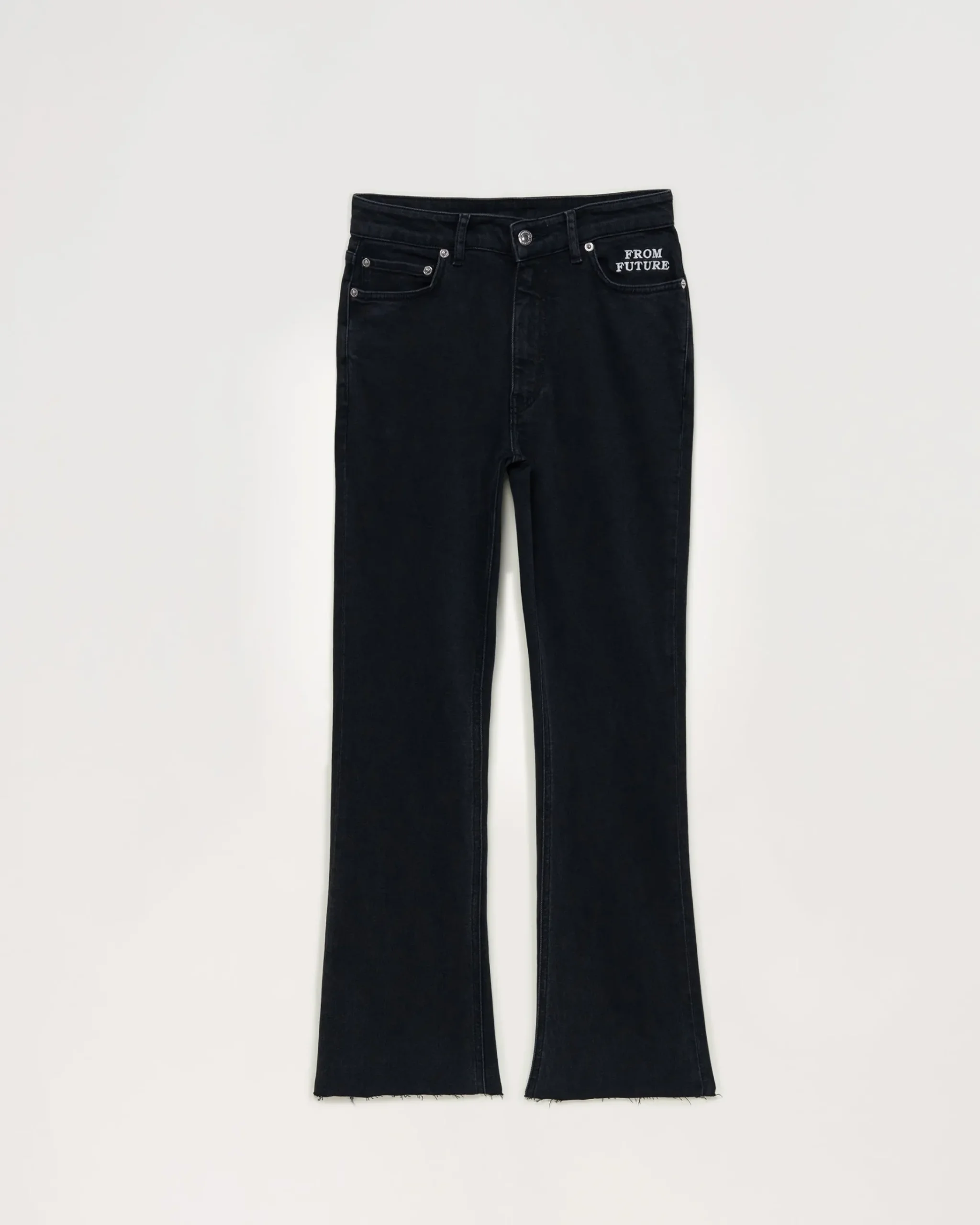 Incontra Jude: l’elegante bootcut con dettagli nel ricamo semi-alzante “From Future” sulla tasca sinistra.Lunghezza 7/8 °.5 tasche, vita alta, chiusura dei pulsanti di metallo, fondo di gambe con bordi gratuiti. Una buona base che indosserai tutto l’anno.