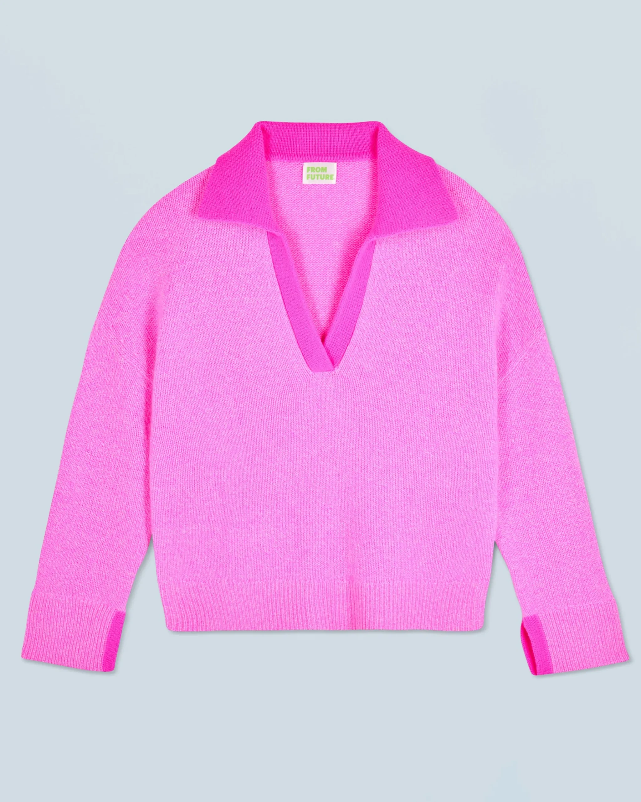 Una morbida maglia bicolore per questo lungo maglione oversize in cashmere. Con maniche lunghe e svasate, i bordi a contrasto danno struttura al collo a polo e ai polsini con spacco. Per un look chic e casual, indossalo con pantaloni sartoriali o una gonna morbida.