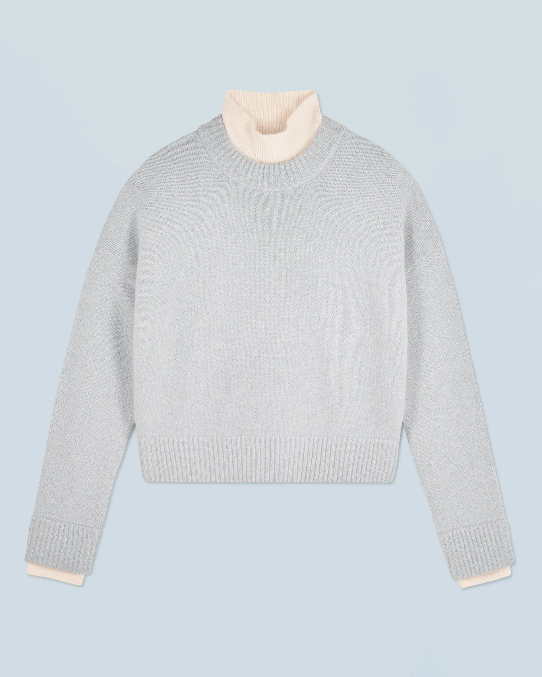 Impreziosito da un collo alto e polsini a contrasto, questo maglione corto e oversize crea un elegante effetto di sovrapposizione. Realizzato in cashmere, le maniche lunghe e i bordi a coste riscalderanno il tuo outfit di stagione. Indossalo con un paio di jeans a gamba larga o una gonna morbida per un look chic e strutturato!