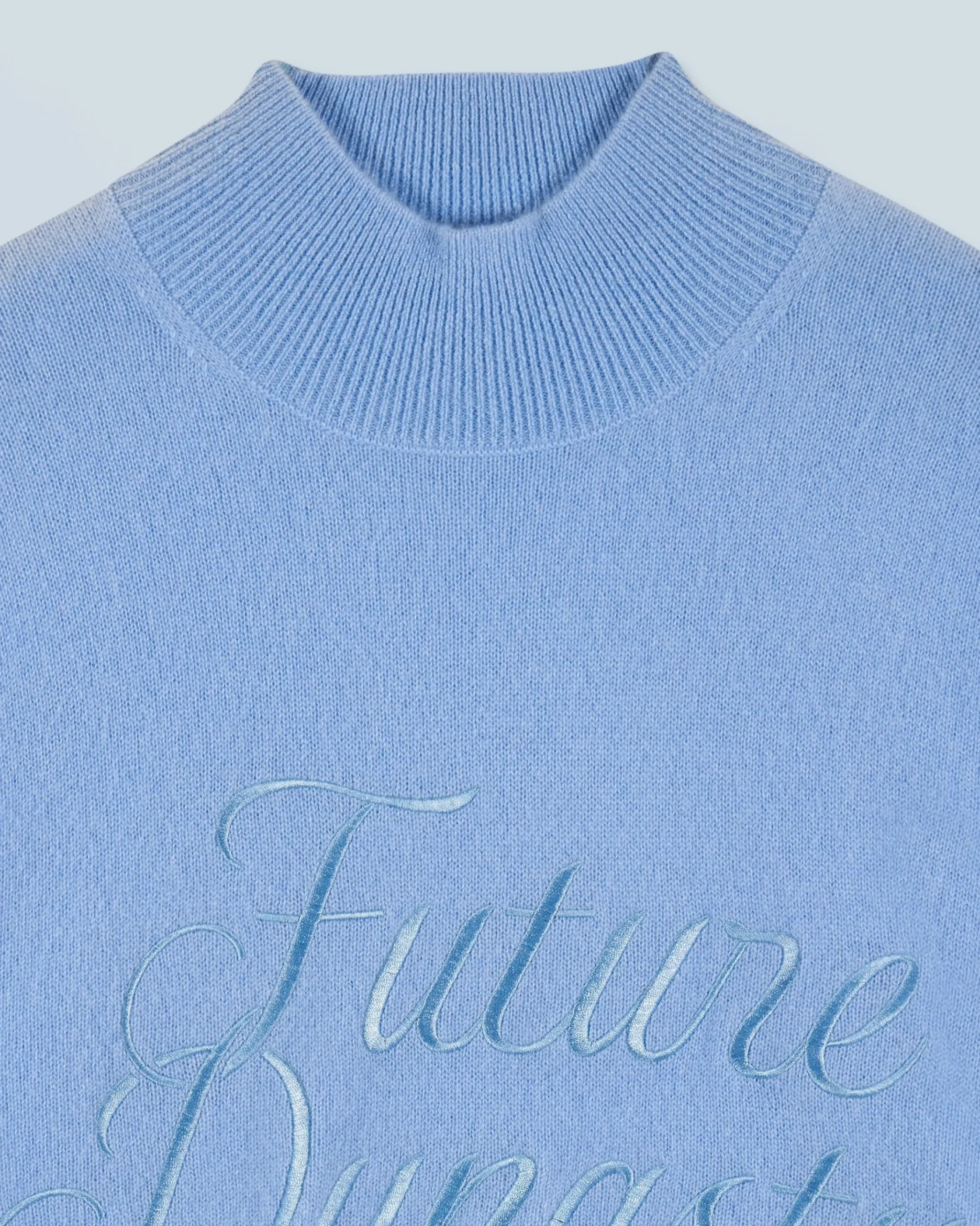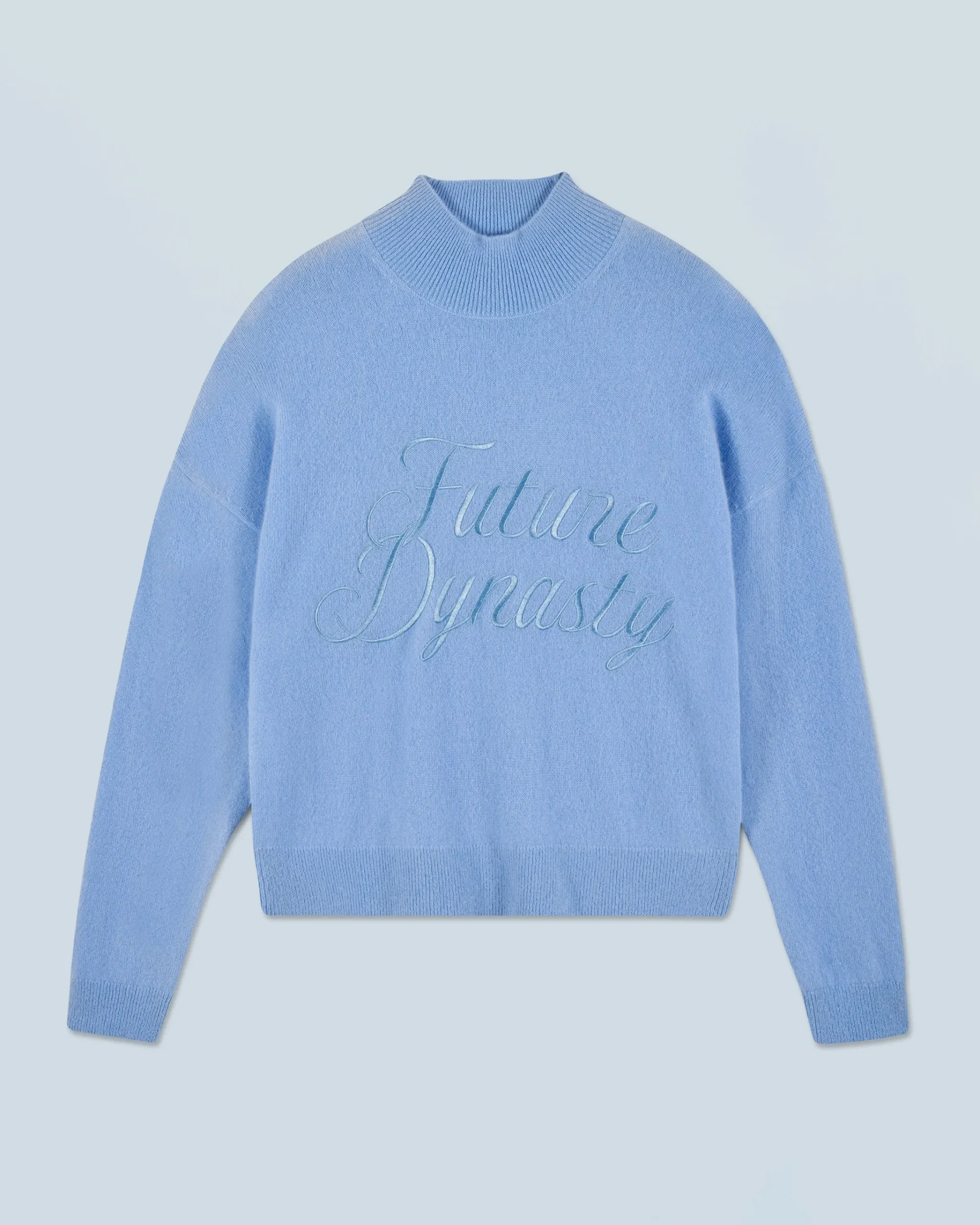 Con un colore delicato e un dettaglio iconico, questo maglione oversize presenta il ricamo “Future Dynasty” sul davanti. Realizzato in cashmere, il collo alto e le maniche lunghe aggiungono un tocco di raffinatezza al tuo outfit. Indossalo con una gonna morbida per un look elegante!