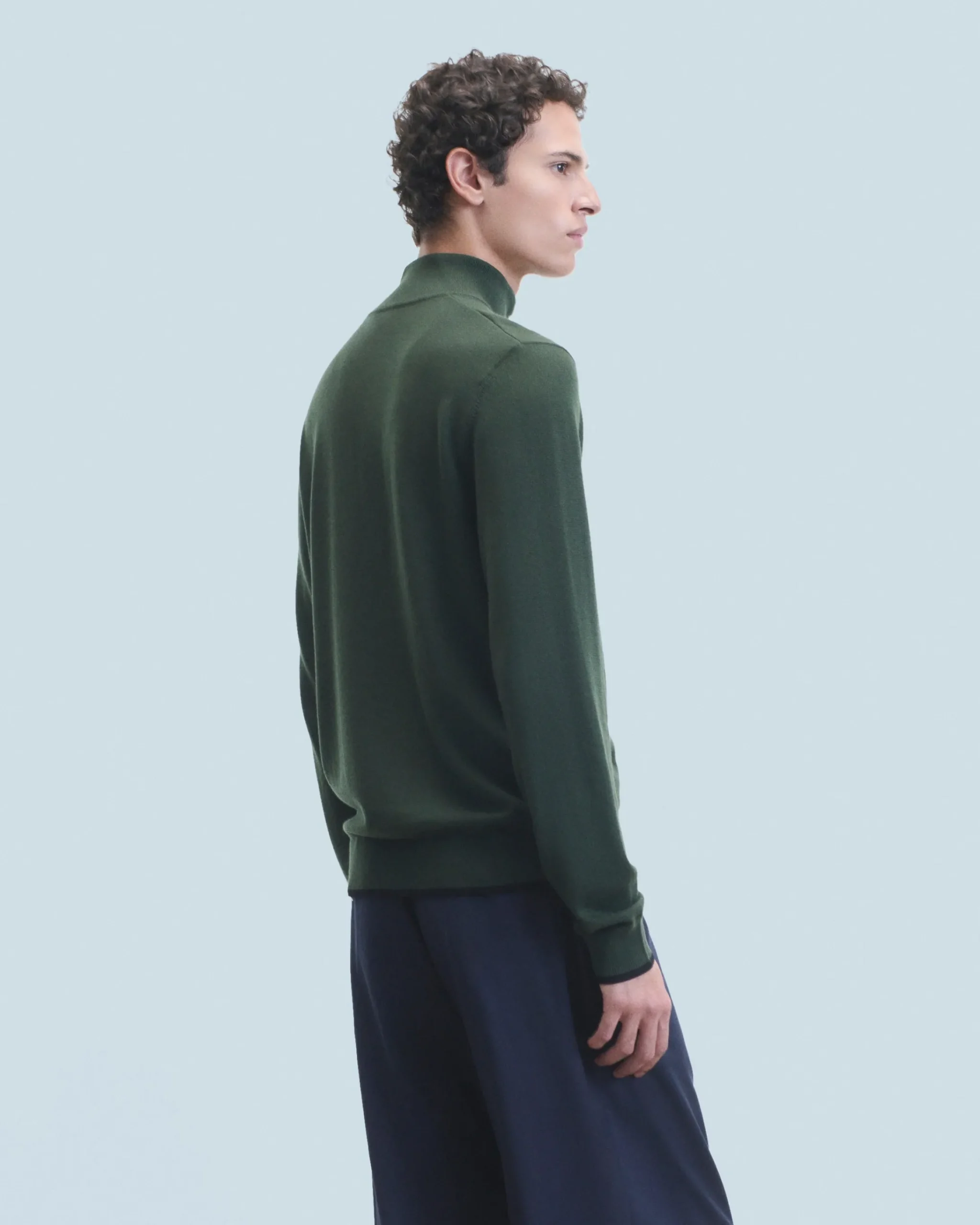 Realizzato in 100% lana merino certificata RWS (Responsible Wool Standard), questo maglione si distingue per le sue linee decise. Con un collo alto con zip e maniche lunghe, conferisce un look strutturato che viene sottolineato dai bordi a contrasto. Indossalo con una t-shirt e un paio di jeans per un look casual!