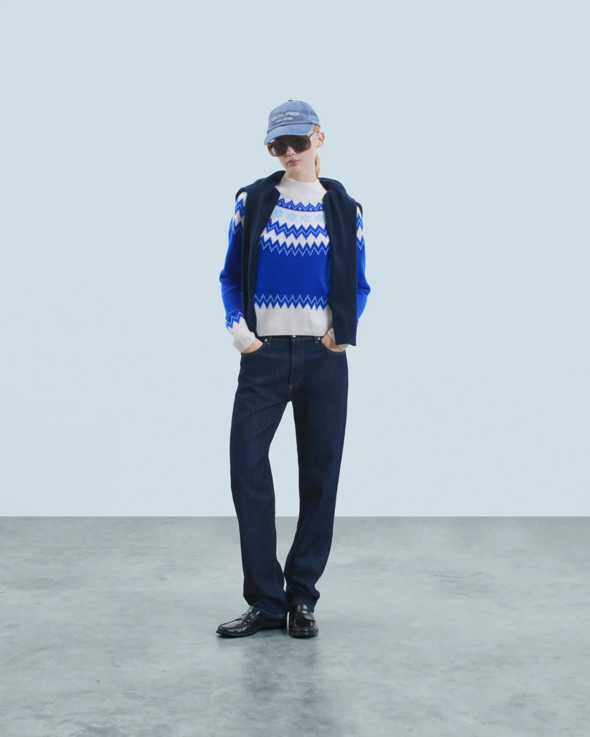 Ravviva il tuo look di stagione con questo maglione corto impreziosito da motivi norvegesi! Confezionato in cashmere, presenta un collo alto, maniche lunghe e bordi a contrasto. Adotta un look casual e mixalo con un pantalone dritto o una gonna morbida!