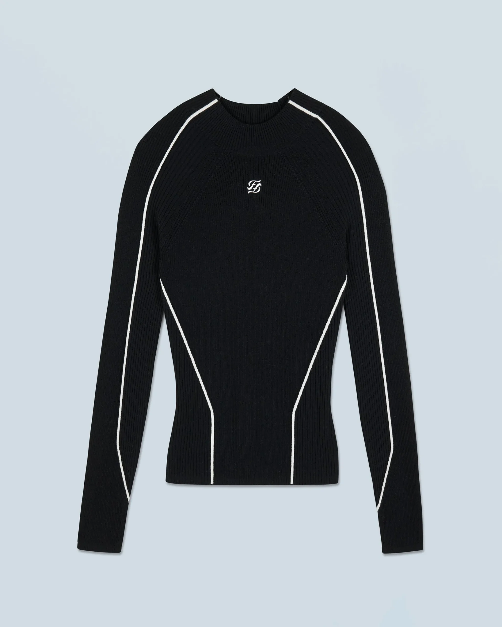 Questo maglione a coste, realizzato in lana merino certificata RWS (Responsible Wool Standard), presenta un collo alto e maniche lunghe. È impreziosito dal ricamo “FF” sul davanti e da bordini che creano un audace gioco di contrasti. Da indossare come una seconda pelle, puoi completare il tuo look di stagione con un paio di pantaloni casual o jeans strutturati!