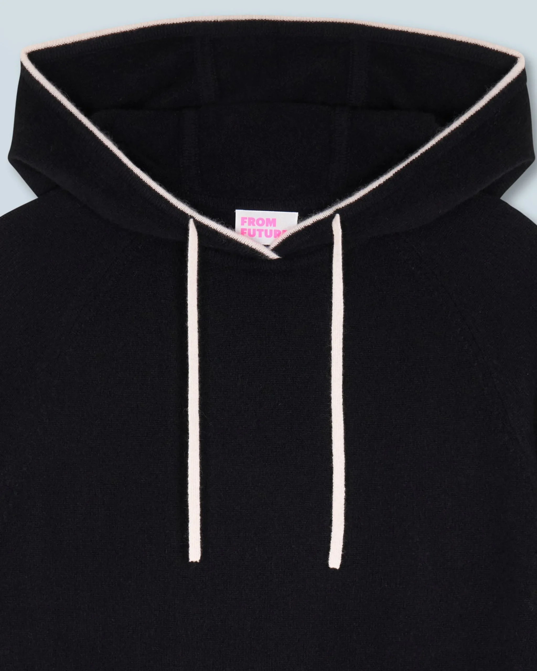 L’irrinunciabile felpa-maglione si reinventa per questa stagione con bordini a contrasto. Confezionata in cashmere, presenta un cappuccio con cordoncini, maniche lunghe e bordi a coste. Oversize e strutturata, puoi abbinarla a una t-shirt e un paio di jeans.