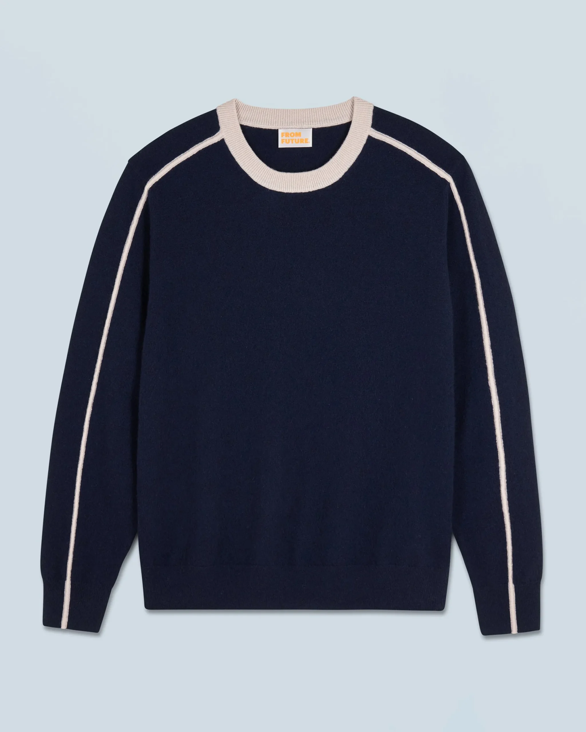Porta il tuo look a un livello superiore con questo maglione confezionato in cashmere 2 fili infinitamente morbido! Con uno scollo tondo e bordi a coste, presenta bordini lungo le maniche che creano un audace gioco di contrasti.