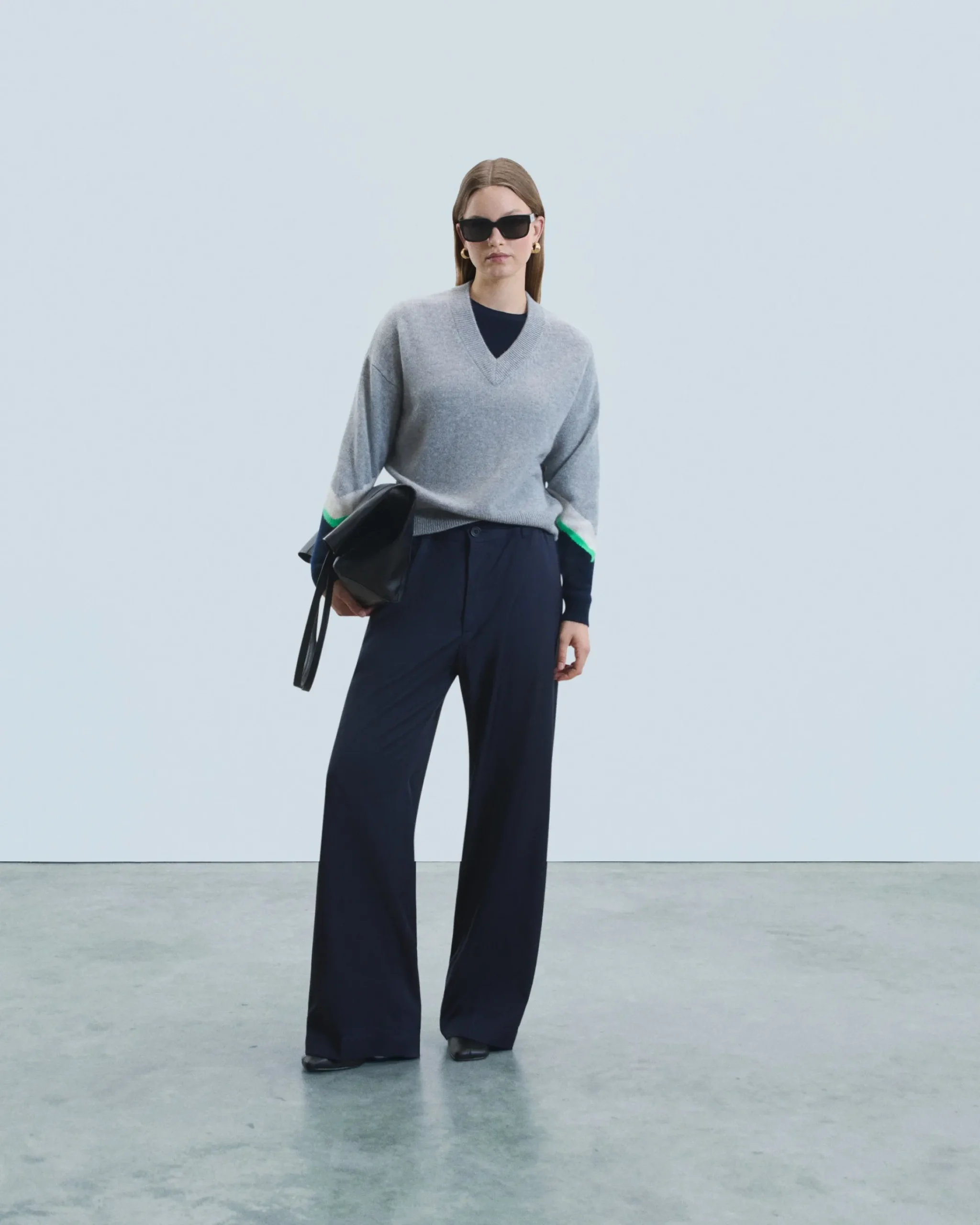 – Scollo a V e cuciture a contrasto