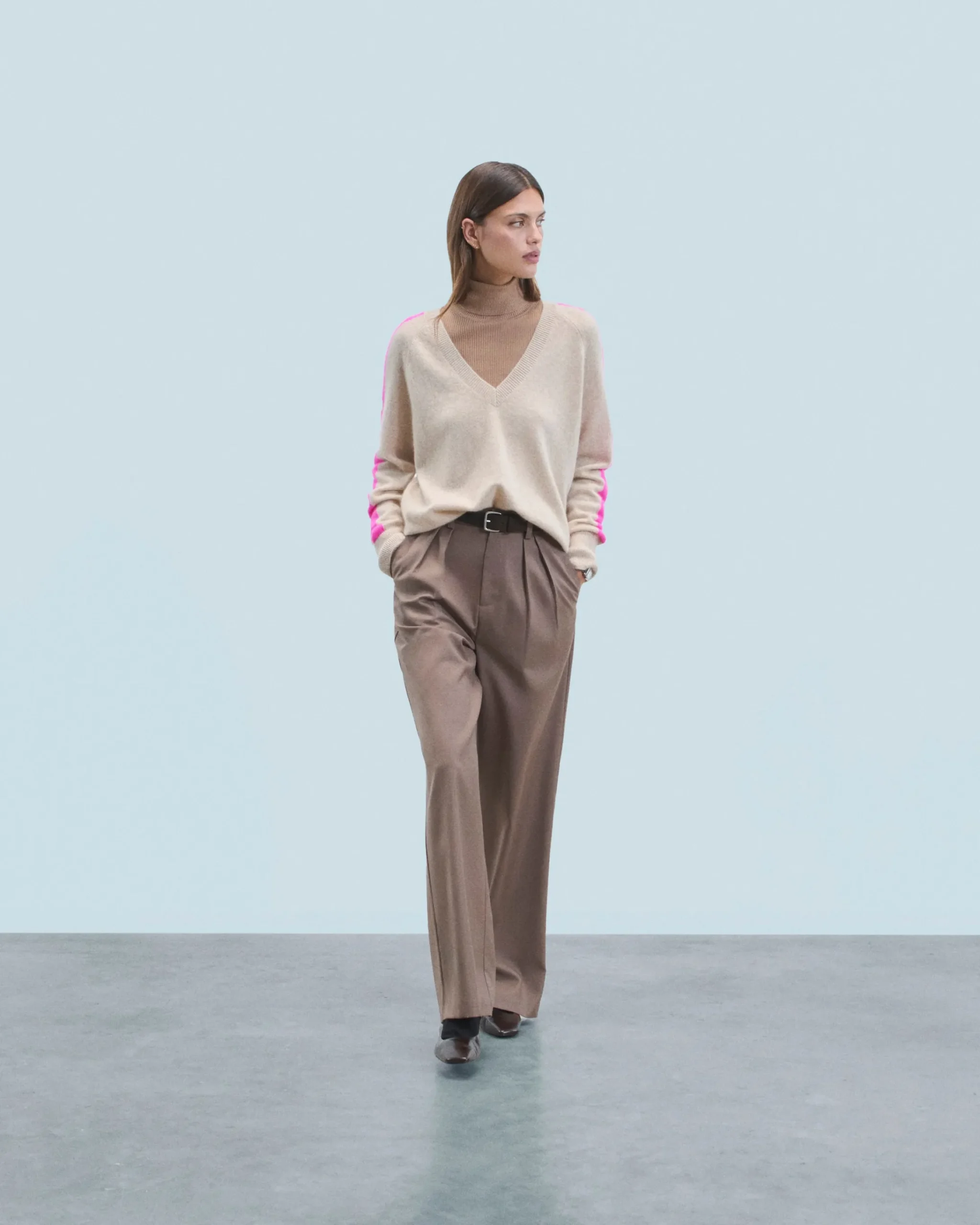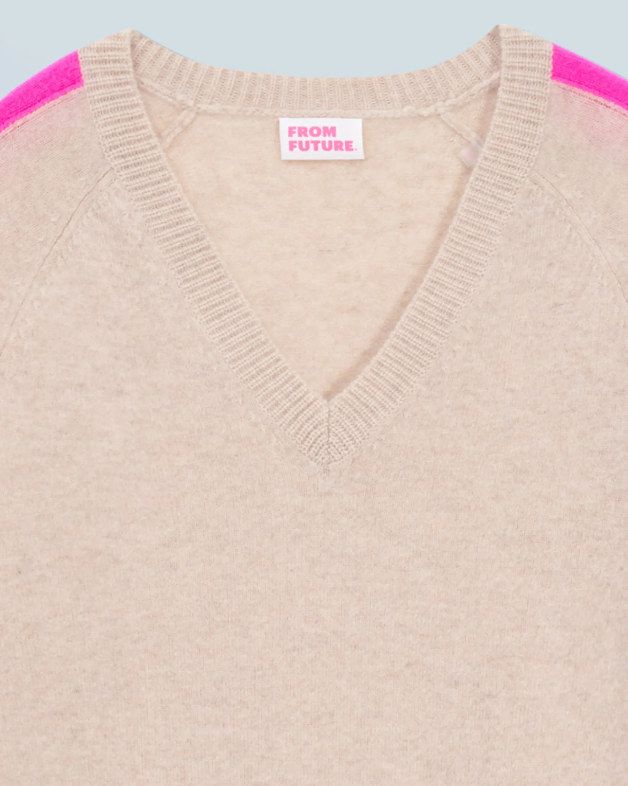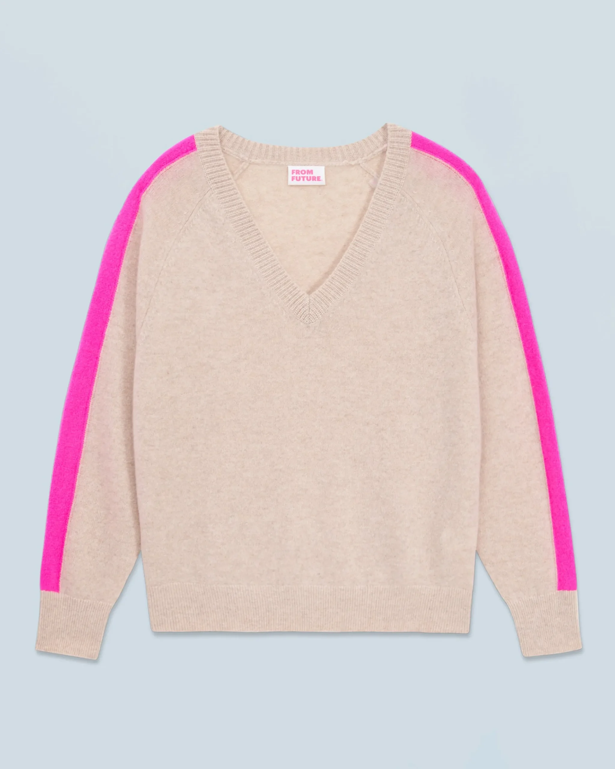Maglione Scollo a V Oversize Bande bicolori Leggero