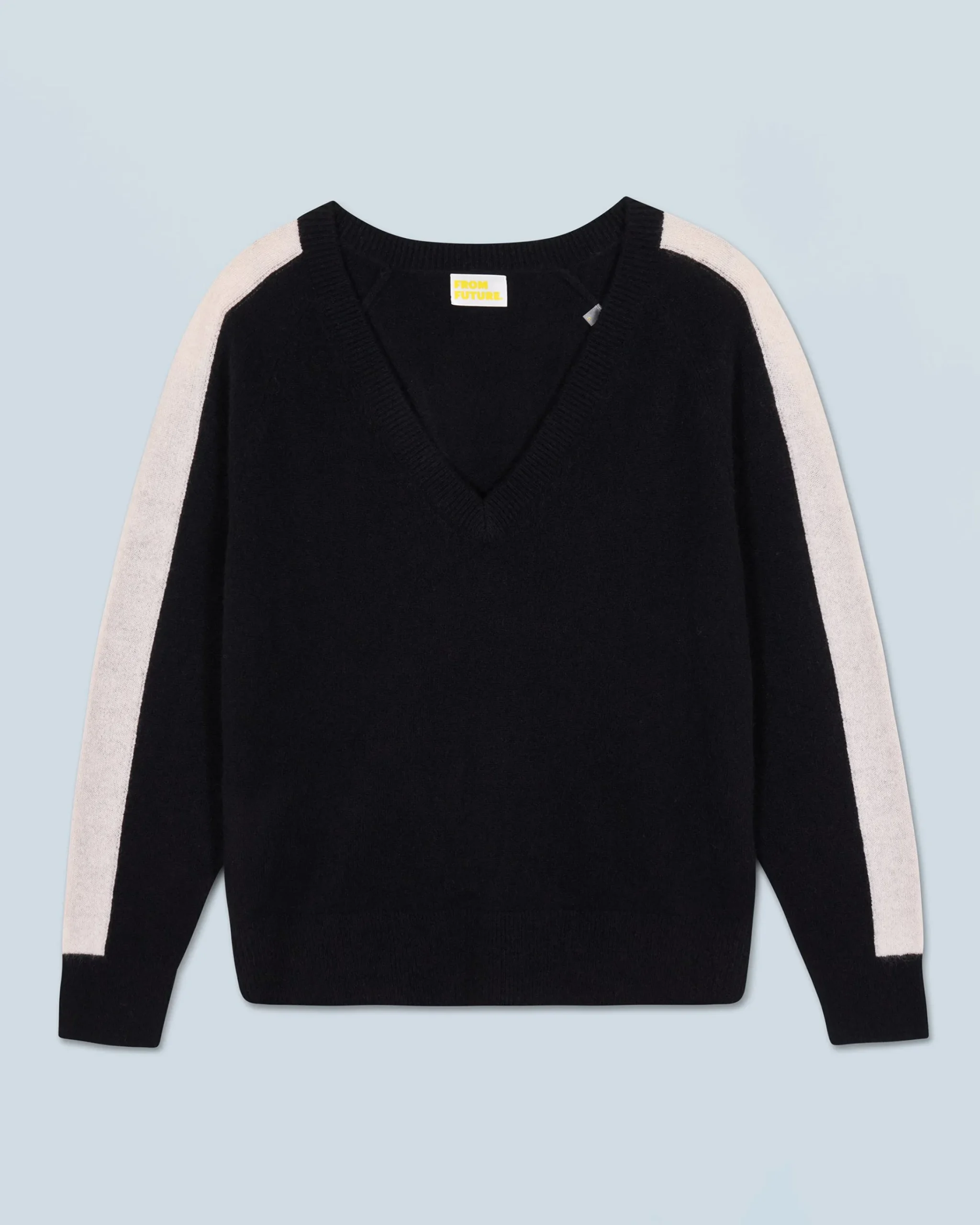 Una maglia in cashmere infinitamente morbida e leggera è protagonista di questo maglione lungo oversize. Con bordi a coste e uno scollo a V, presenta bande multicolori lungo le maniche per strutturare il tuo look con eleganza. Con colori vivaci, completa il tuo look con una gonna satinata o un paio di jeans casual!