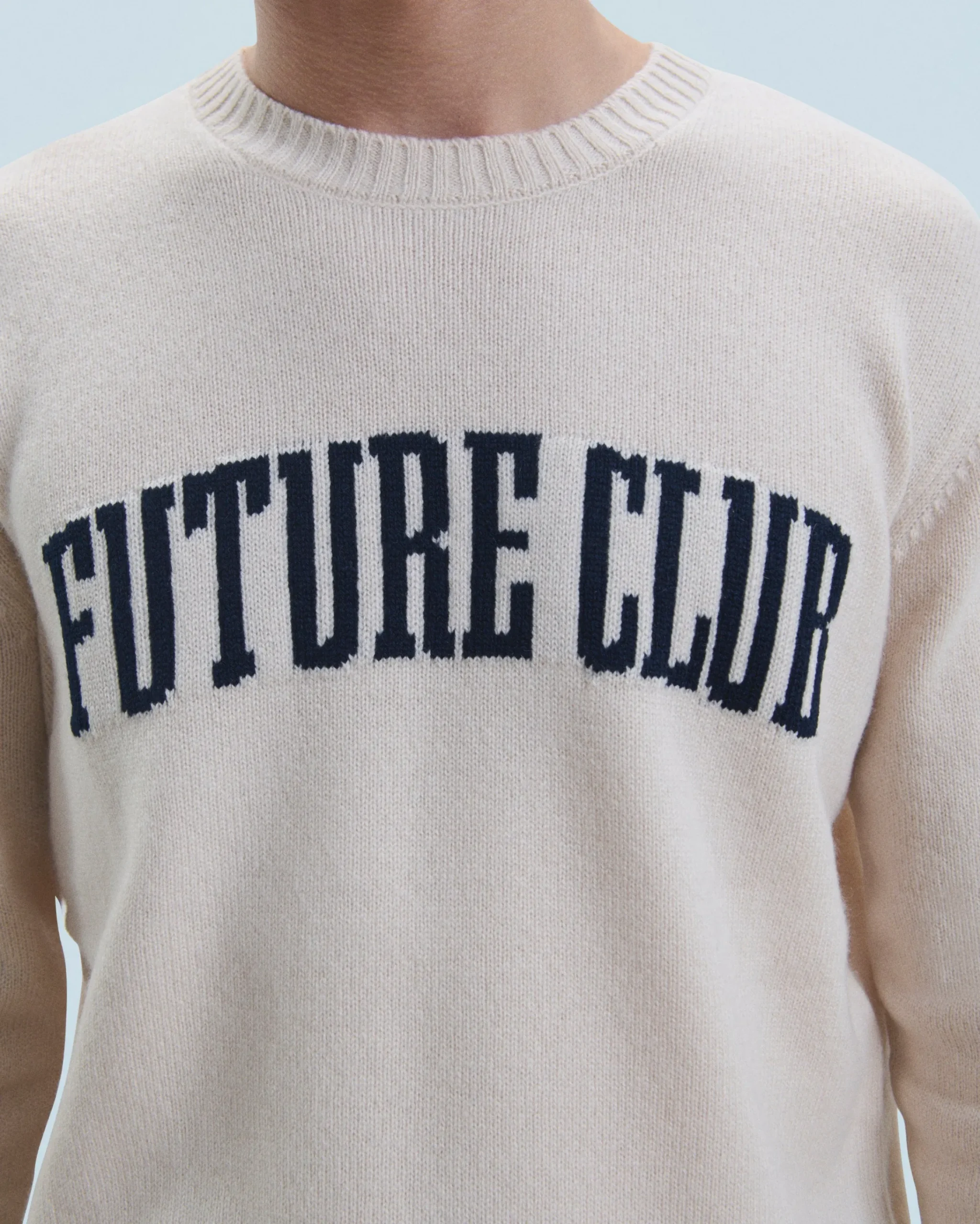 Entra nel Club con questo pullover oversize confezionato in cashmere 4 fili! Con scollo tondo e maniche lunghe, presenta la firma “Future Club” in jacquard a contrasto sul davanti. Facile da abbinare, questo capo essenziale del guardaroba From Future può essere indossato senza moderazione per completare i tuoi look.