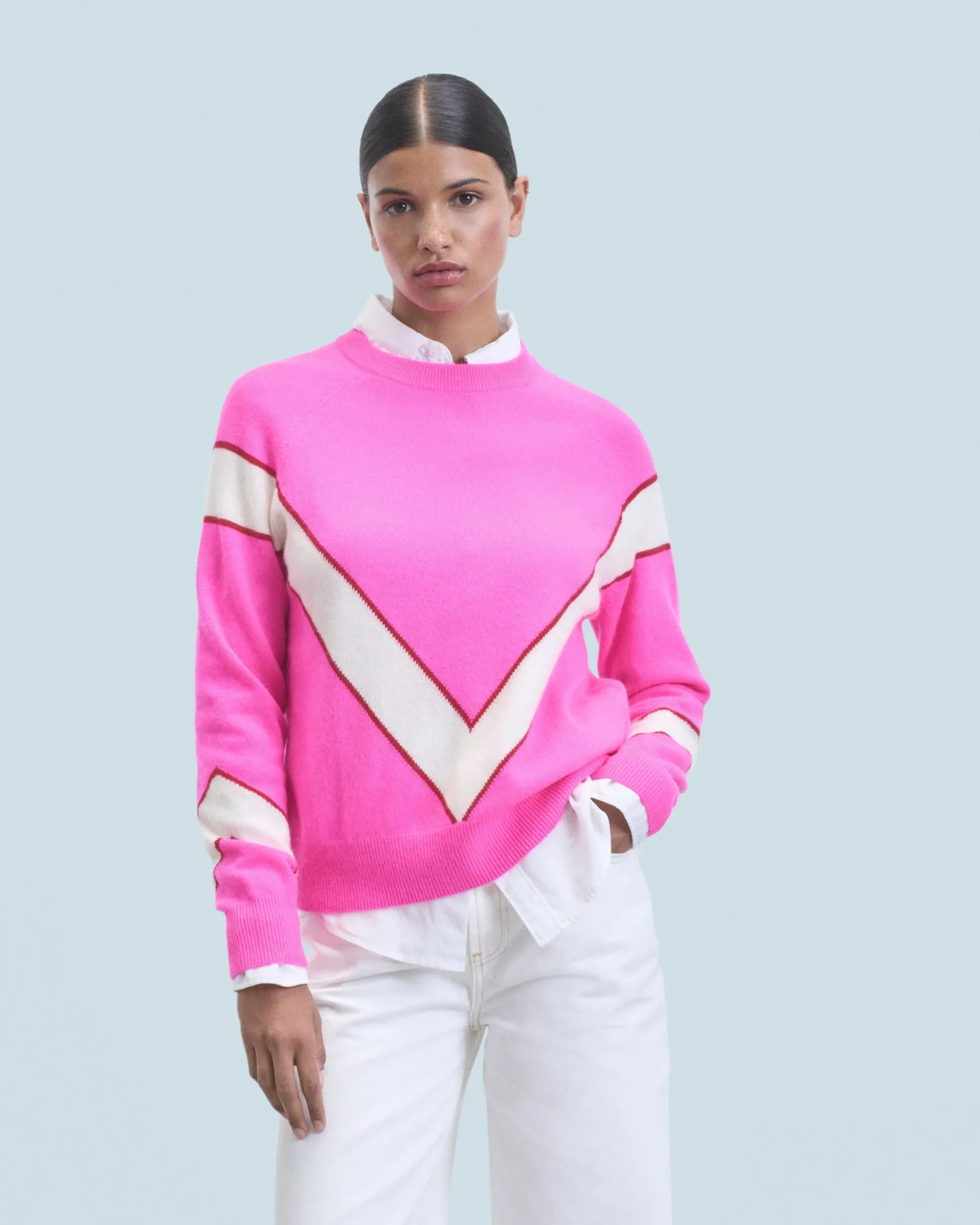 Arricchisci il tuo guardaroba con questo maglione in cashmere dai contrasti audaci. Dotato di un collo rotondo, maniche lunghe e bordi a coste, le bande bicolori strutturano la silhouette. Completa il tuo look stagionale abbinandolo a un abito fluido o a una gonna strutturata. – Maglione in cashmere certificato GCS® Donna – Bande a contrasto – Collo rotondo – Maniche lunghe – Bordi a coste – Vestibilità regular – Il Good Cashmere Standard® (GCS) è uno standard indipendente per un cashmere più sostenibile e responsabile. Mira a migliorare il benessere delle capre da cashmere, le condizioni di lavoro degli allevatori e a proteggere l’ambiente.- Cashmere 2 fili