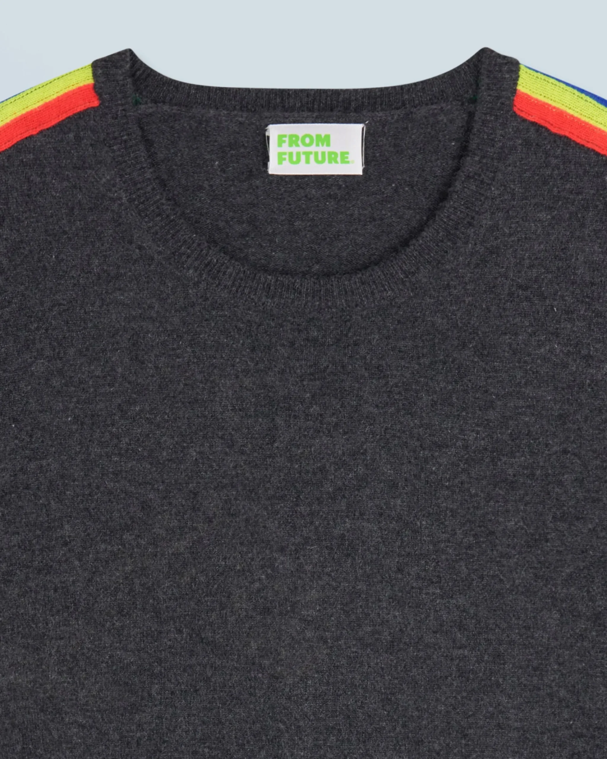 Questo maglione in cashmere 2 fili è caratterizzato da un morbido scollo tondo. Combinando comfort e morbidezza, presenta bande multicolore lungo le maniche, un dettaglio iconico dello stile From Future! Per un look ricco di audacia, abbinalo a un paio di jeans casual o joggers.