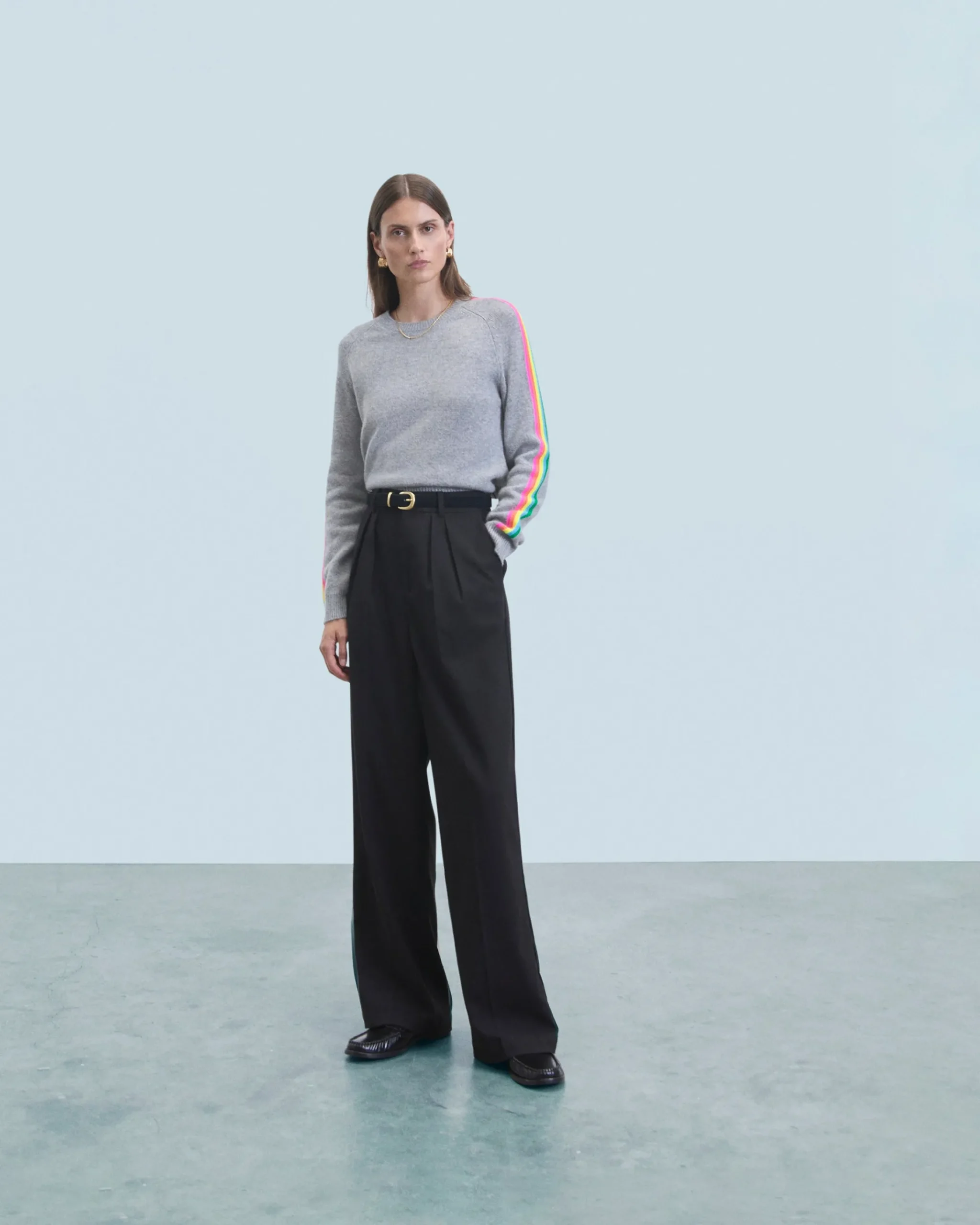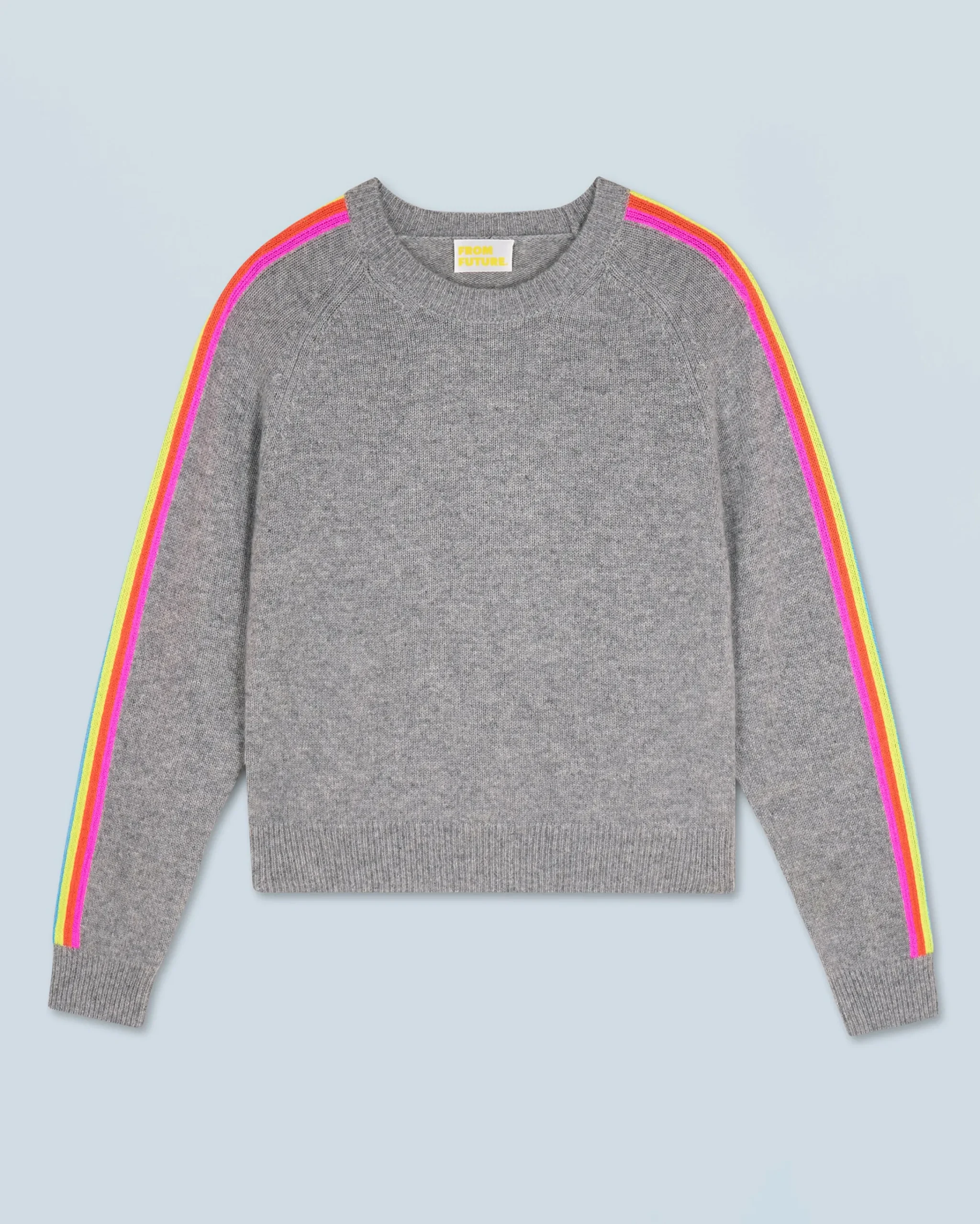 Realizzato in cashmere, questo maglione corto presenta uno scollo tondo e bordi a coste per riscaldare il tuo outfit con stile. Il dettaglio più audace? Le bande multicolori che corrono lungo le maniche, dettaglio iconico dello stile From Future. Casual ed elegante, si abbina facilmente a pantaloni a gamba larga o a una gonna strutturata.