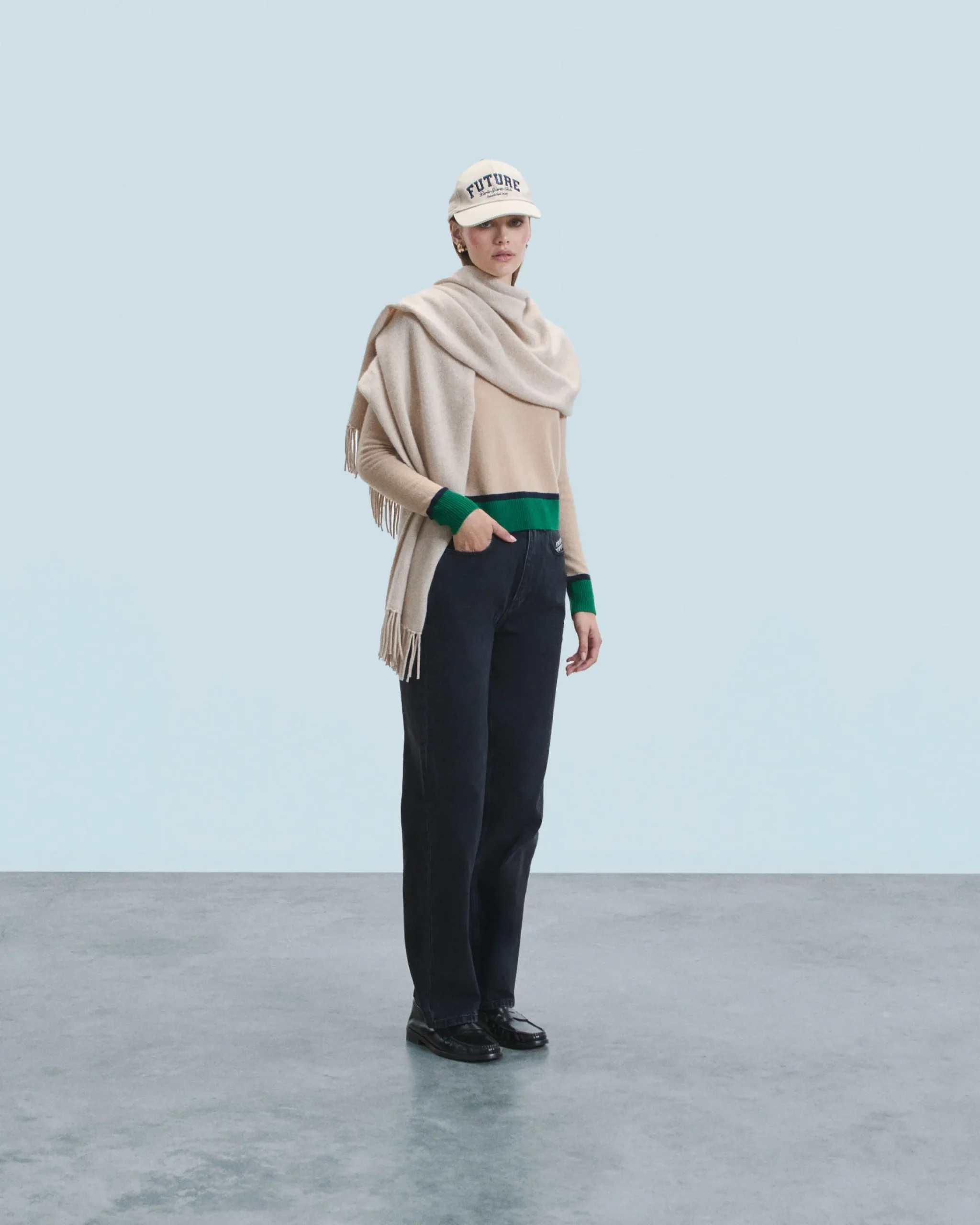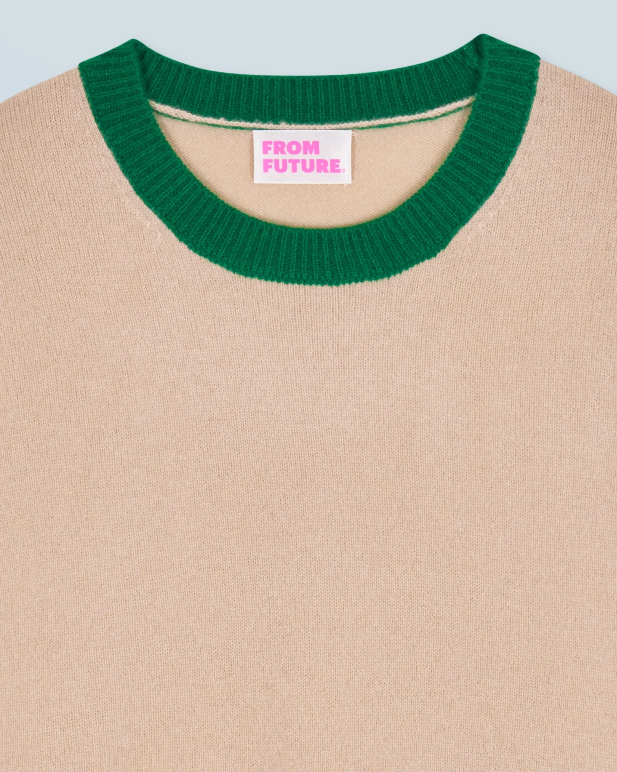 Impregnato di morbidezza e di leggerezza, questo maglione corto confezionato in cashmere presenta uno scollo tondo e maniche lunghe. I suoi bordi bicolore a contrasto strutturano il tuo look con eleganza. Componi un outfit casual mixandolo con un paio di jeans a gamba dritta o una gonna morbida!