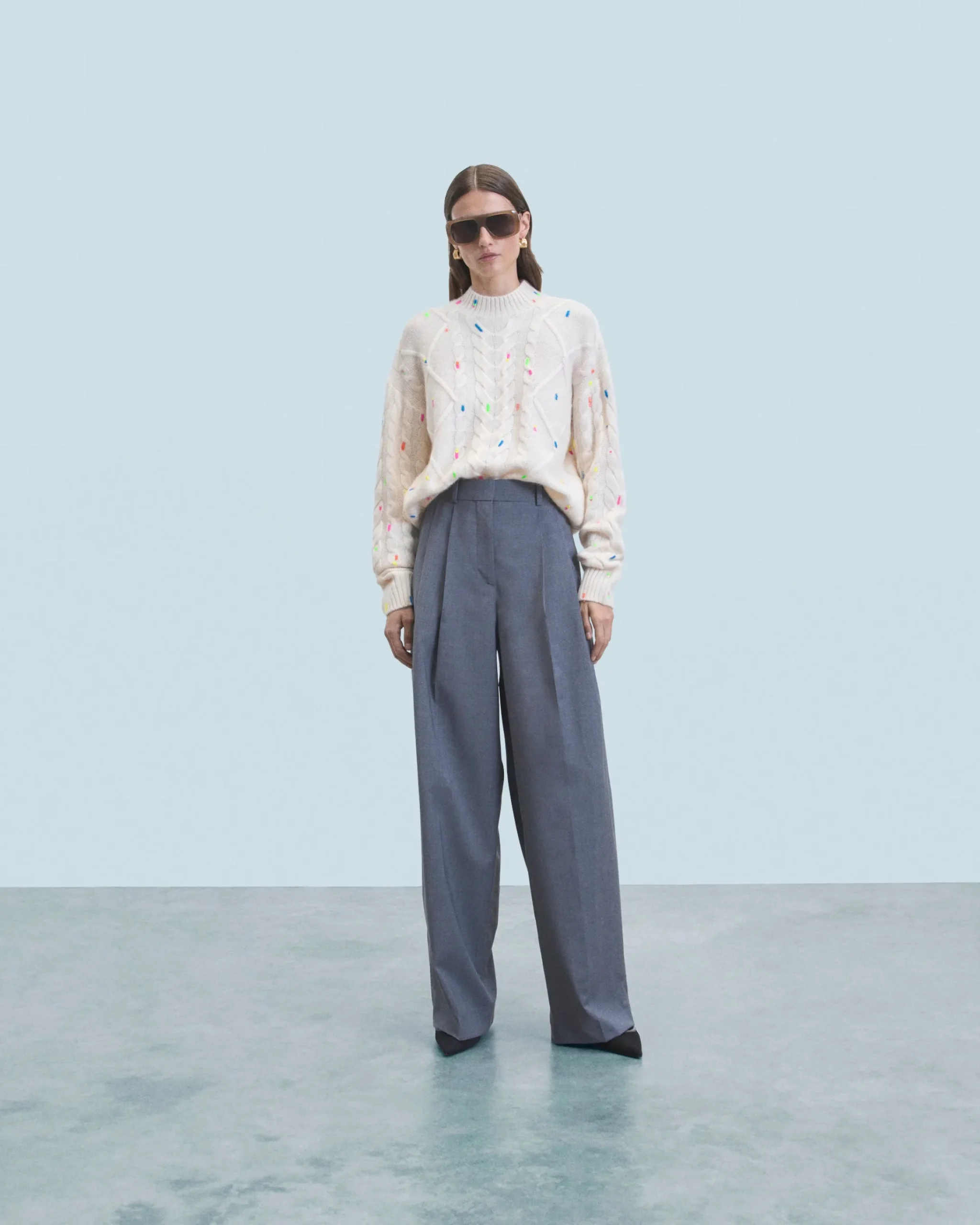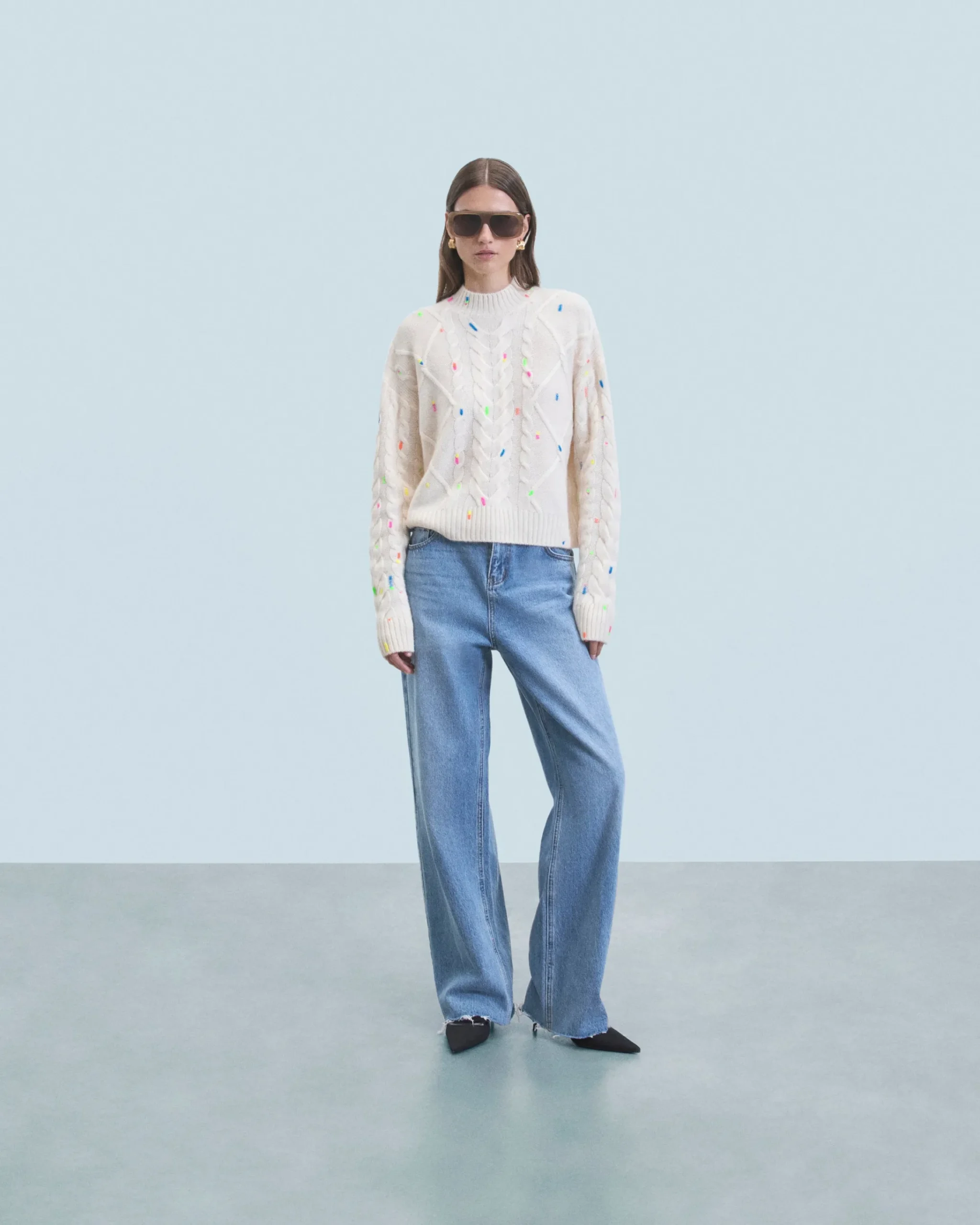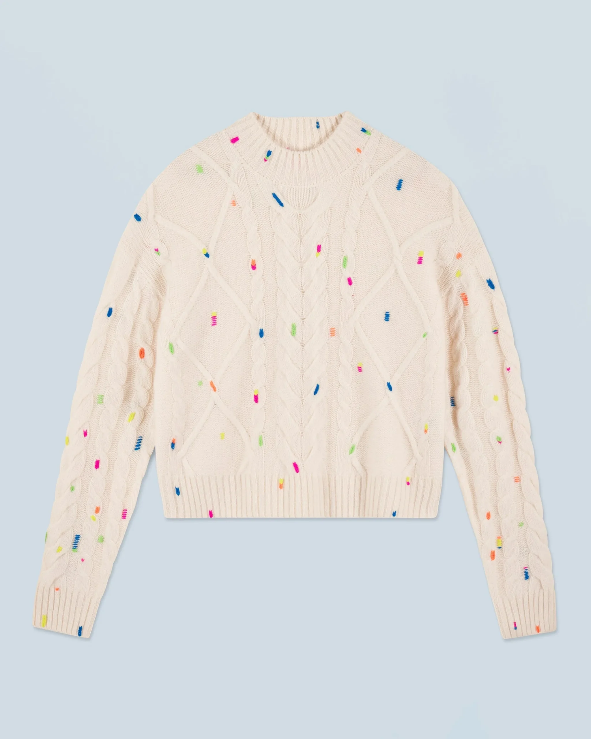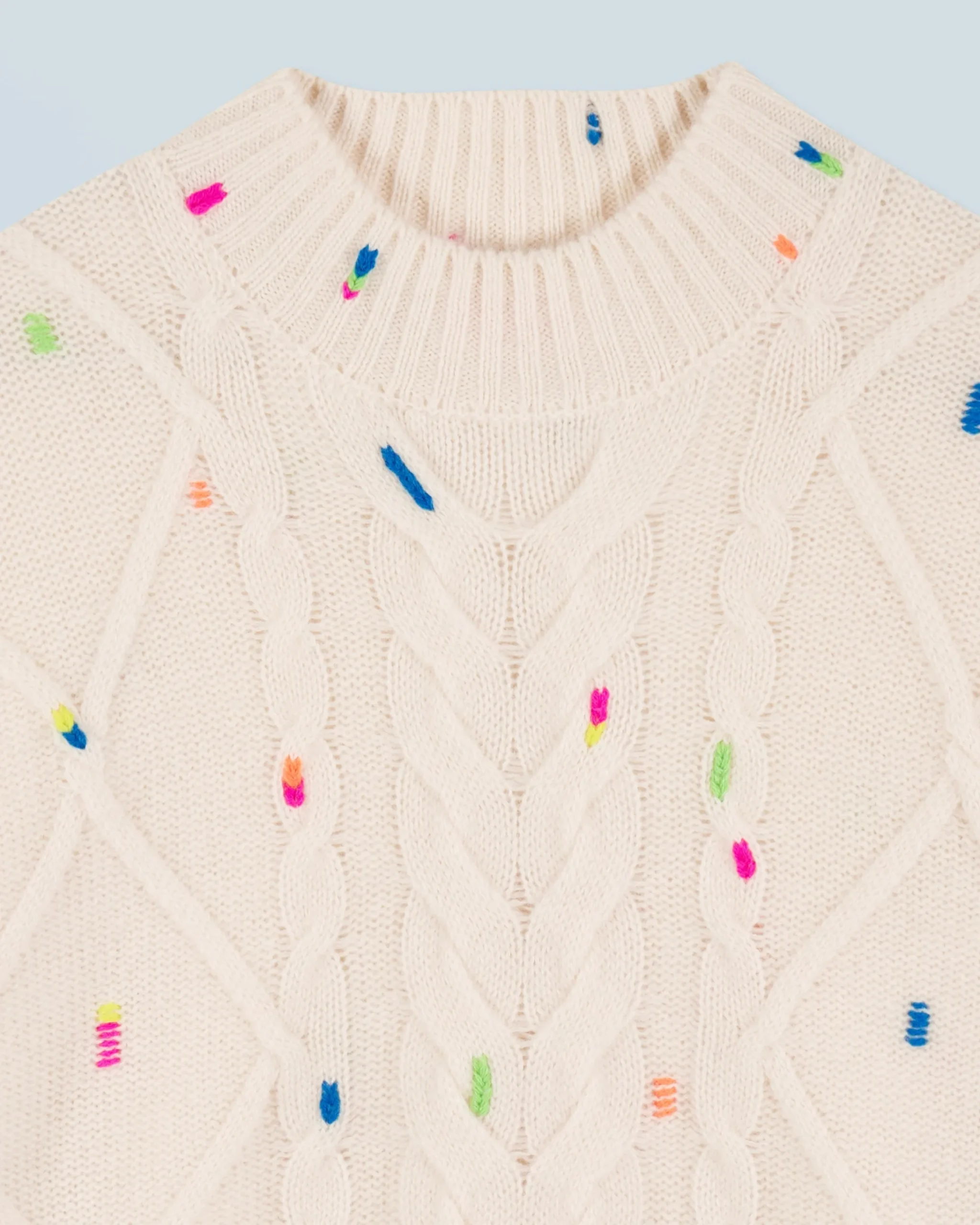 Confezionato in cashmere, questo maglione corto e oversize è caratterizzato da torciglioni e ricami multicolori realizzati a mano. Con un collo alto, maniche lunghe e bordi a coste, riscalderà il tuo look con un tocco audace!