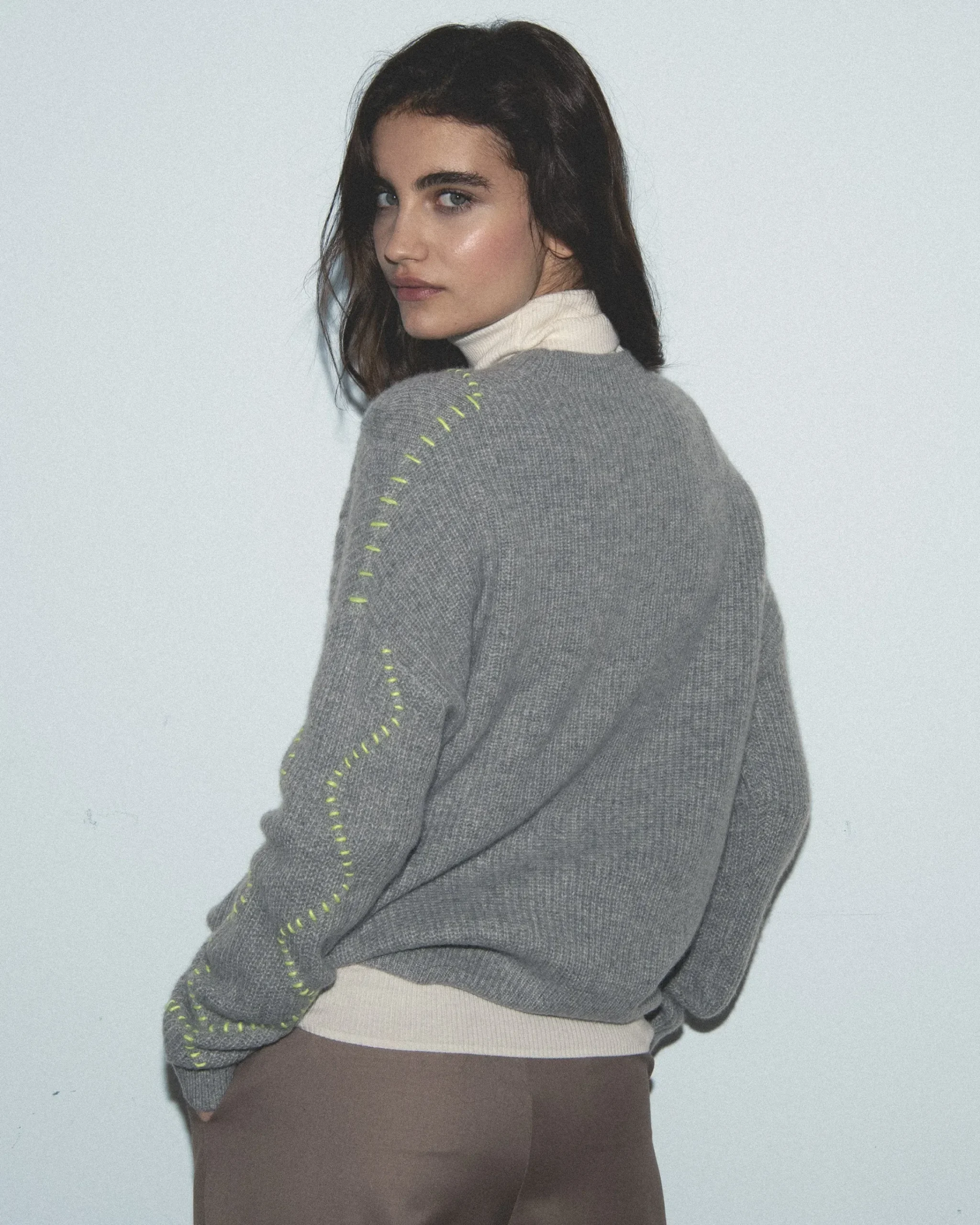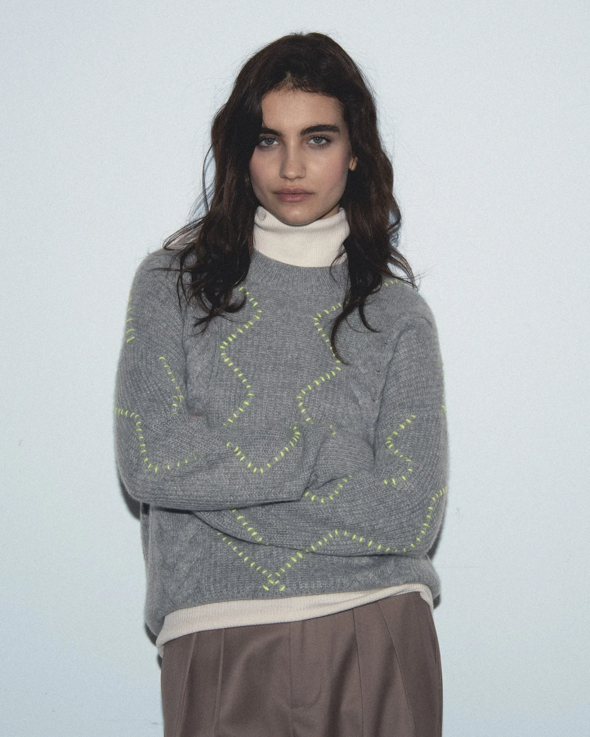 Questo maglione oversize in cashmere è caratterizzato da un gioco di intrecci. Con uno scollo tondo, maniche lunghe e bordi a coste, si afferma come un pezzo irrinunciabile della stagione. Incarnando tutta l’eleganza senza tempo, si abbina facilmente a una gonna morbida o a dei jeans a gamba larga.