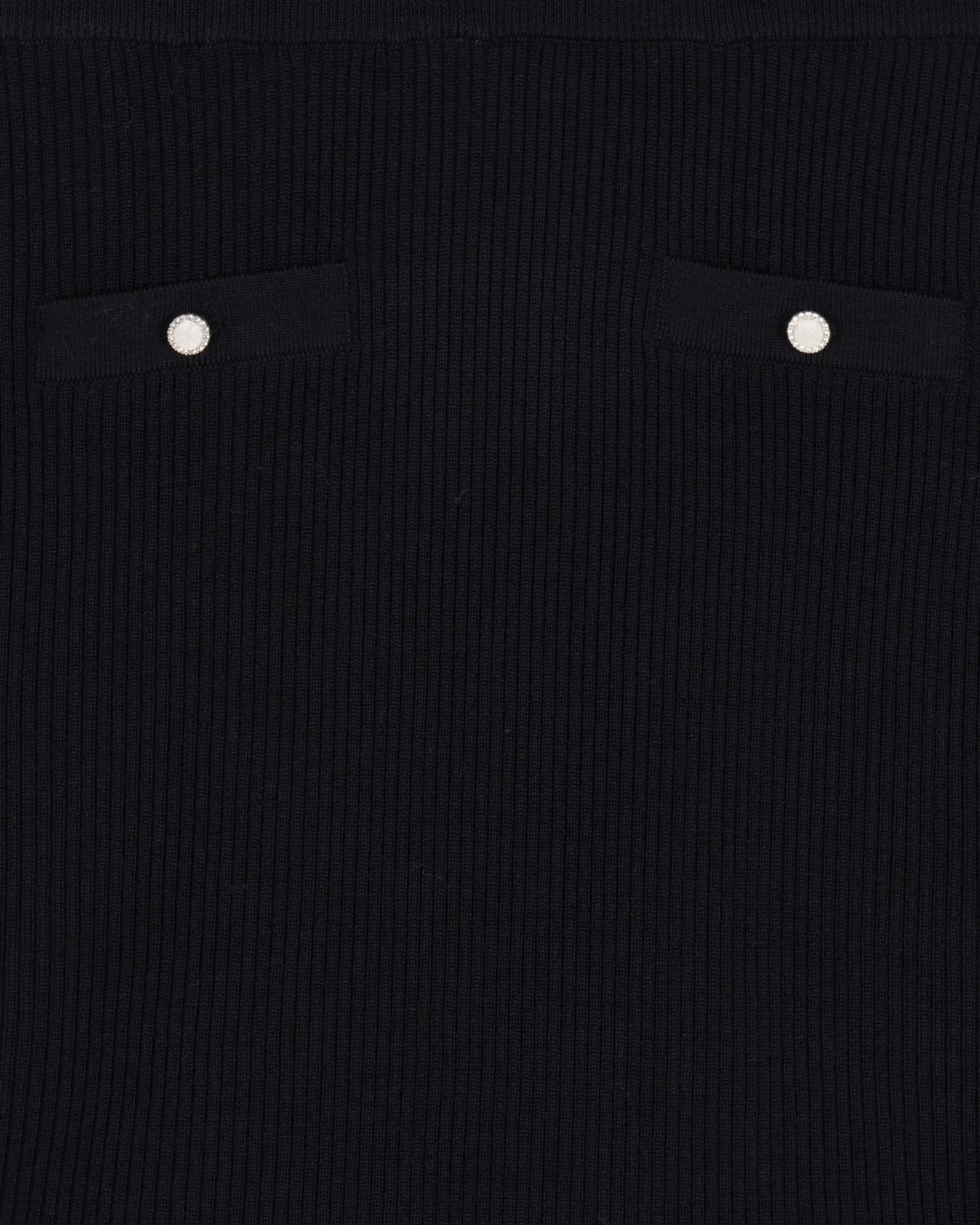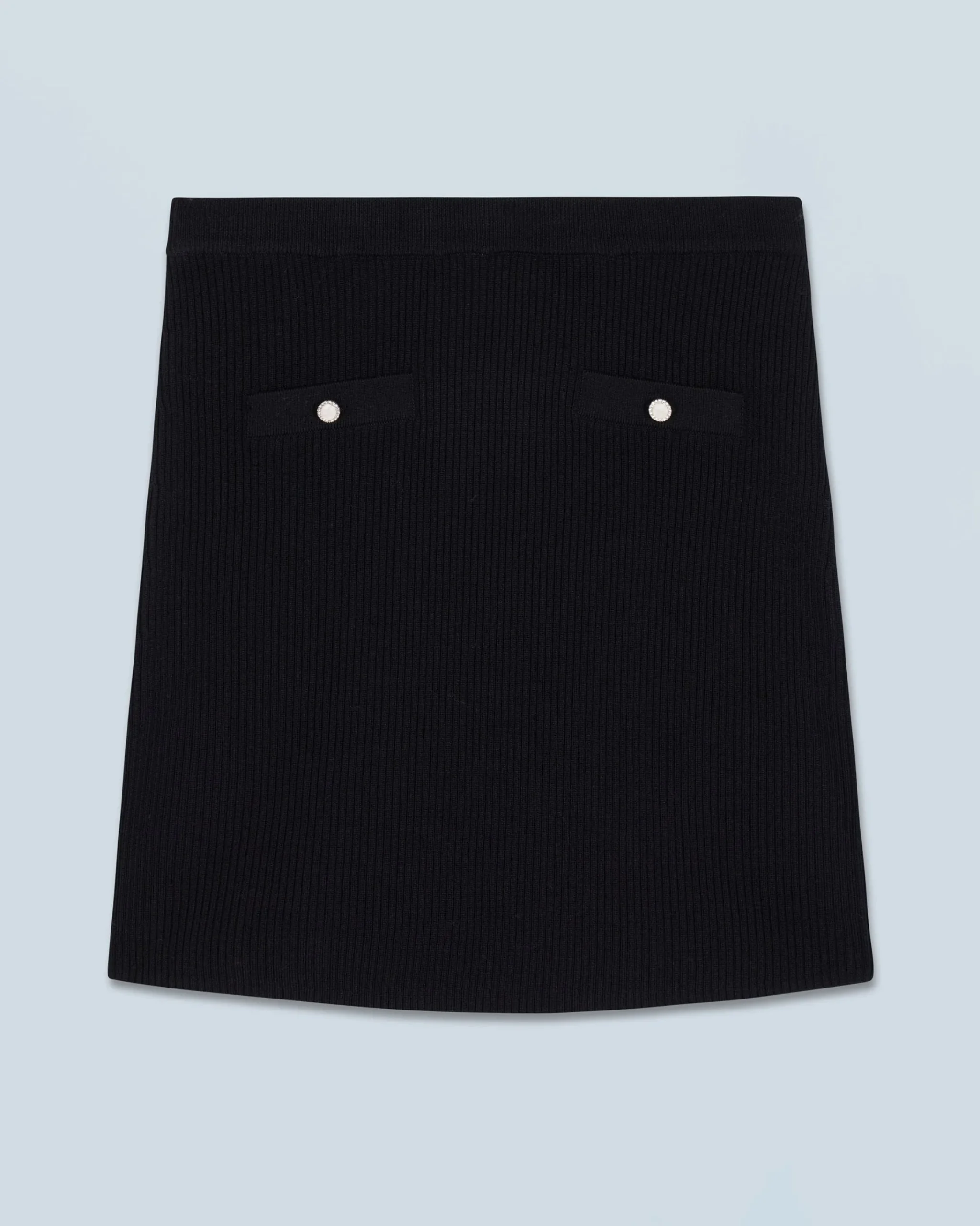 Pezzo immancabile nel guardaroba di ogni donna, questa minigonna presenta una maglia a coste realizzata in 100% lana merino certificata RWS (Responsible Wool Standard). Elasticizzata in vita, crea un look aderente e strutturato con due finte tasche applicate ornate da bottoni fantasia. Completa il tuo outfit con una camicia strutturata o maglione largo!