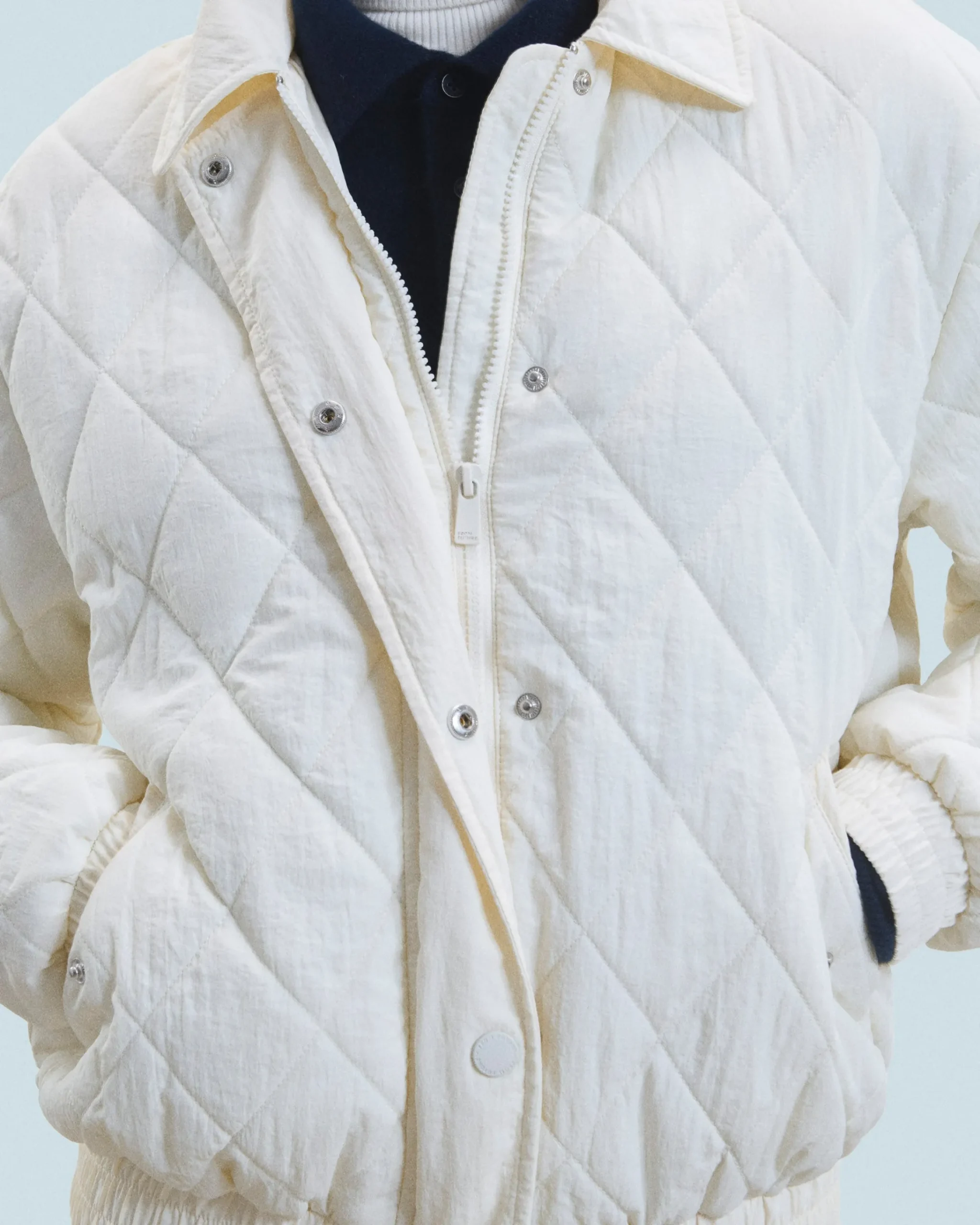 L’irrinunciabile giacca bomber si reinventa questa stagione in versione trapuntata. Con un collo a camicia, una chiusura con bottoni e due tasche con patta, presenta l’iconica firma “From Future” dietro che ti invita a entrare nel Club.