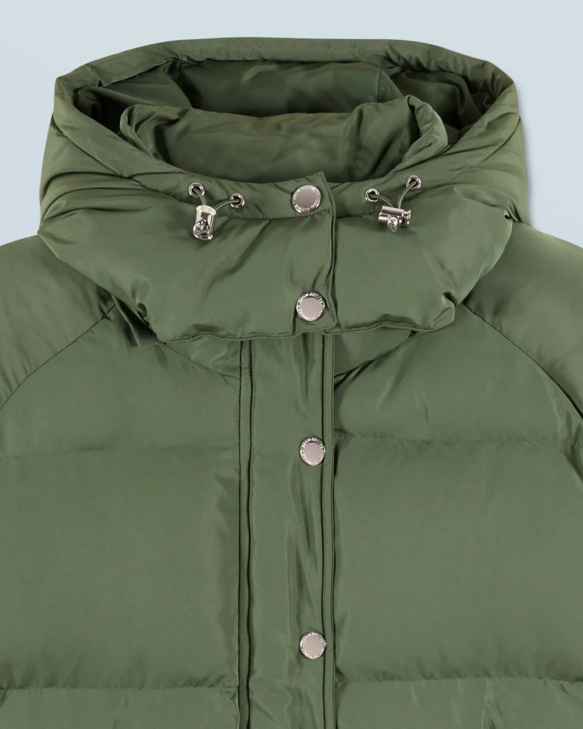 Pezzo irrinunciabile del guardaroba, questo piumino midi trapuntato ti avvolgerà nel calore e nella morbidezza per tutta la stagione. Ideale per affrontare le giornate più fresche, presenta un collo alto, un cappuccio regolabile, una chiusura a zip con bottoni a pressione e due tasche.