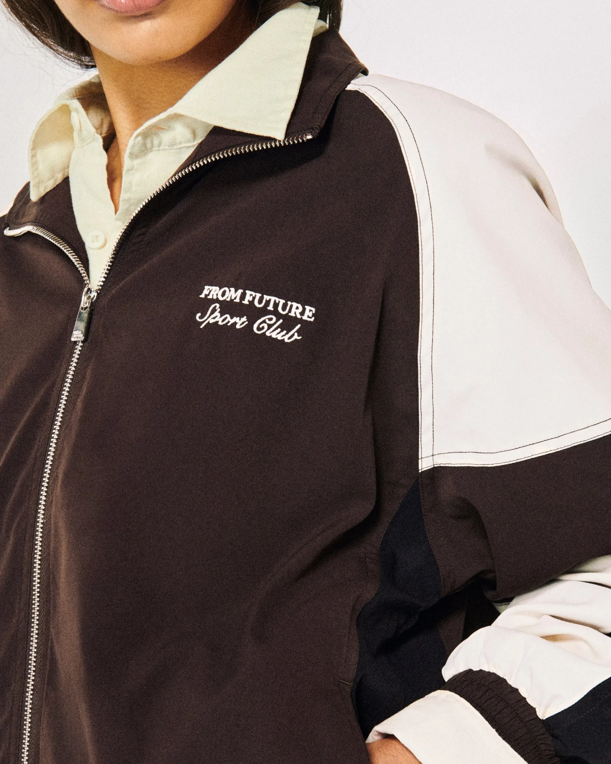 Un gioco di contrasti è protagonista di questa giacca teddy con bande tricolori. Con una chiusura a zip, maniche lunghe e bordi stretti, la scritta From Future sul petto ti invita a entrare nel Club! Elegante e casual allo stesso tempo, puoi completare il tuo look futurista con una maglia soffice e un paio di pantaloni larghi.