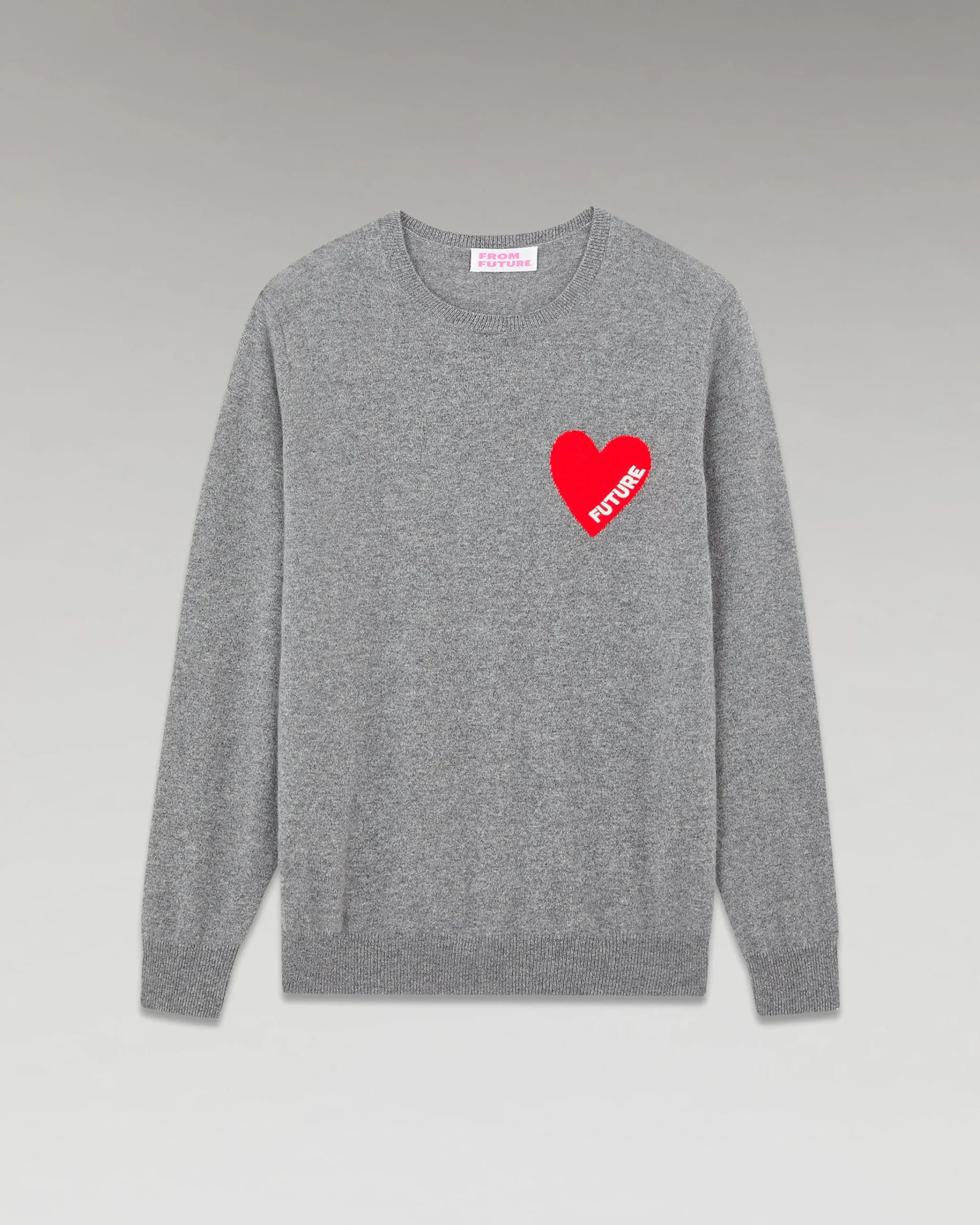 Girocollo con maniche lunghe e bordi a coste, questo pull in cashmere infinitamente morbido presenta il cuore “FUTURE” ricamato sul petto. Unitevi al Club con questo capo essenziale del guardaroba From Future!