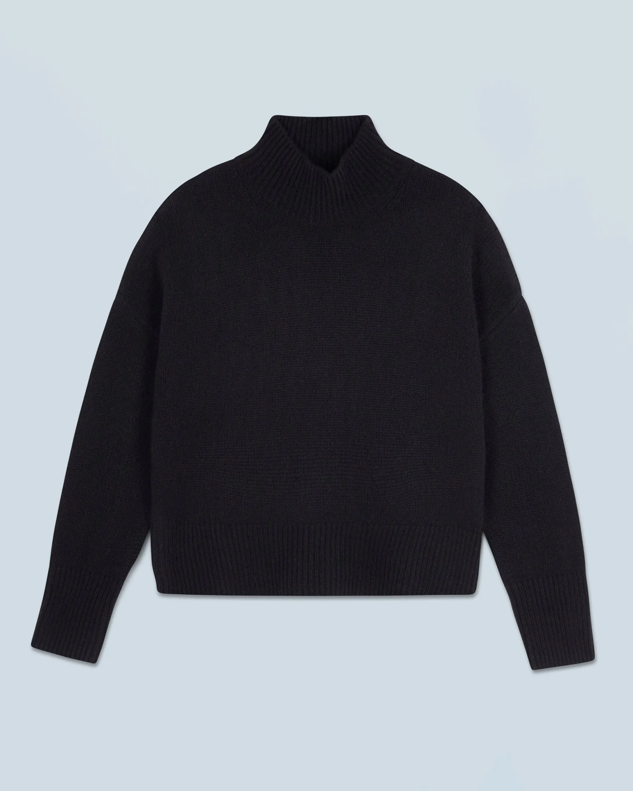 Confezionato in cashmere 6 fili, questo maglione oversize ti avvolge di morbidezza e calore. Con collo alto, maniche lunghe e bordi a coste, conferisce al tuo outfit uno stile deciso con semplicità. Adotta un look casual e mixalo con un pantalone dritto o una gonna morbida!