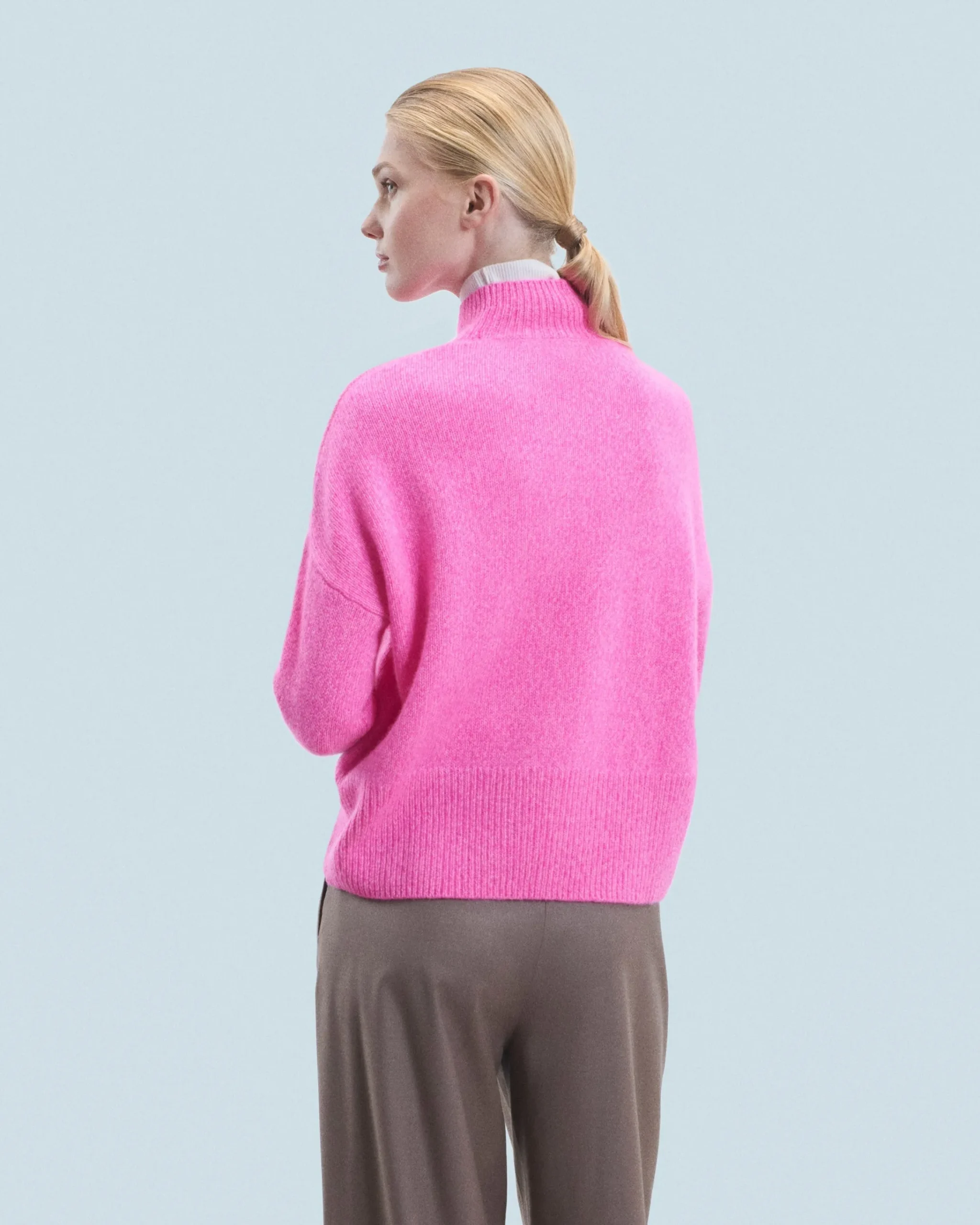 Confezionato in cashmere 6 fili, questo maglione oversize ti avvolge di morbidezza e calore. Con collo alto, maniche lunghe e bordi a coste, conferisce al tuo outfit uno stile deciso con semplicità. Adotta un look casual e mixalo con un pantalone dritto o una gonna morbida!