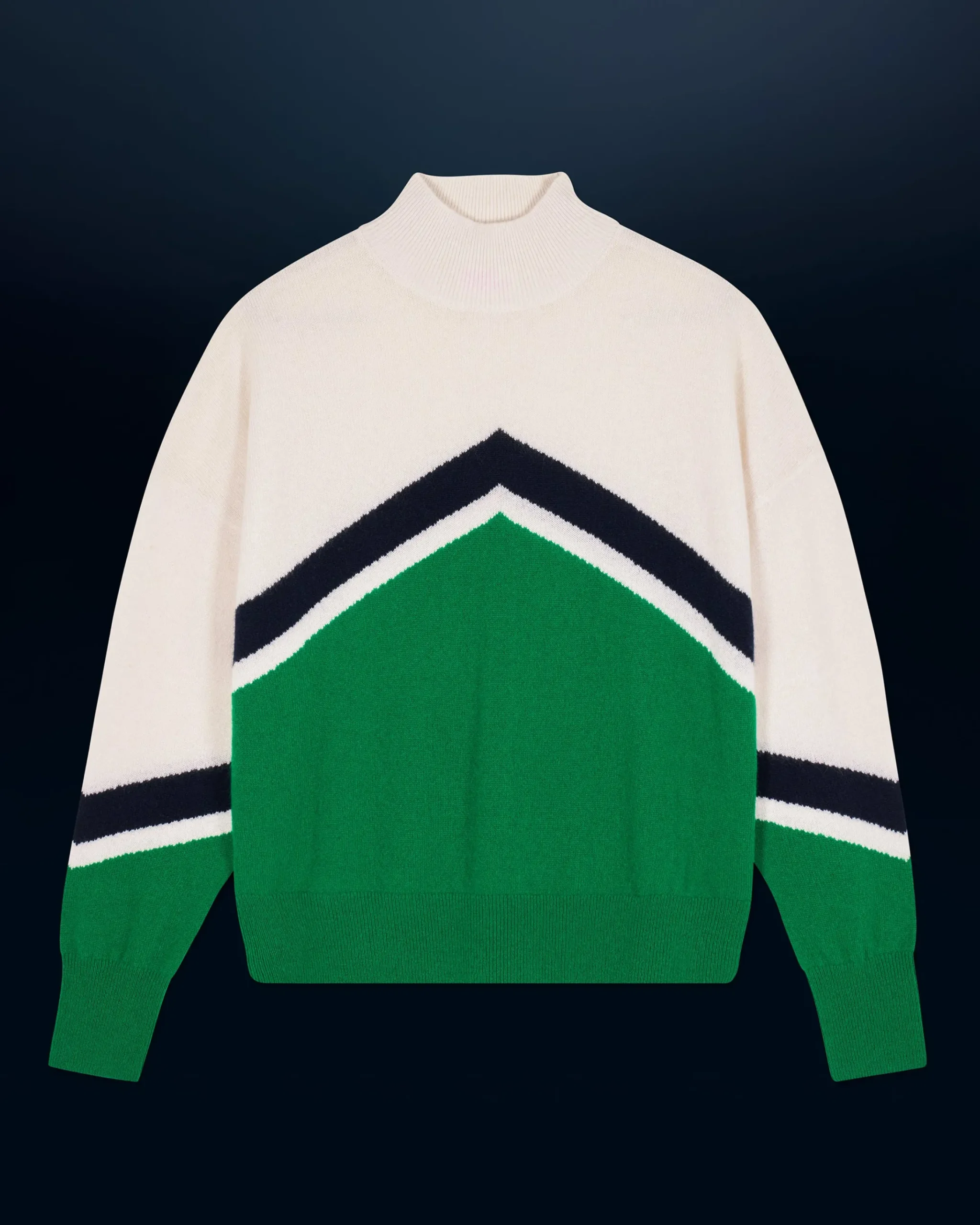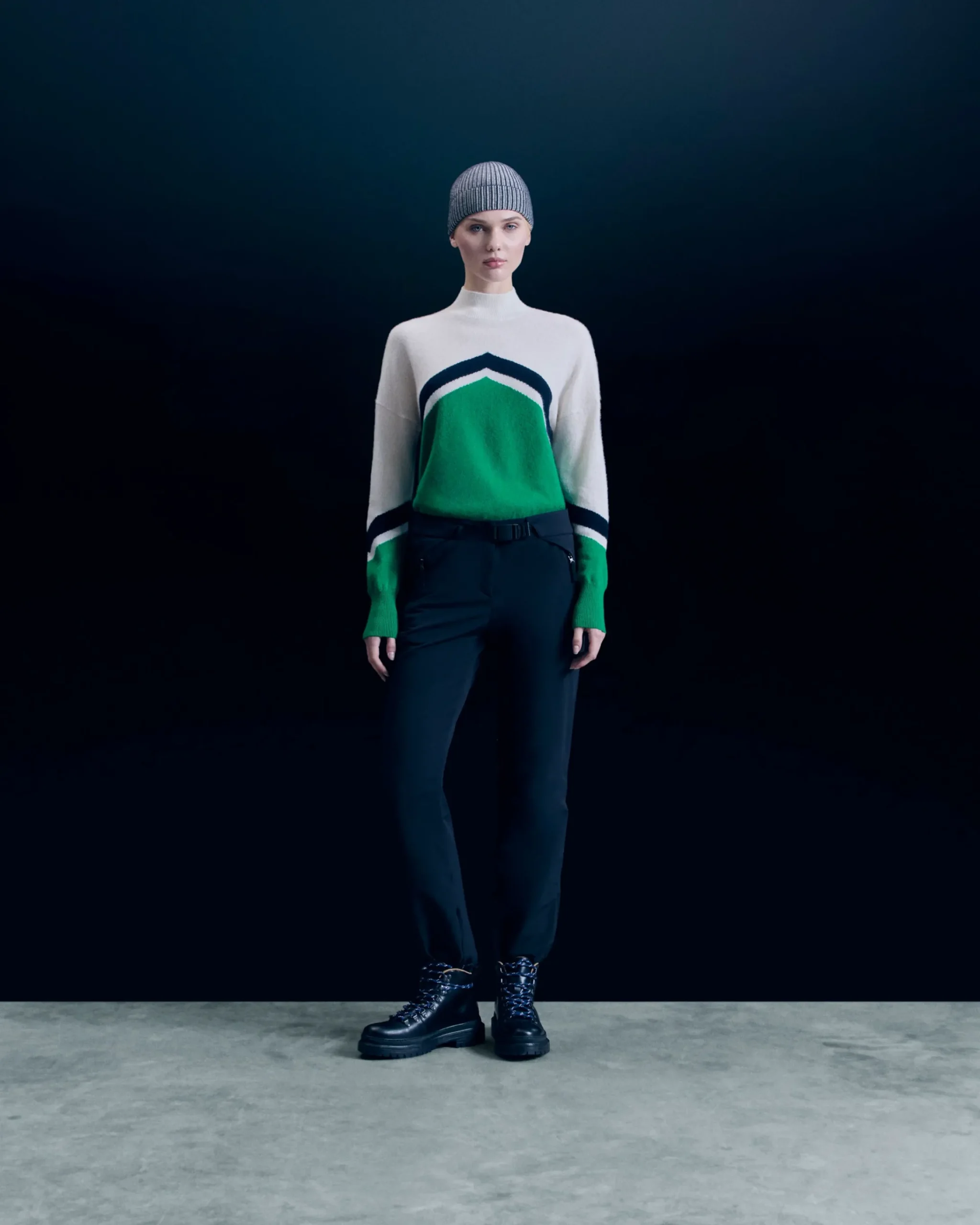 Realizzato in cashmere, questo maglione audace ti trasporta in vetta. Con un cappuccio con collo alto, maniche lunghe e bordi a coste, presenta la scritta ‘Ski’ sul petto e bande tricolori. Per un look chic e casual, abbinalo ad un paio di jeans a gamba larga o strutturati!