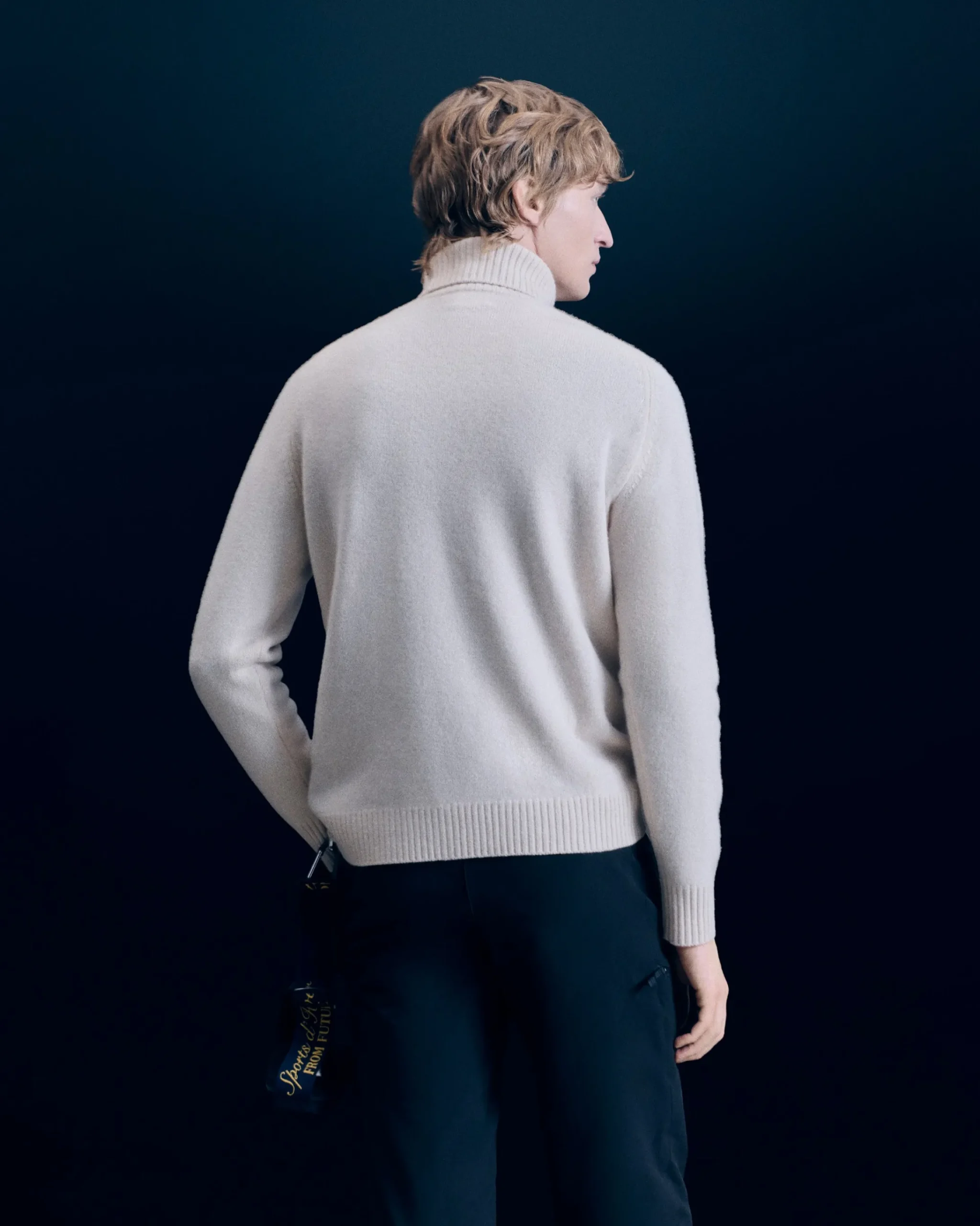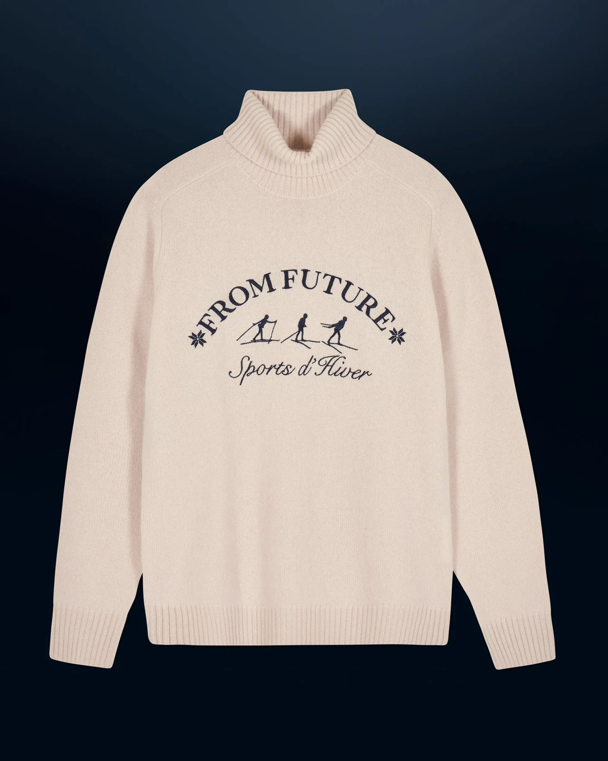 Un vero shuss verso un inverno stiloso con questo maglione in cashmere infinitamente morbido. Dotato di collo alto, maniche lunghe e bordi a coste, rivela un motivo Sci di fondo firmato “From Future Sports d’Hiver” sul davanti. Per la sua eleganza casual, si abbina facilmente a una t-shirt e un paio di pantaloni ampi.