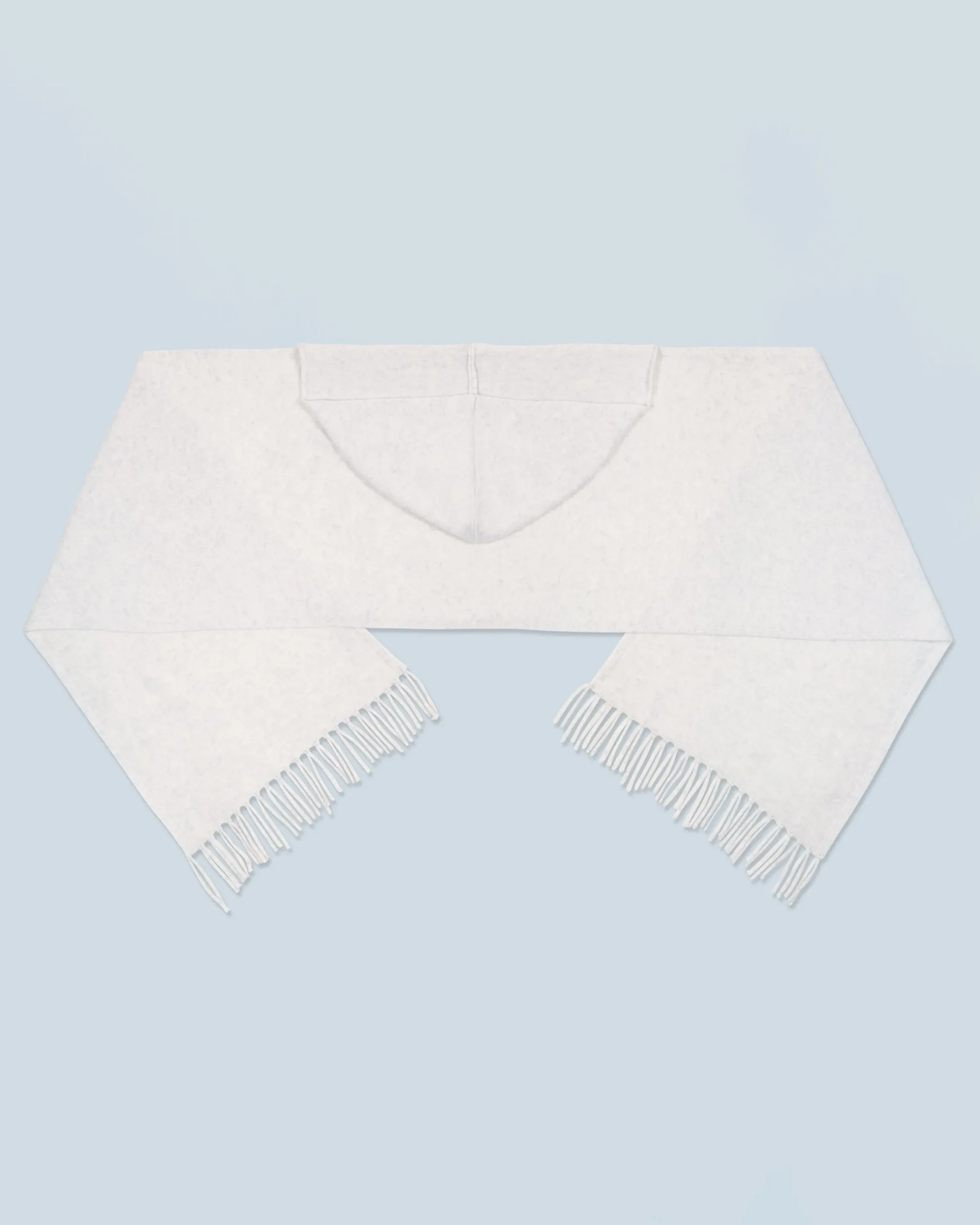 La sciarpa essenziale viene reinventata questa stagione con un tocco di audacia. Realizzato in cashmere, è dotato di cappuccio e bordi sfrangiati per riscaldarti con stile.