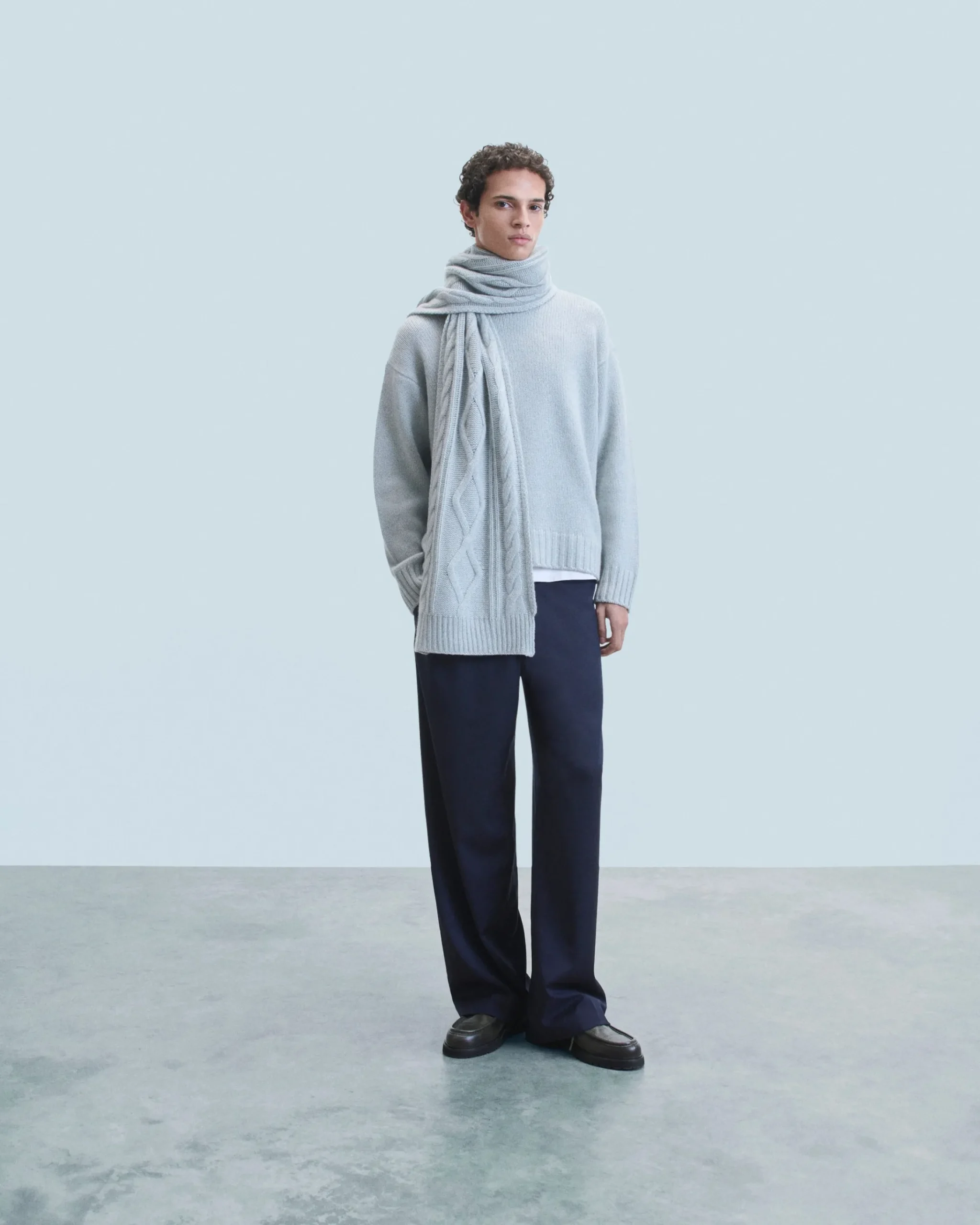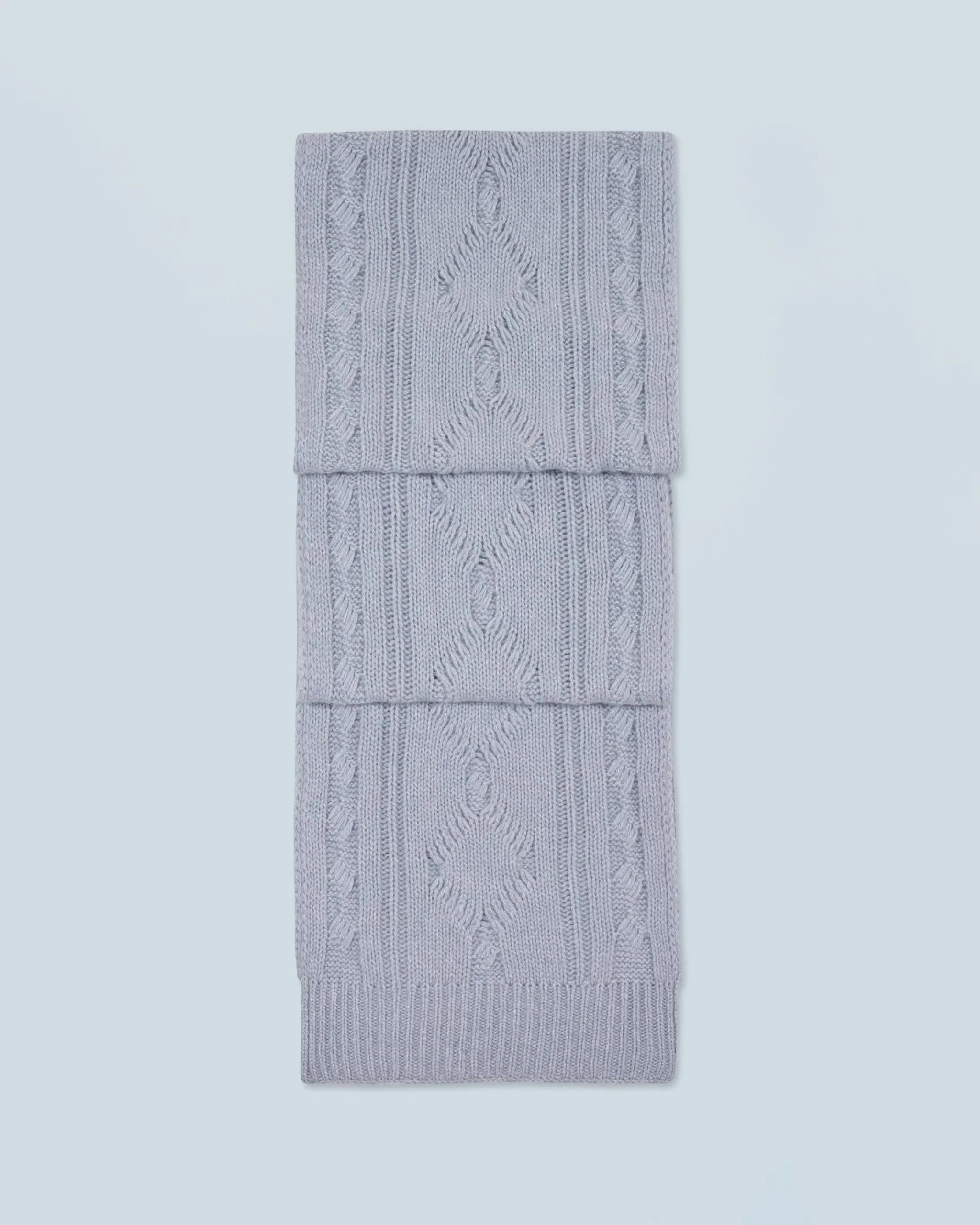 Avvolgiti dolcemente in questa sciarpa in cashmere, decorata con un gioco di trecce e bordi a costine. Un pezzo essenziale, apporta un tocco di eleganza alla tua silhouette.