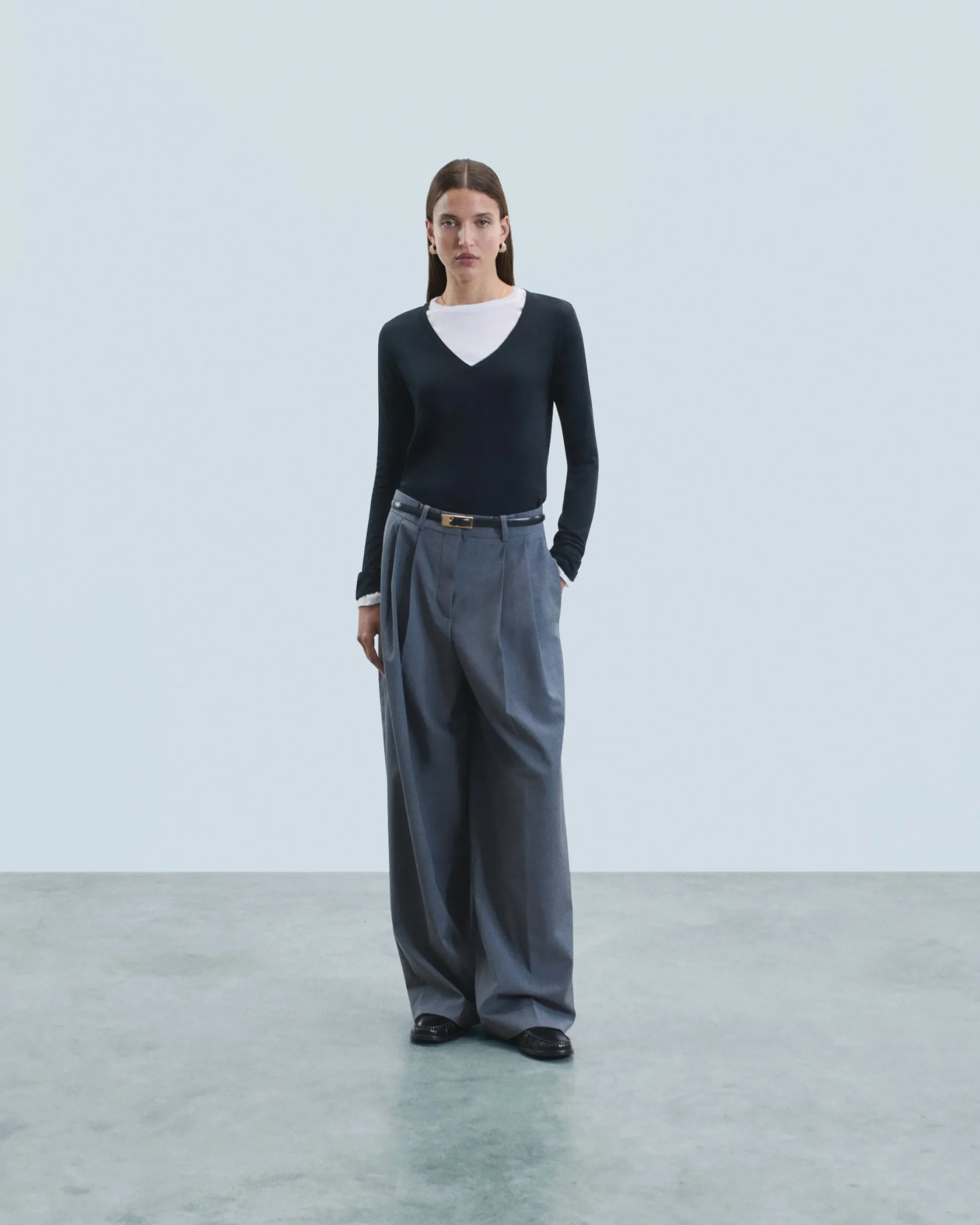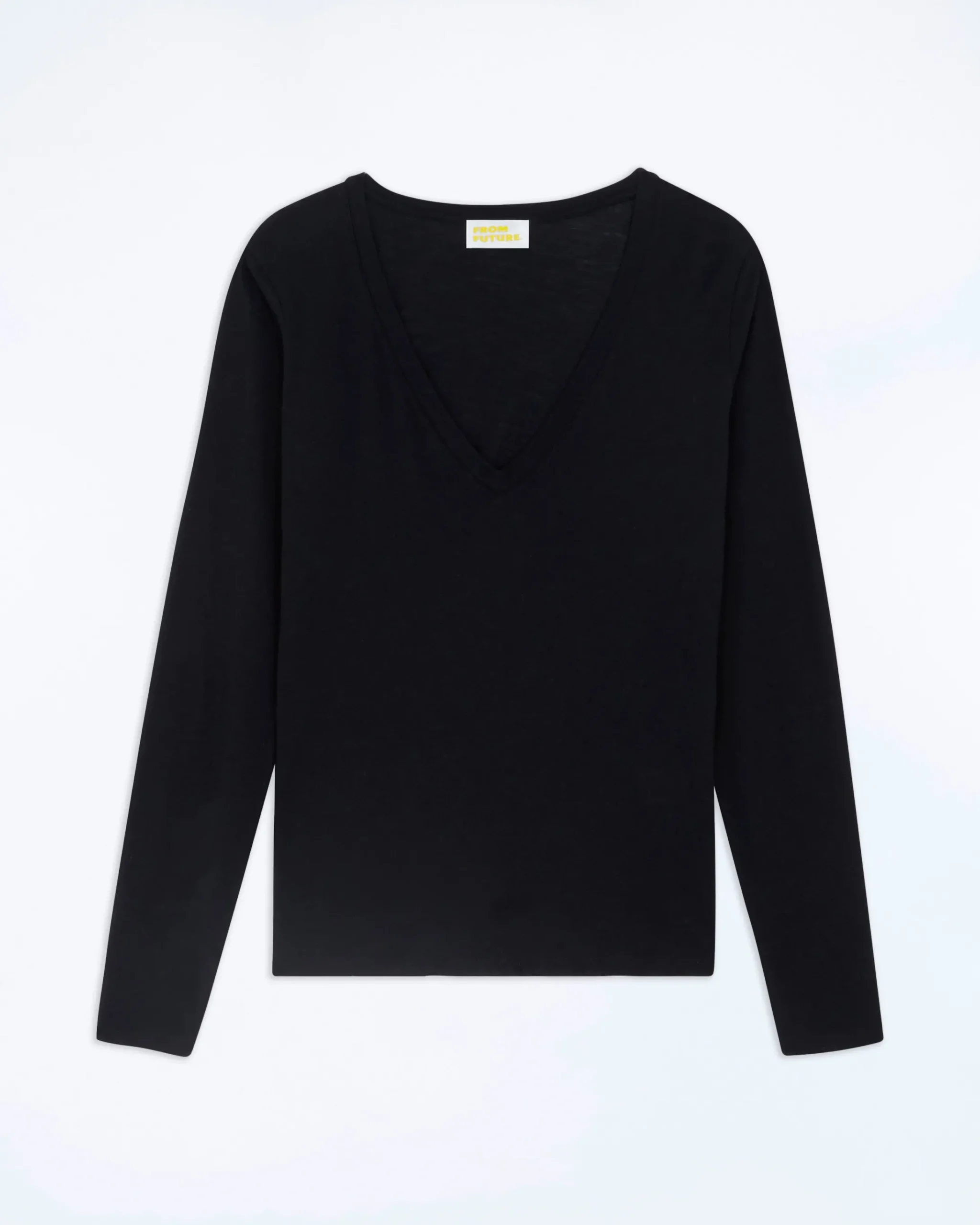 Pezzo indispensabile del guardaroba femminile, questa t-shirt in cotone è perfetta da indossare da sola o sovrapposta. Con uno scollo a V e maniche lunghe, combina comfort ed eleganza per completare i tuoi look di tutti i giorni. Adatta a tutti gli stili, puoi infilarla sotto un pullover a coste e abbinarci un pantalone da tailleur.