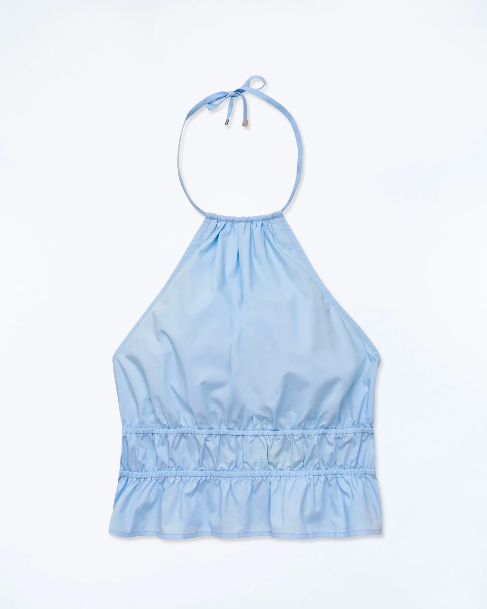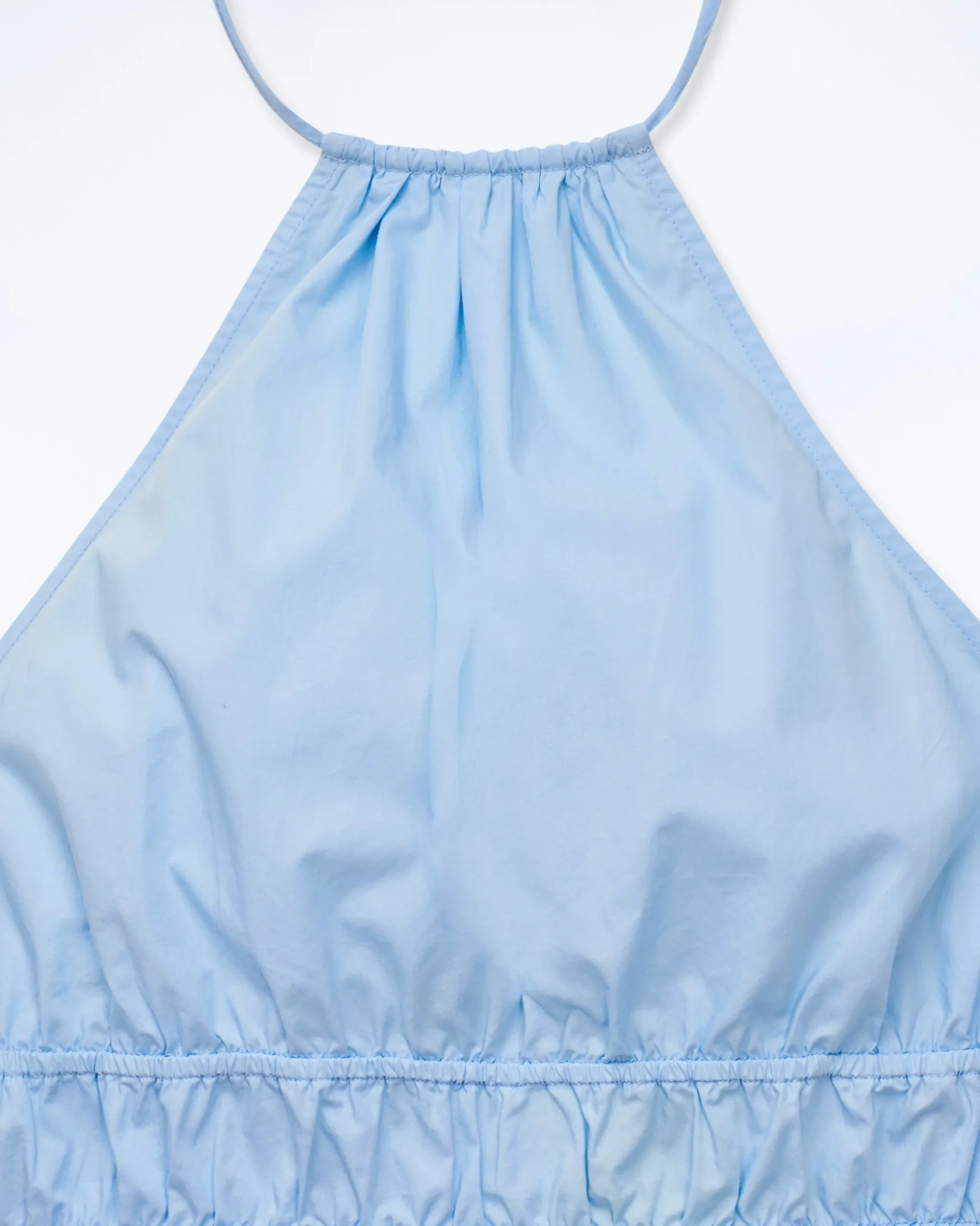 Questo top in popeline di cotone da annodare dietro il collo presenta un taglio a schiena scoperta che ti conquisterà! Senza maniche, è vivacizzato da un gioco di increspature e da un effetto baschina sul fondo. Chic e casual allo stesso tempo, completerà i tuoi look di stagione.